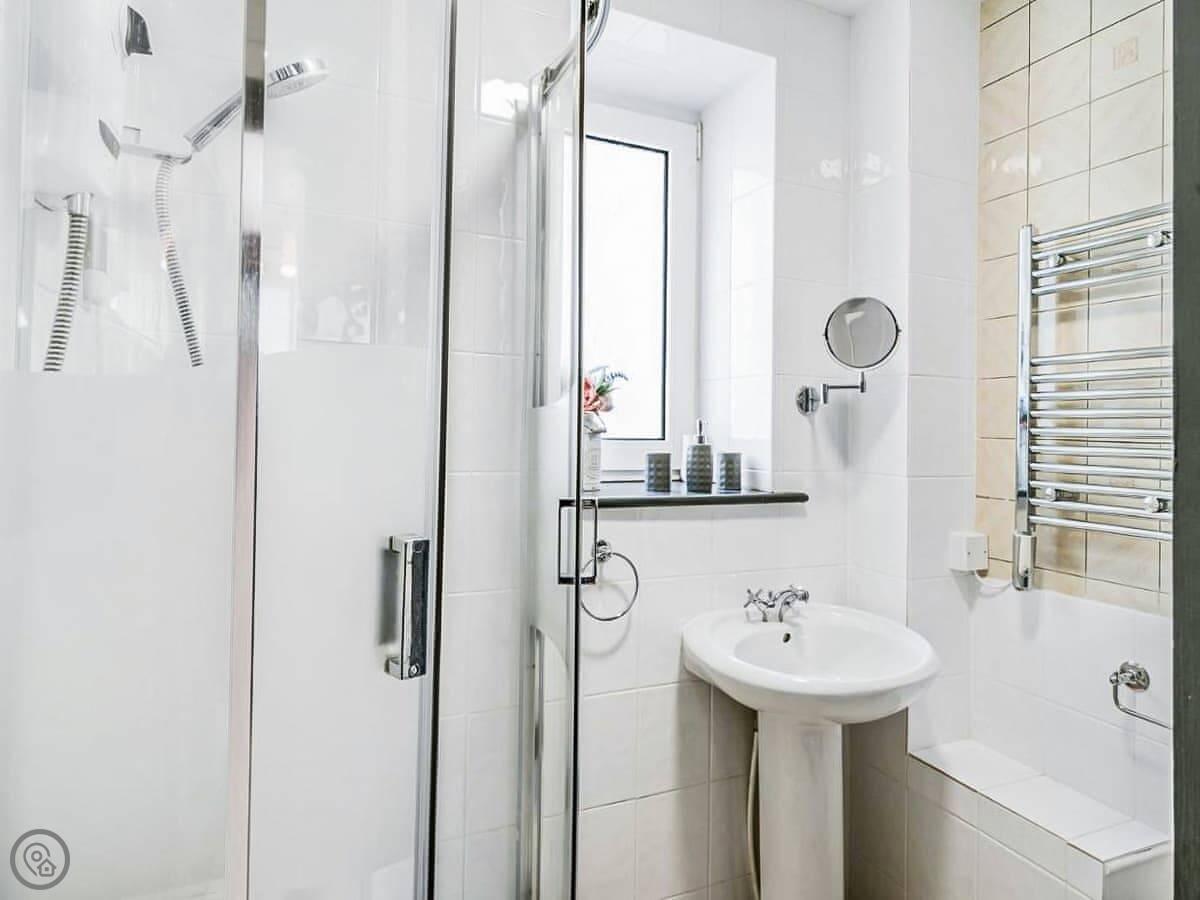 It sleeps four in two bedrooms and has a four-star rating. That means it's well-equipped and in good condition. There's one bathroom with a shower over the bath.