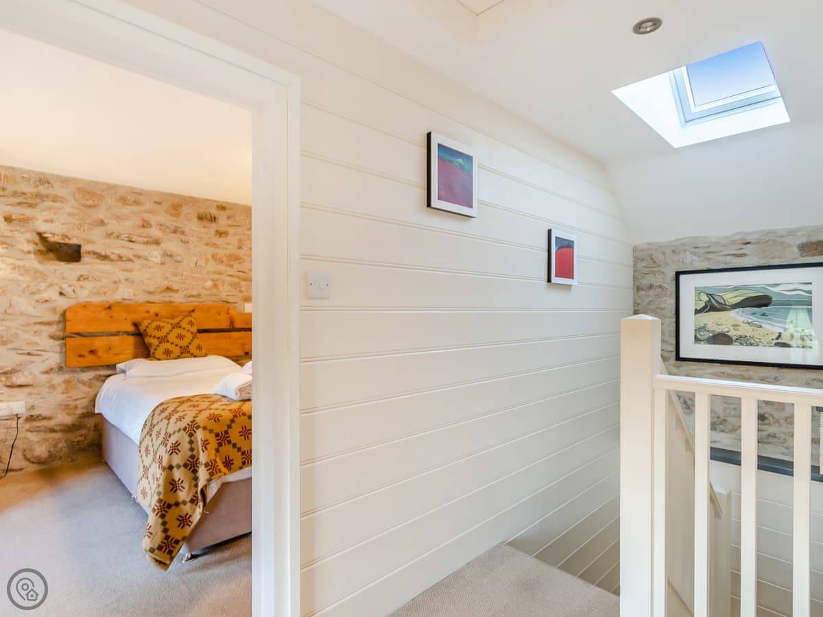 The stairs are normal. There's parking on site and an electric vehicle charger. You can bring up to two dogs. Bedding and towels are included. There's a washing machine, dishwasher, and a BBQ outside. There's also an outdoor shower for rinsing off after the beach.