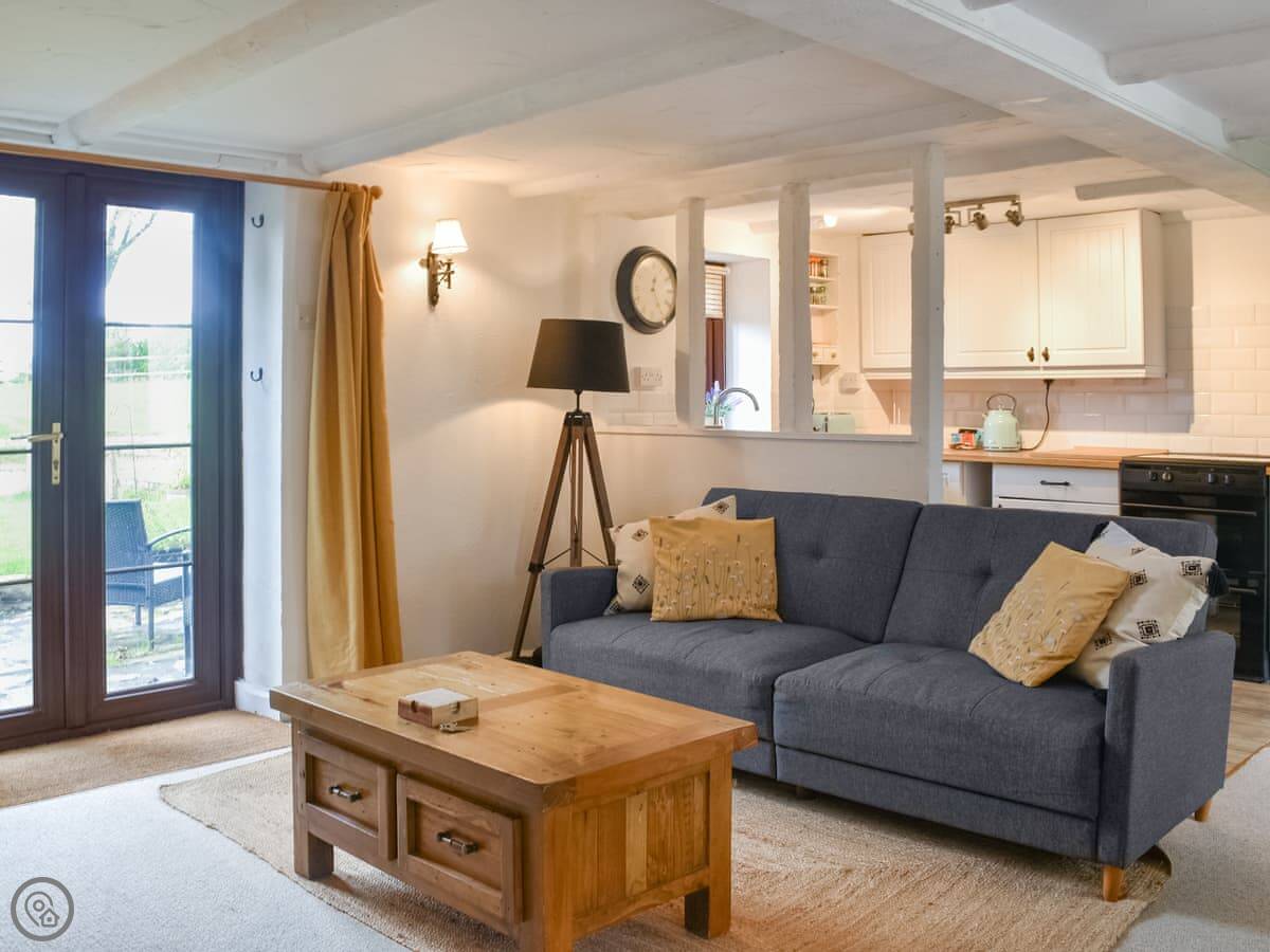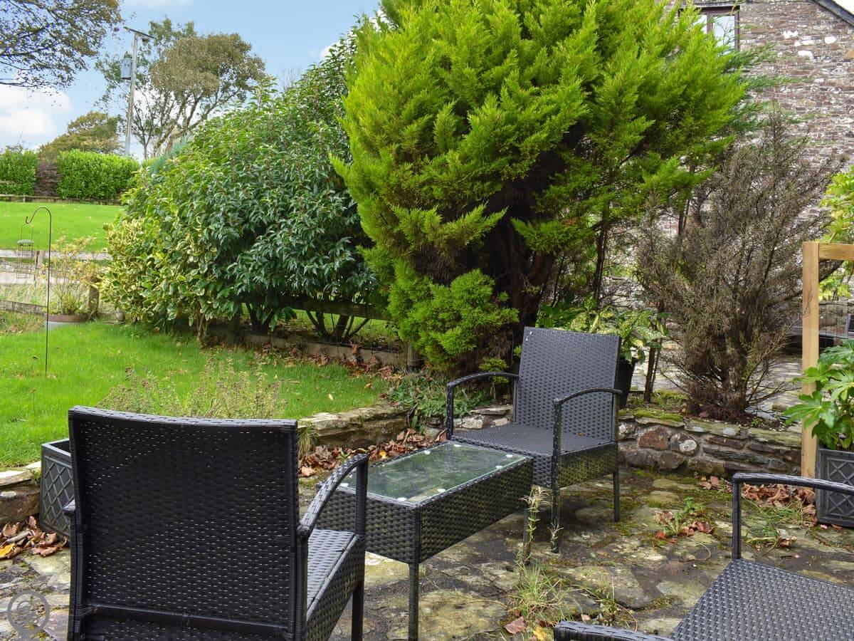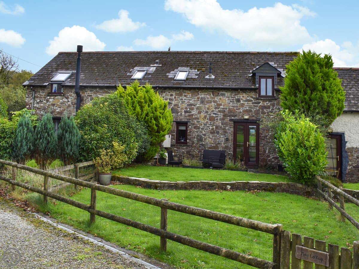 May Cottage is in West Town, up near Hartland in Devon. It used to be a stable. You get a lawn and a patio that's just for you. It's sunny, and surrounded by fields and woods.