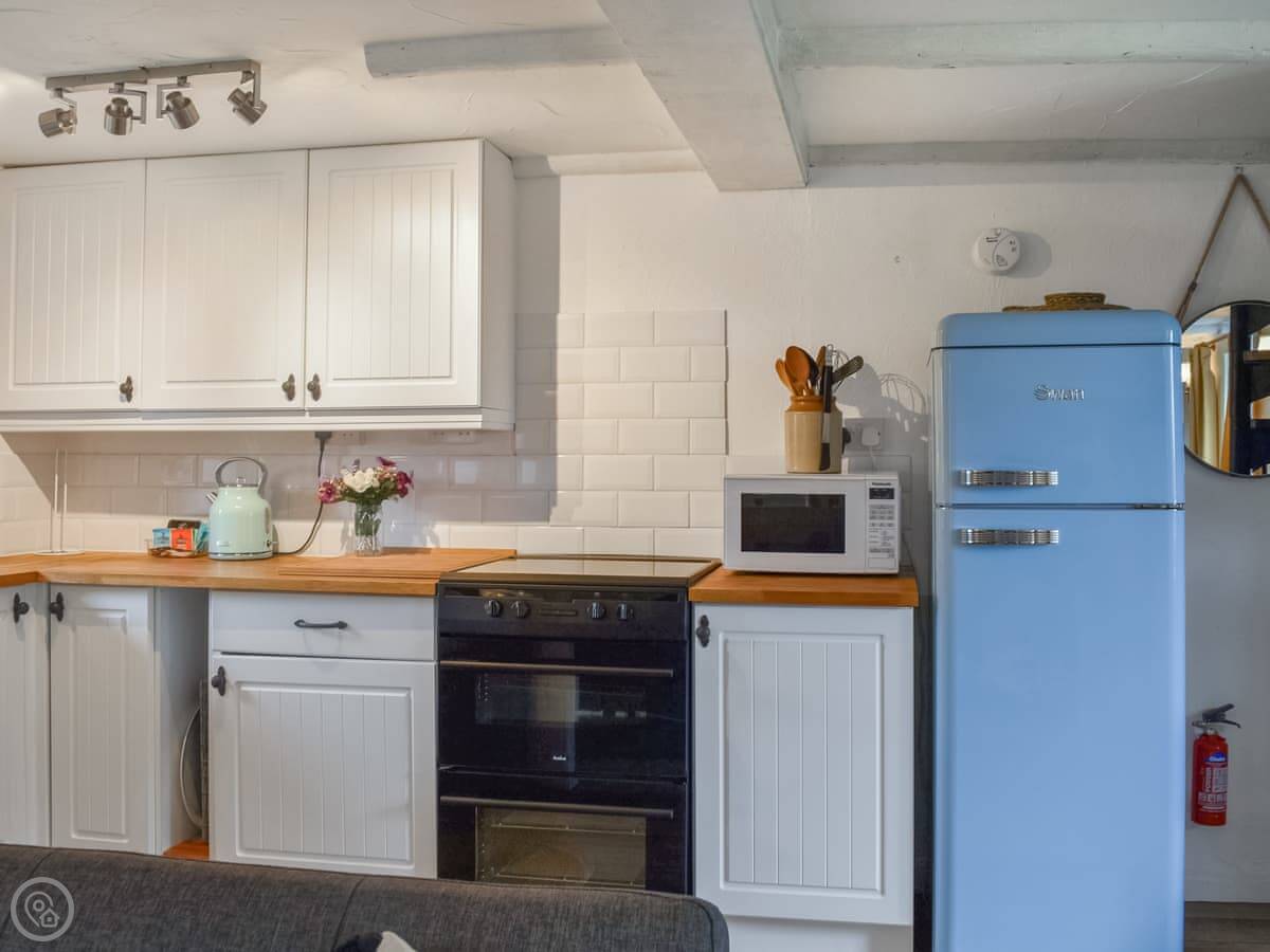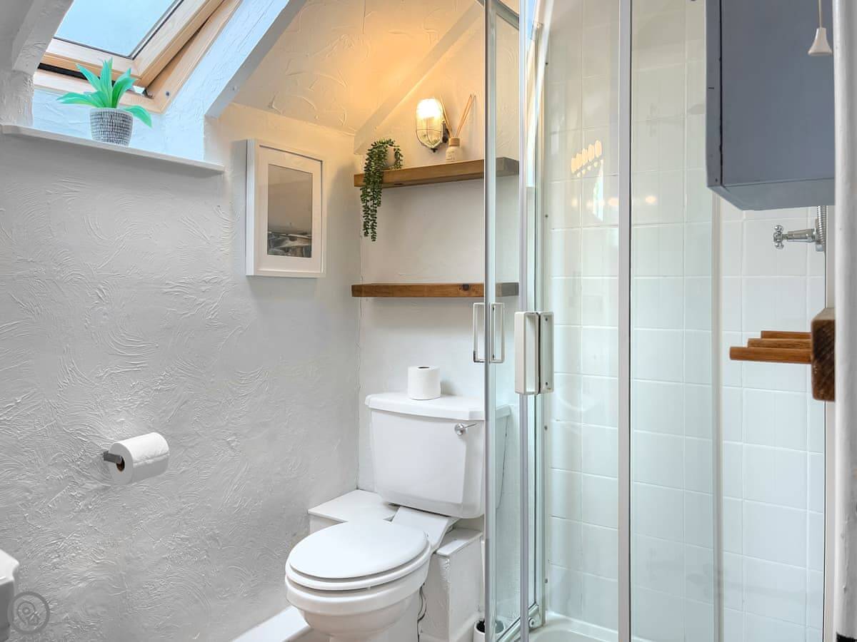 It's 4 Star and sleeps four. Two bedrooms and one bathroom upstairs. The stairs are spiral and they're a bit steep. The living space is all open plan downstairs.