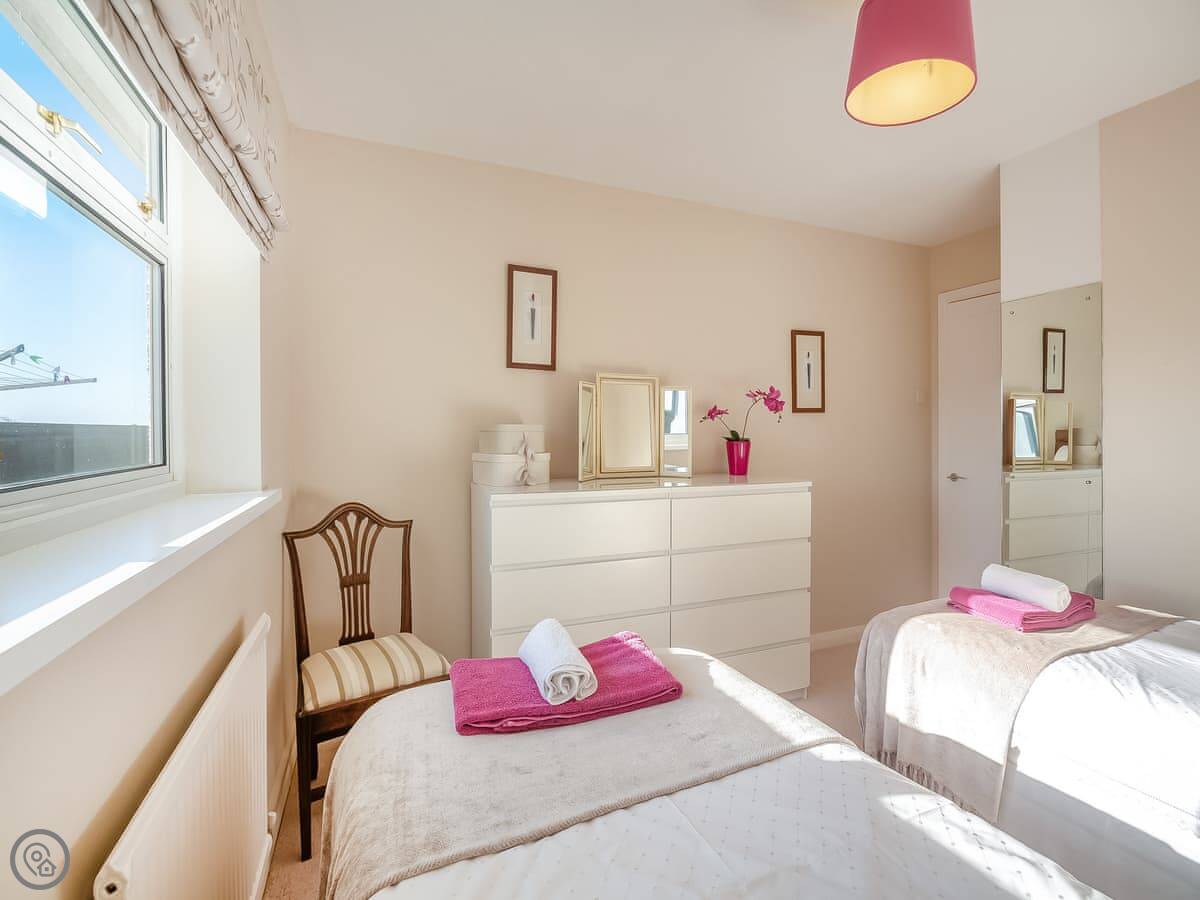 It sleeps five people. Three bedrooms and one bathroom. The bathroom has a good shower. It's a 5 Star place, which means everything is in very good order and well looked after.