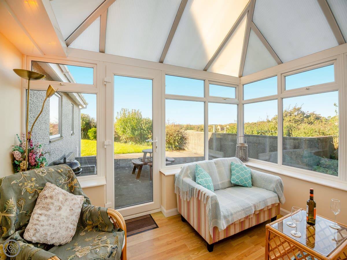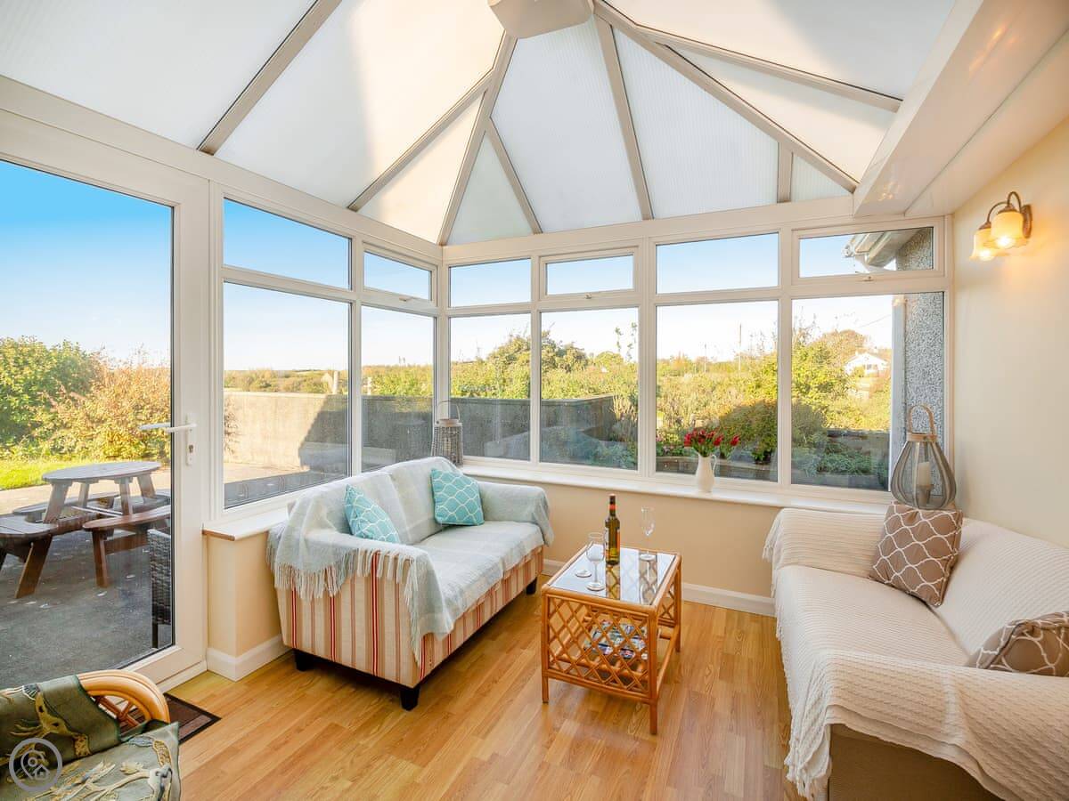 The conservatory is the best spot. You get a full view of the countryside from there. It's a good place to sit.