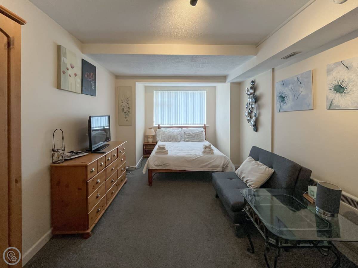 Ground floor has a self-contained flat with a double bed and its own kitchenette. Useful if someone wants a bit of quiet. There's a stair lift to the first floor.
