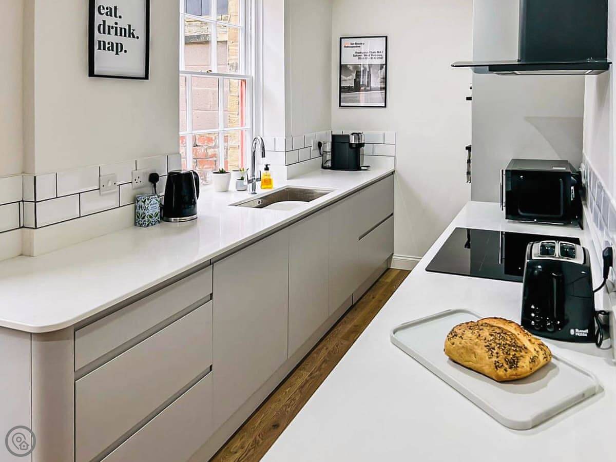 Saltaire Mill Cottage is the last house on the row. It's an old mill cottage in Shipley, West Yorkshire. You're right in the middle of Saltaire village.