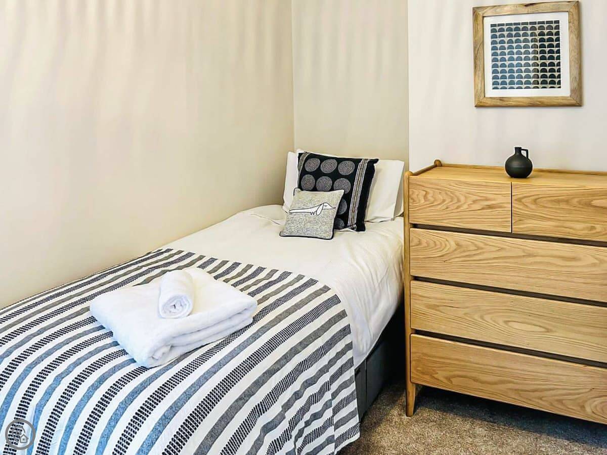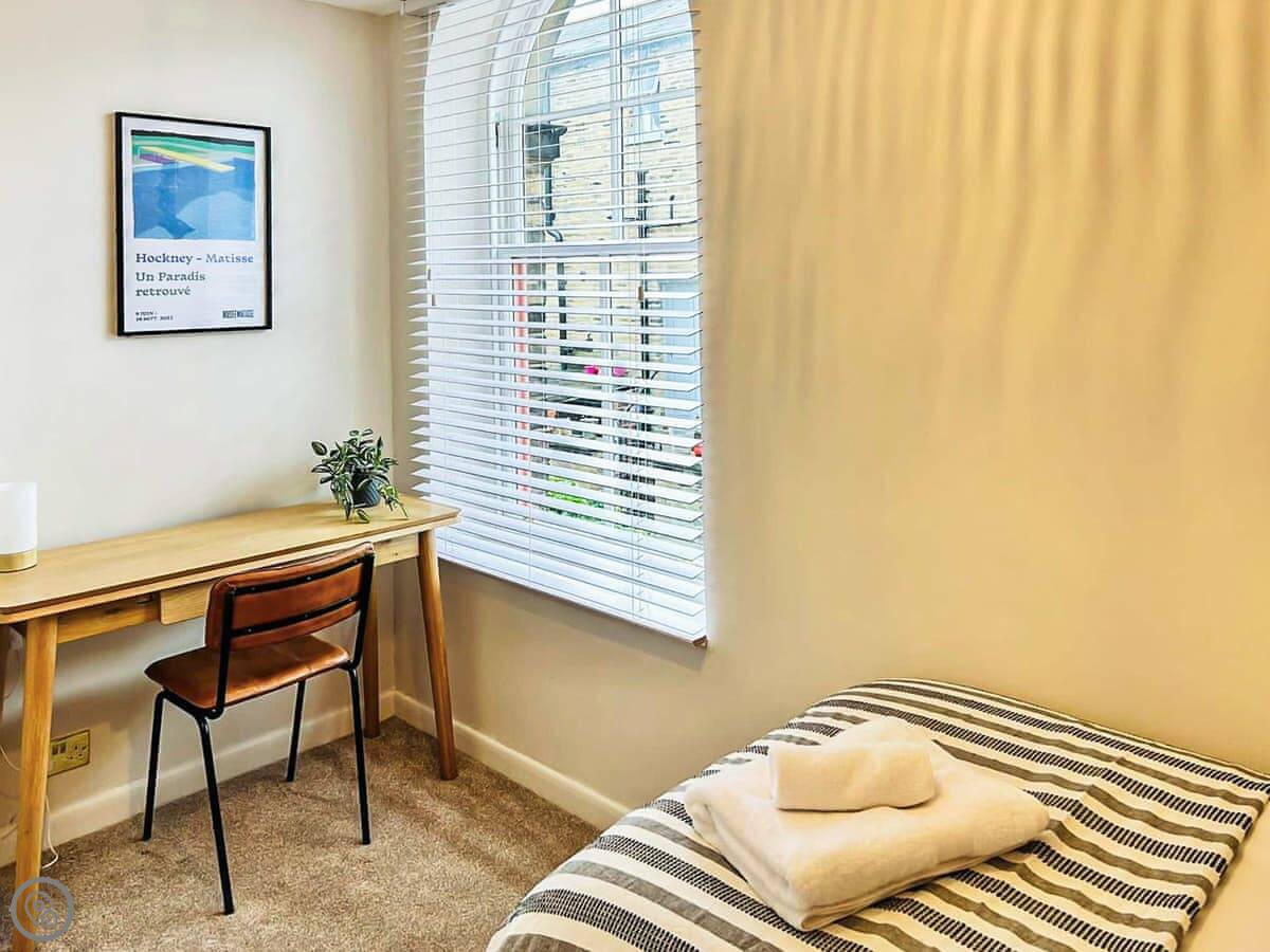 For a walk, you can go along the canal or the River Aire. Roberts Park is just across the river. The train station is a five-minute walk. Trains go to Leeds in about 20 minutes, or out to Ilkley and Skipton.