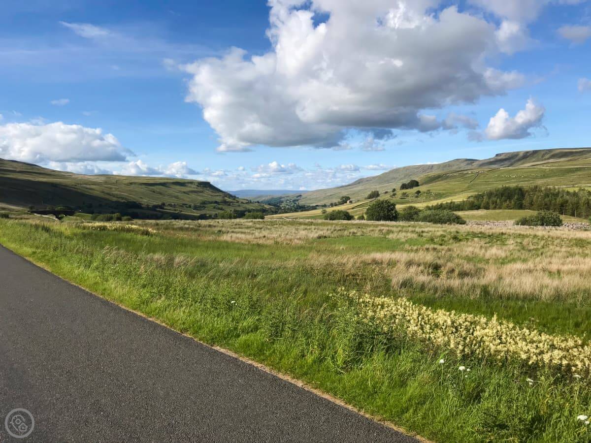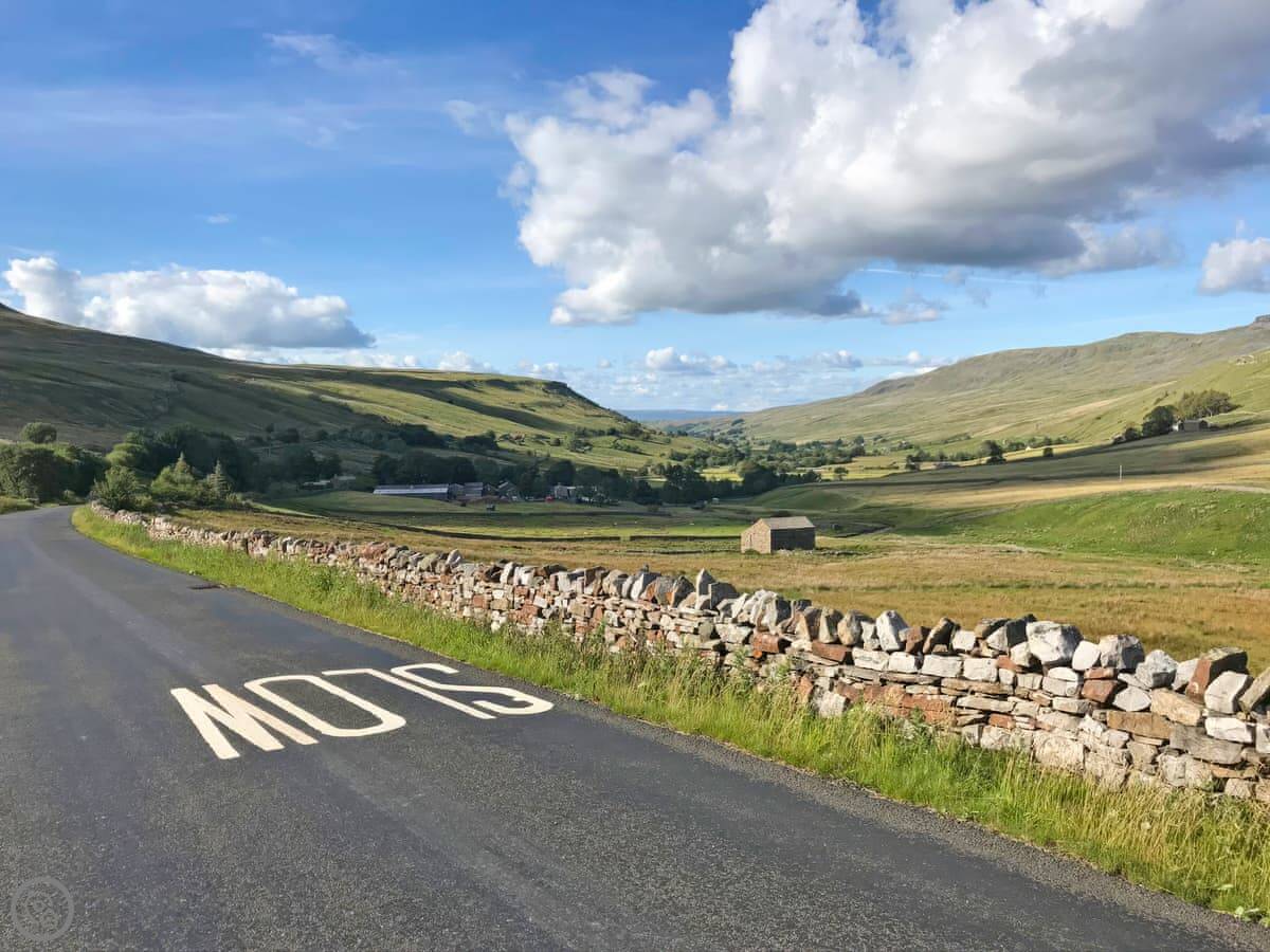 You're on a farm here, so it's quiet. The views are of the fells. Wild Boar Fell is right there. Aisgill Force waterfall is a short walk away. For a proper walk, you can head up into Mallerstang. The Settle to Carlisle railway line runs past, quite high up. You can see the trains from here sometimes.