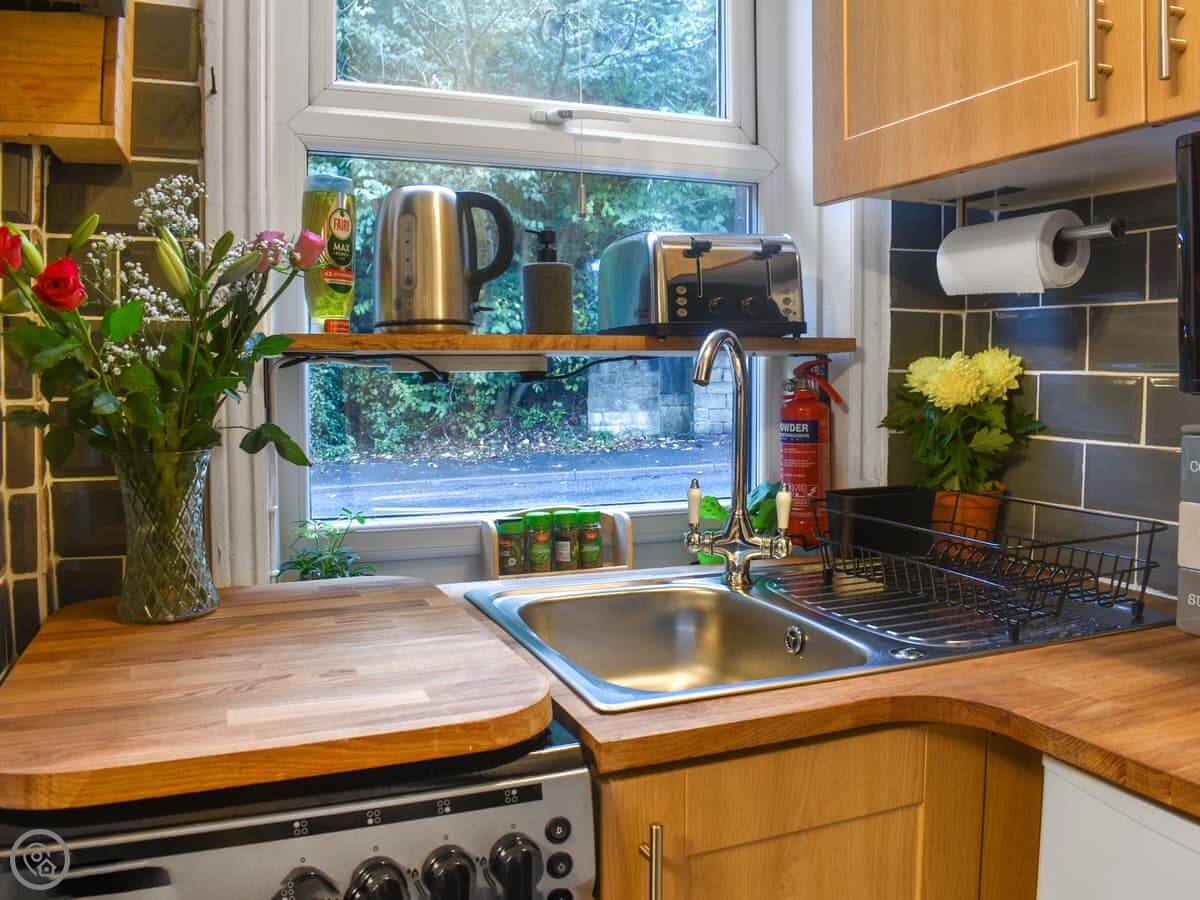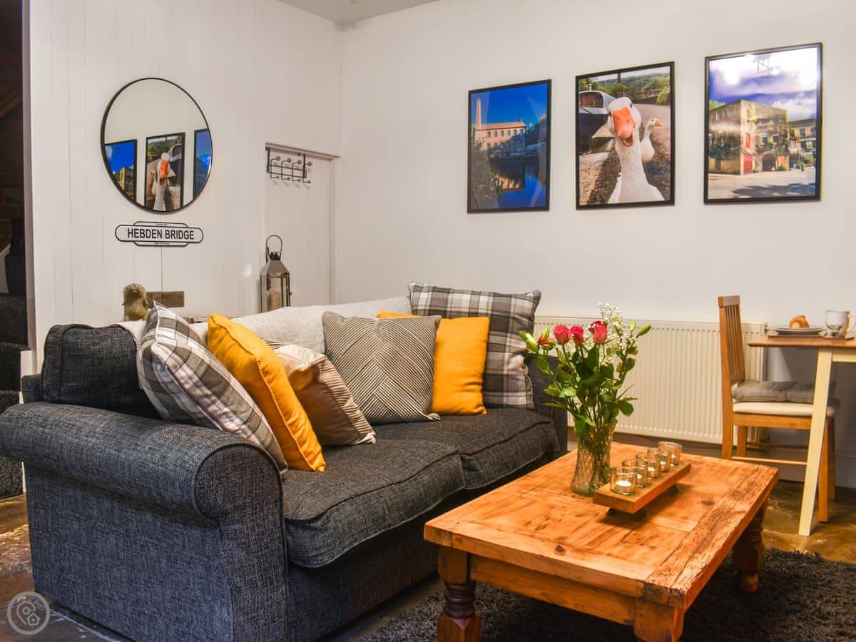 It's on the towpath, so you can walk straight out along the canal. The walk into Hebden Bridge is along there, past the boats. The town has a lot of independent shops and cafes. There's a co-op for groceries.