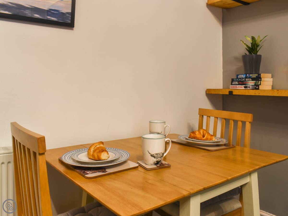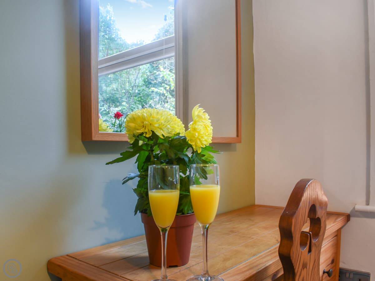 It's a one-bedroom cottage, so it sleeps two people. It's got a 4 Star rating. The layout is open plan downstairs, with the kitchen and living room together. There's a wood burner for cool evenings. Upstairs is the double bedroom and the bathroom. The bathroom has a bath with a shower over it.