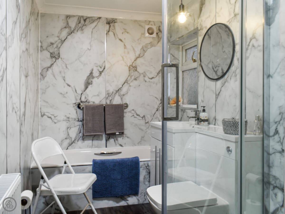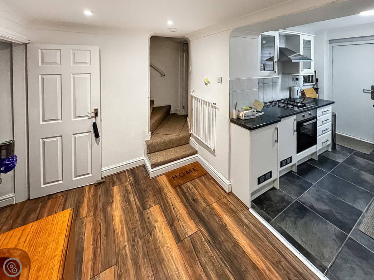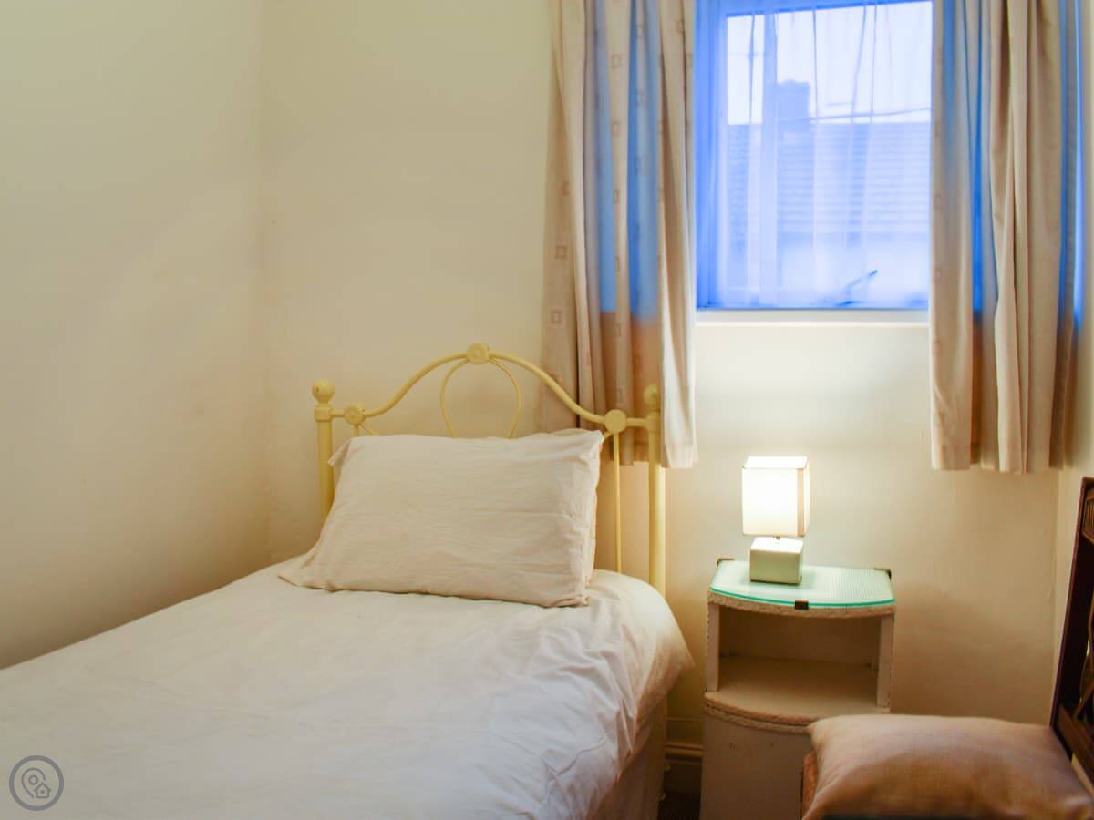 It's a refurbished terraced cottage. Sleeps five, three bedrooms, one bathroom. It's got a 3 Star rating. It's comfortable and clean. The garden is a paved rear yard.