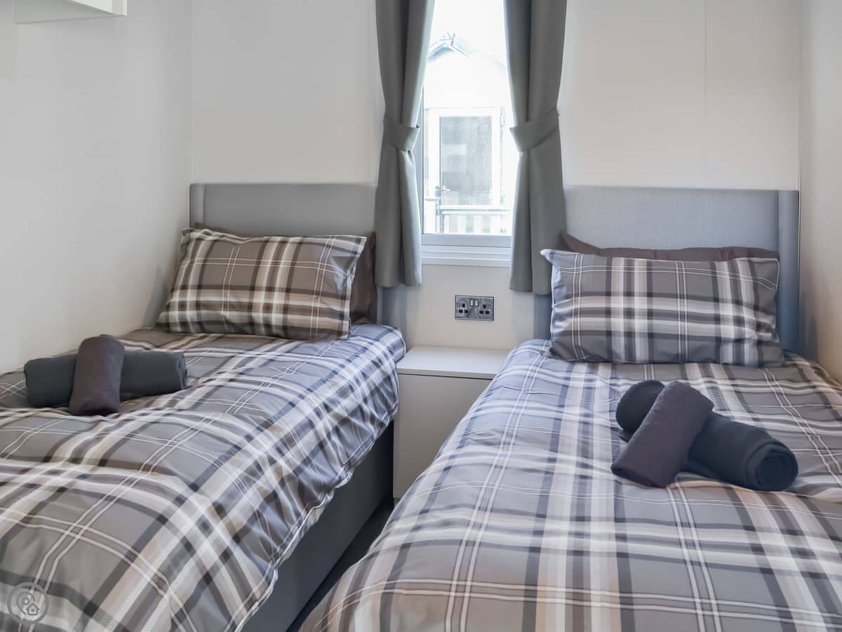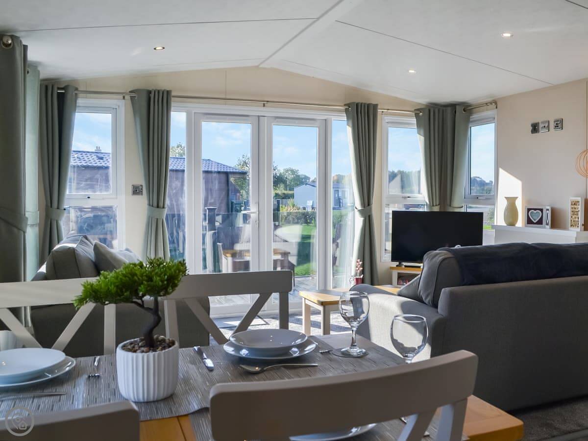 Lodge 10 is a modern lodge on a park near Carnaby, just outside Bridlington. It's detached, so you won't have neighbours on the other side of a wall. You've got your own little enclosed deck out the back with some seating.