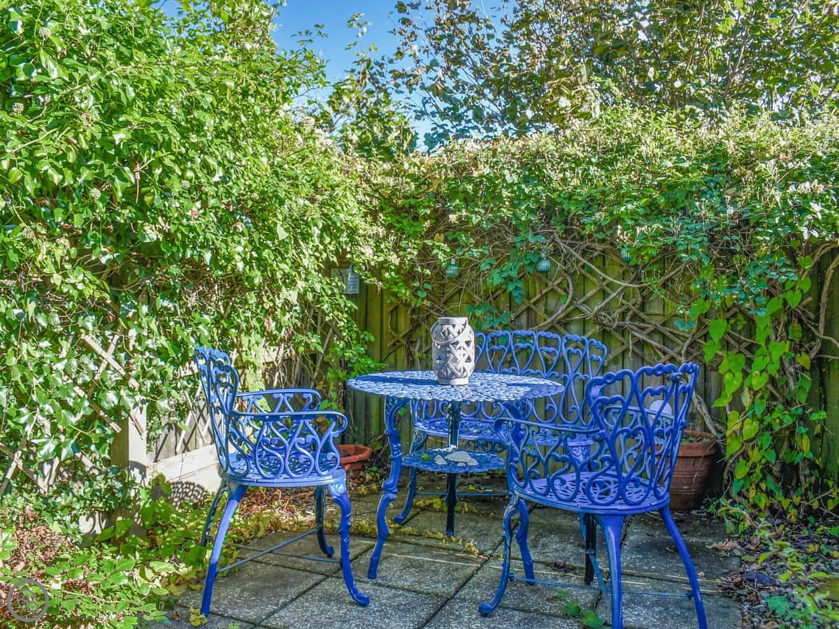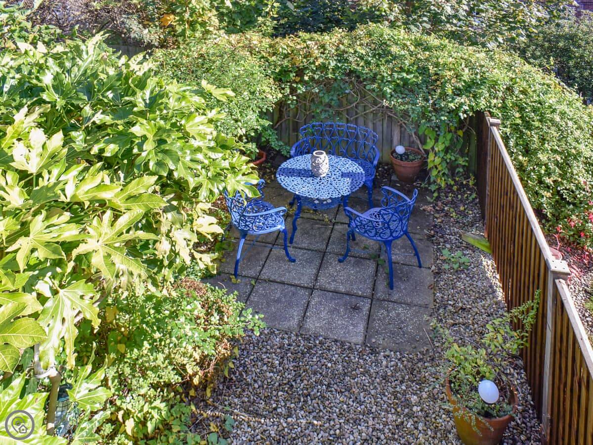 The double bedroom has its own door out to a little enclosed garden at the back. It gets the sun in the morning. There's a washing machine, towels and bedding are included, and you get the wifi.
