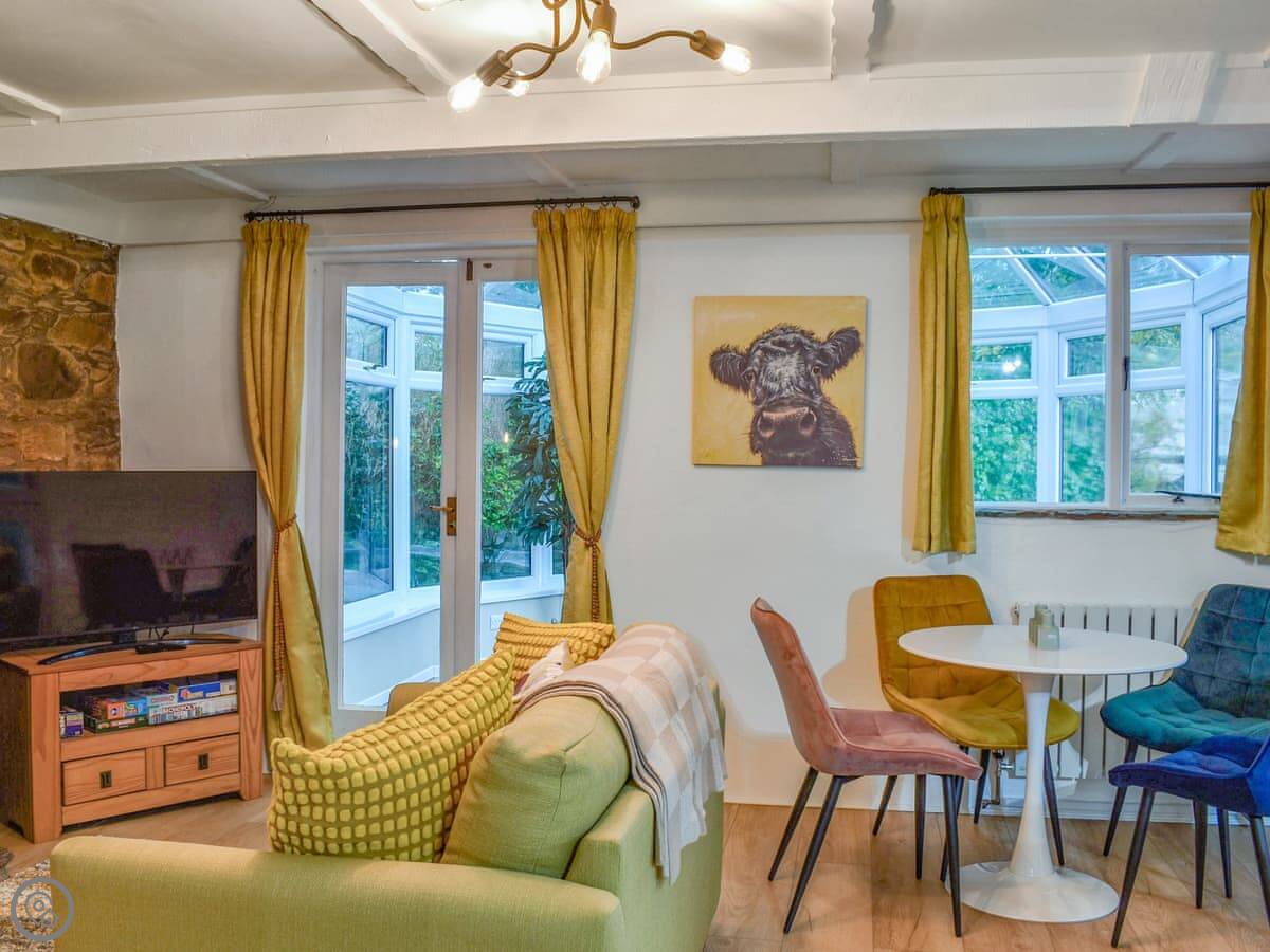 Fowey town centre is a short walk down the hill. It's a proper harbour town, so there are lots of places to eat and independent shops. The estuary is right there for walks. For a bigger beach, it's a few minutes' drive to Polkerris.