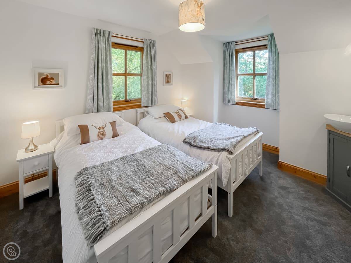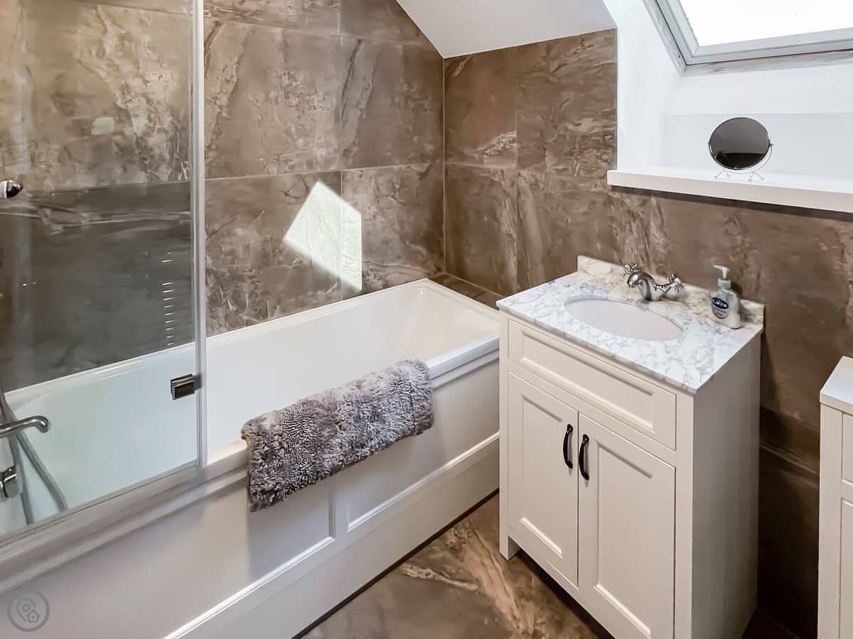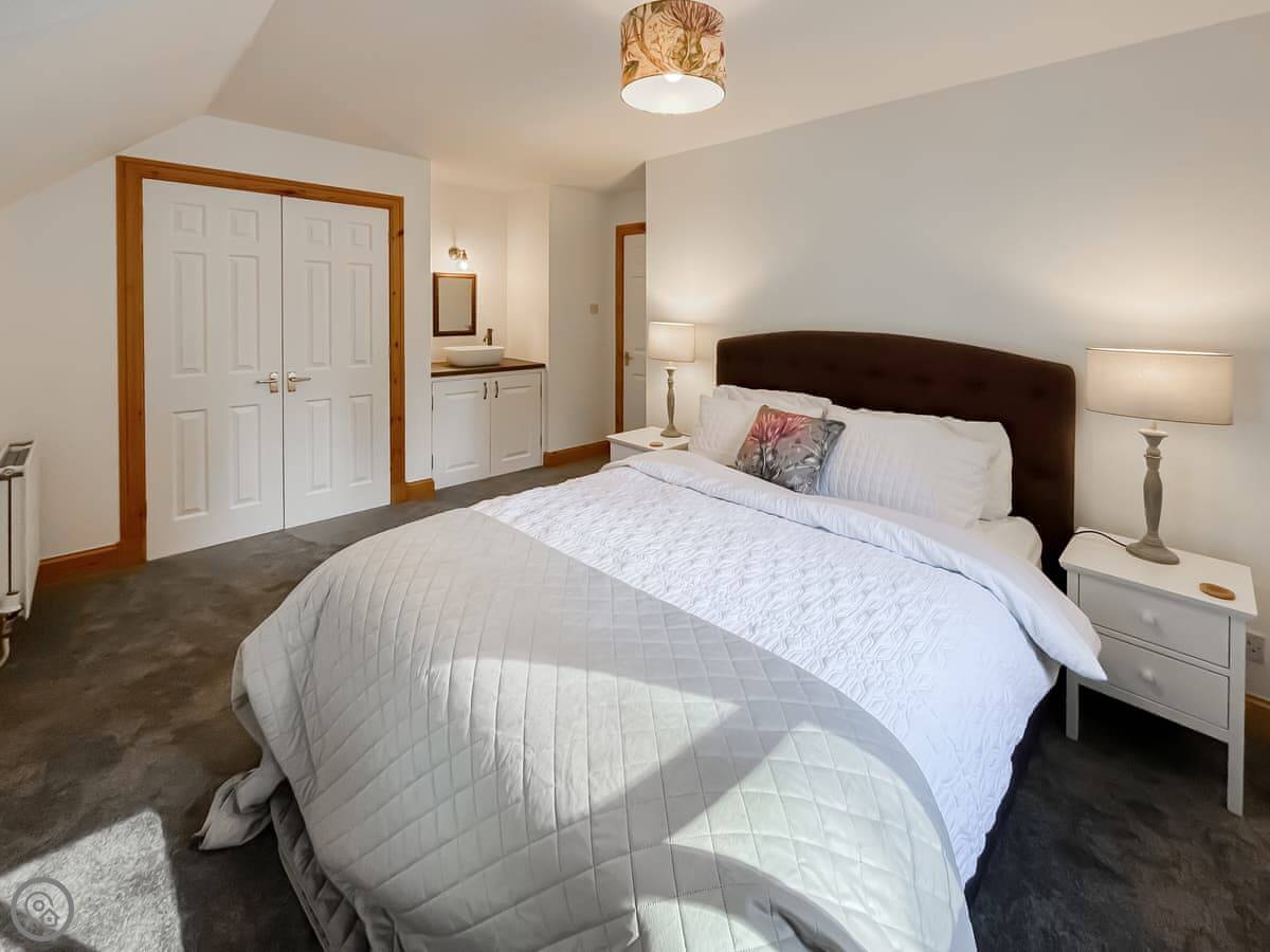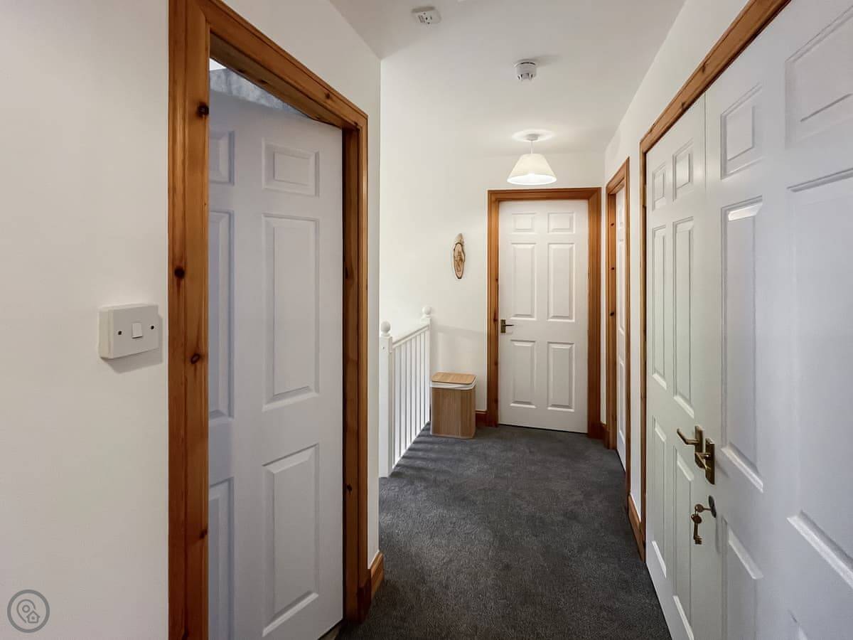 It sleeps eight, across four bedrooms, with two bathrooms. Each bedroom has its own sink and vanity unit. Three of them are doubles, and one has two single beds. It’s got a 4 Star rating, so it’s well-finished.