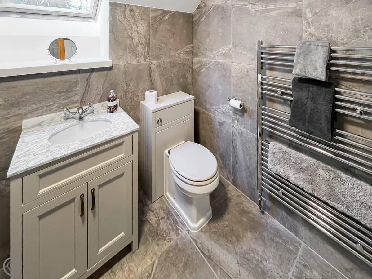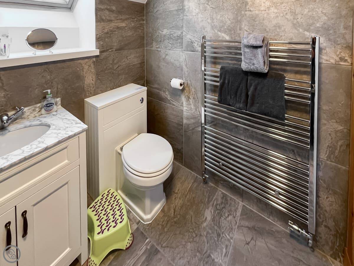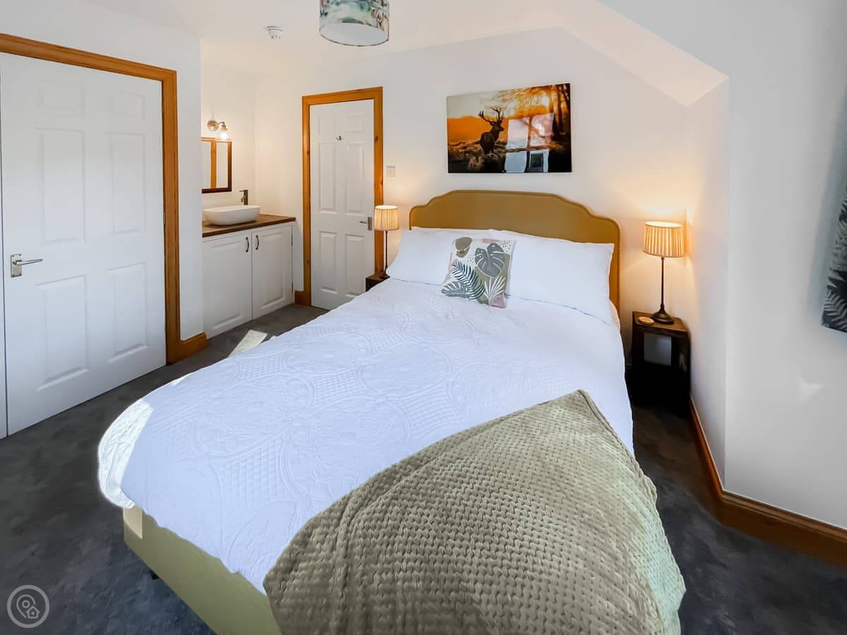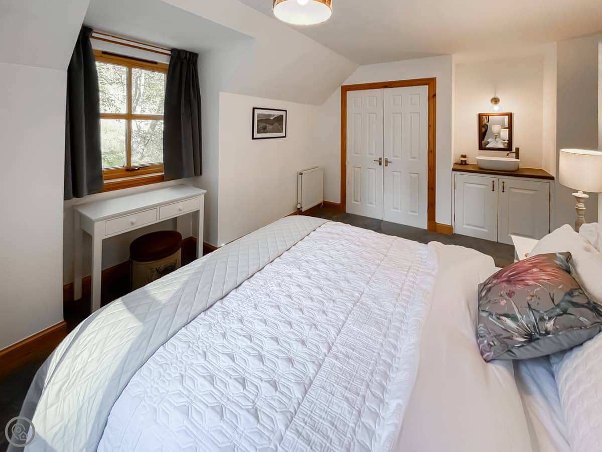 It sleeps eight, across four bedrooms, with two bathrooms. Each bedroom has its own sink and vanity unit. Three of them are doubles, and one has two single beds. It’s got a 4 Star rating, so it’s well-finished.