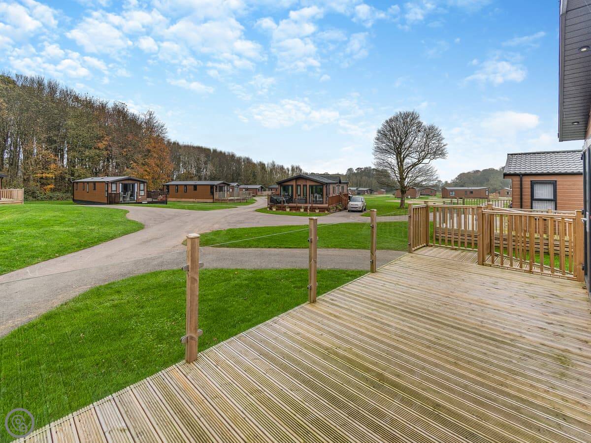 Woody Ray is a lodge near Sewerby. It's a single storey place, so everything is on one level. There's a ramp up to the wrap-around decking. That's where you go to sit out.