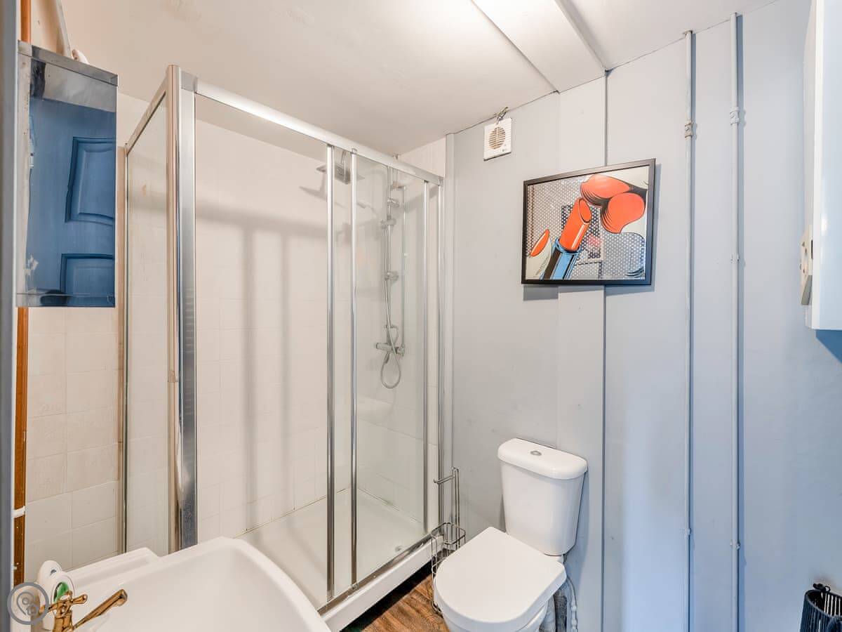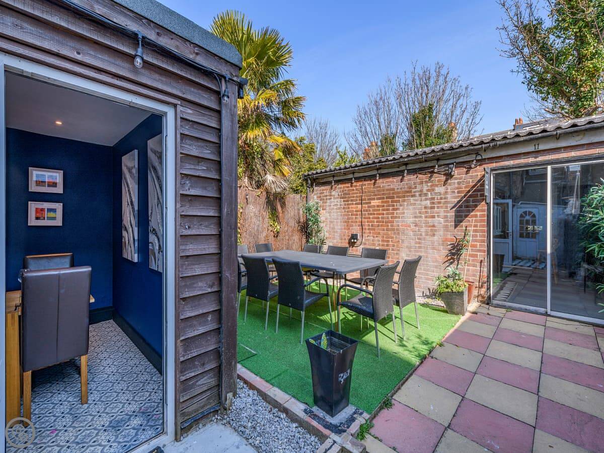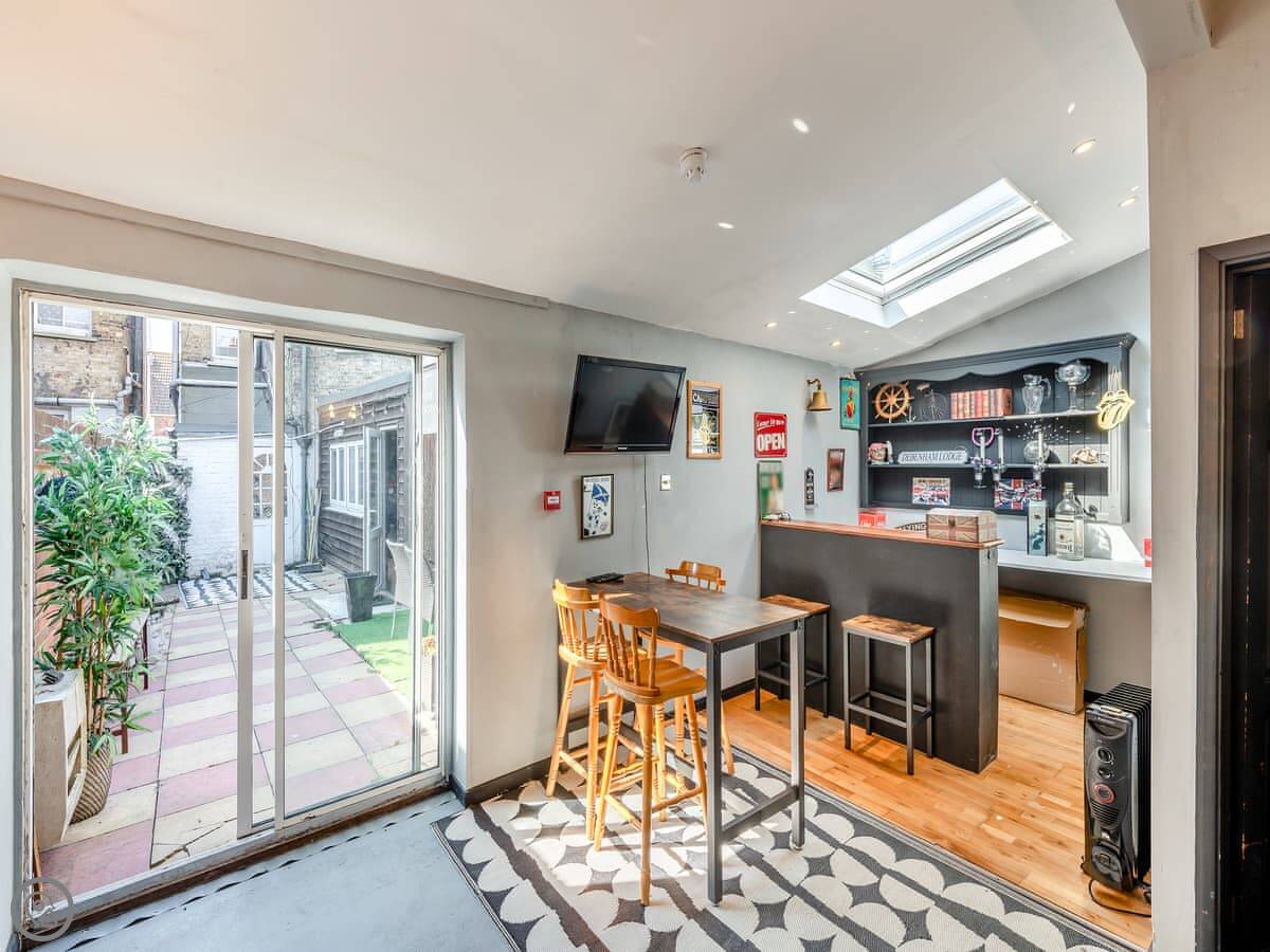Outside, there's a big enclosed garden. There's also a separate building out there which is a games room with a bar and a pool table. It's got its own heating so you can use it all year.