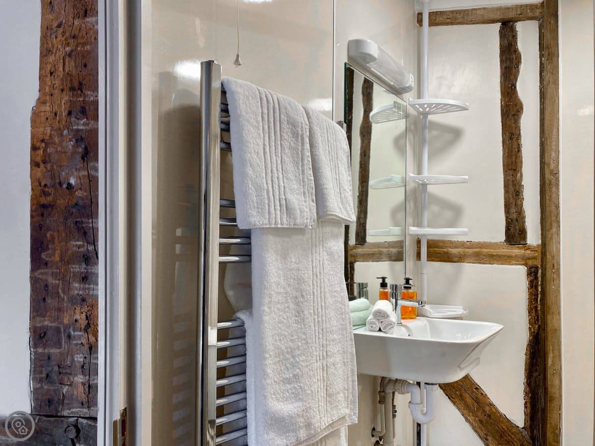 The main thing is the history. You're staying in an ancient building. You'll see the old beams and stonework. The windows look out over the river. The stairs up to the apartment are the original medieval ones, so they're quite uneven and steep. Just something to be aware of.