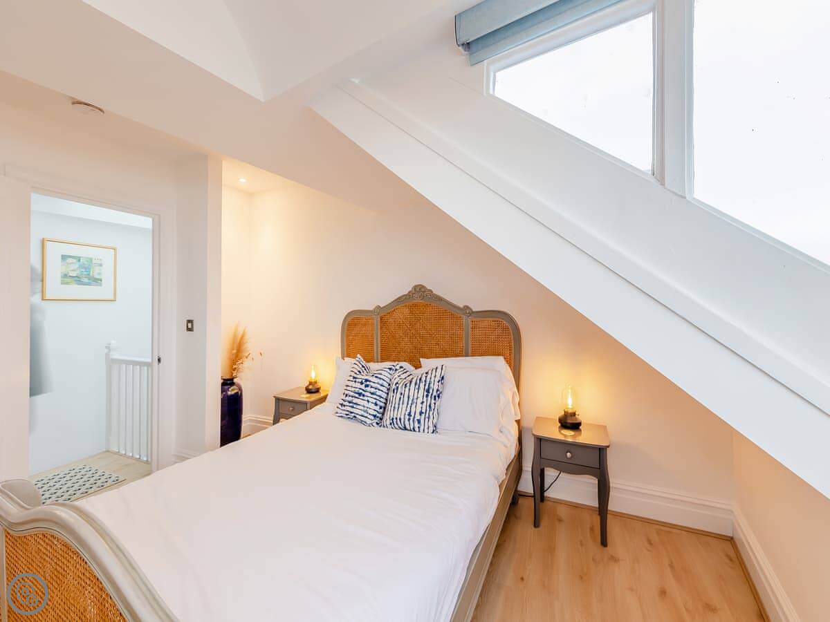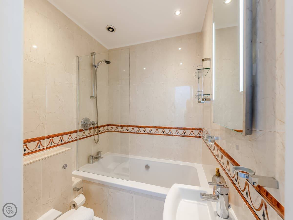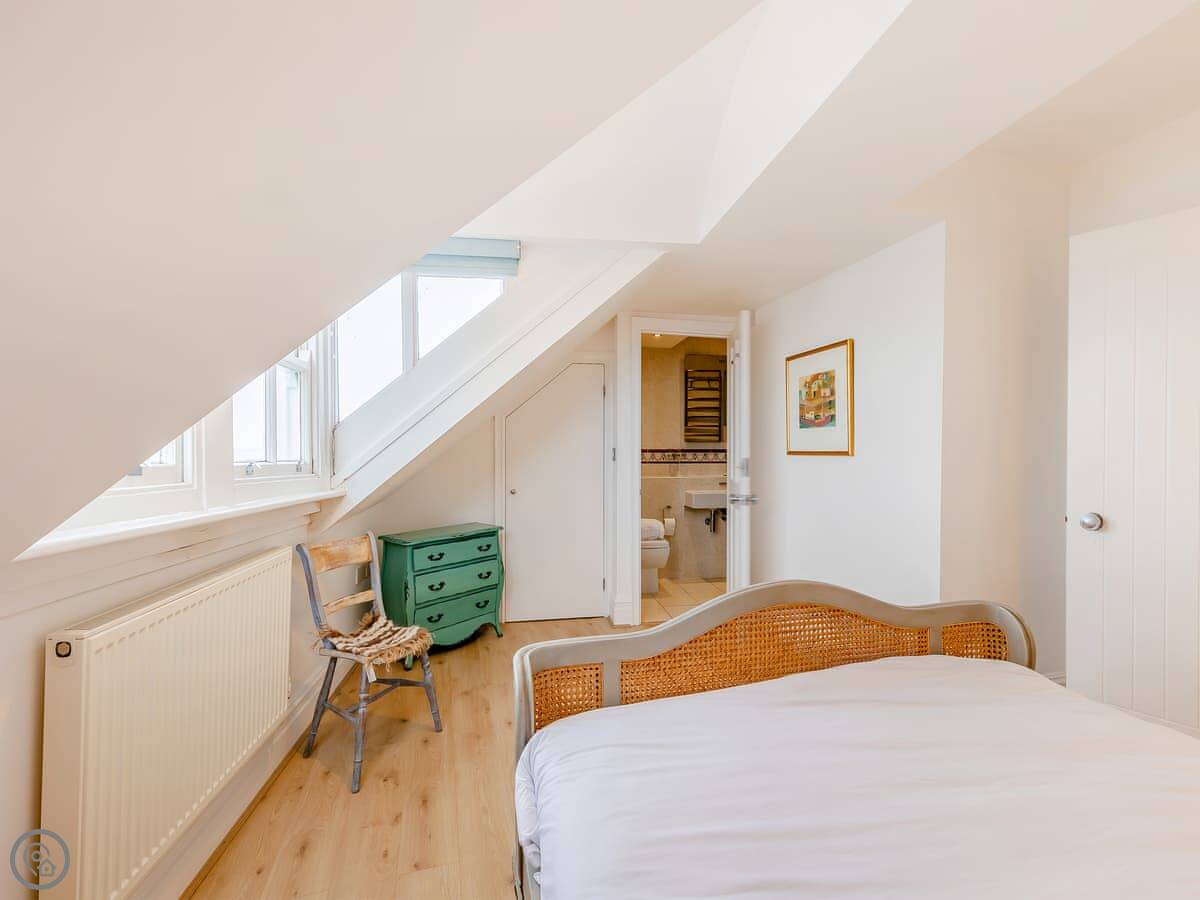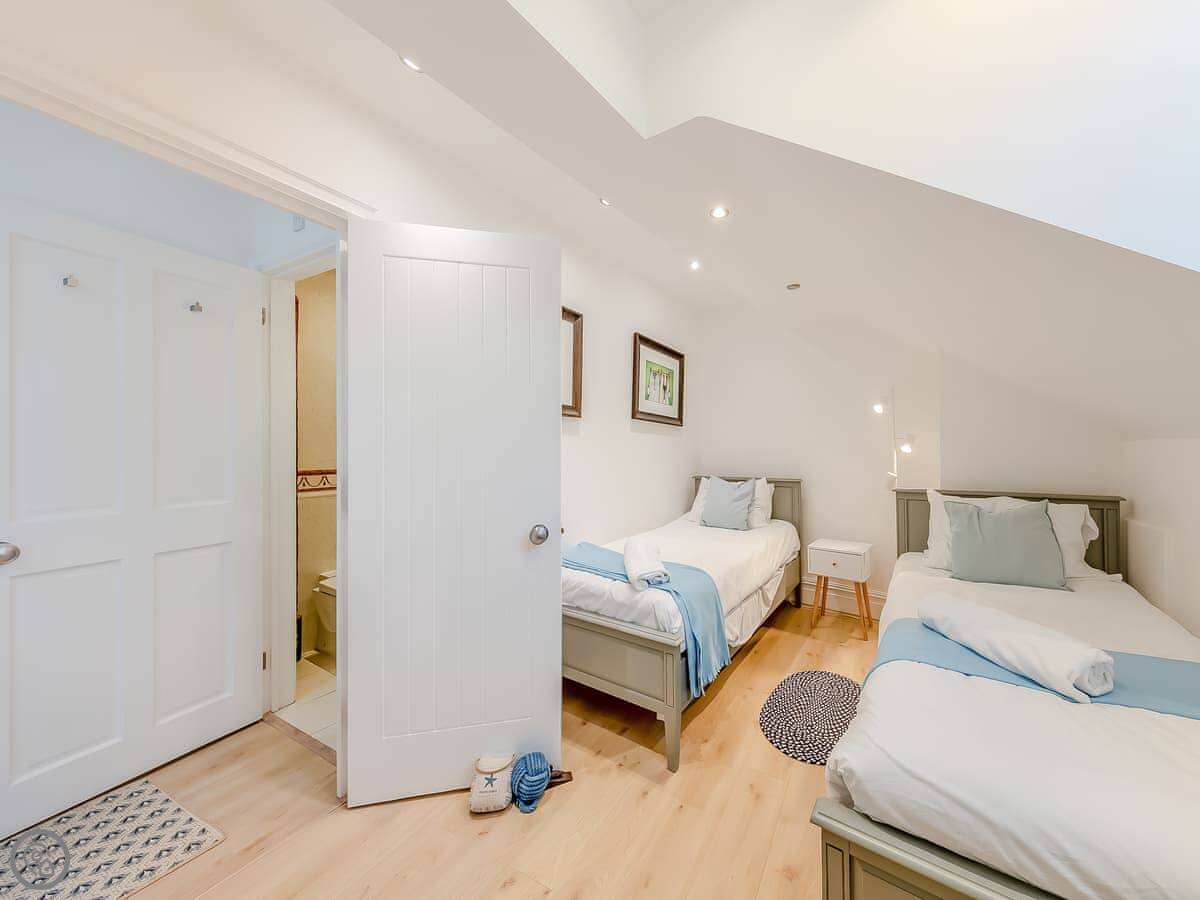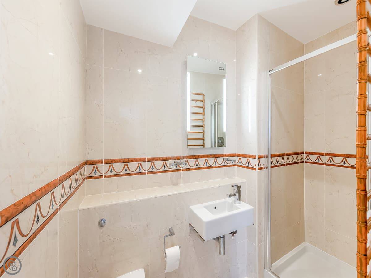 It’s a 5 Star place, which means it's well-finished and has everything you need. It sleeps four. Two bedrooms upstairs, one double and one with two 3ft singles. There’s a bathroom on each floor. The main bathroom has a shower over the bath.
