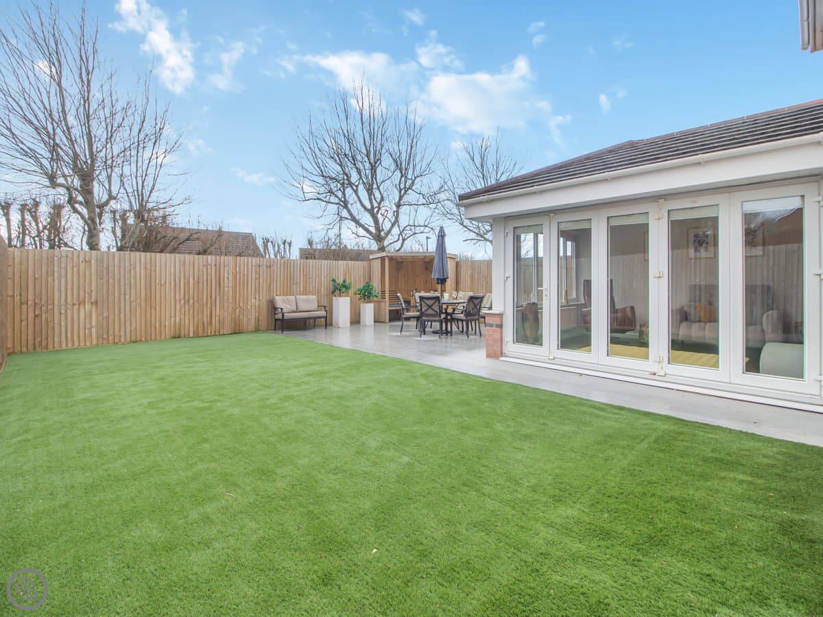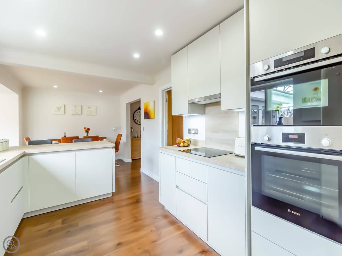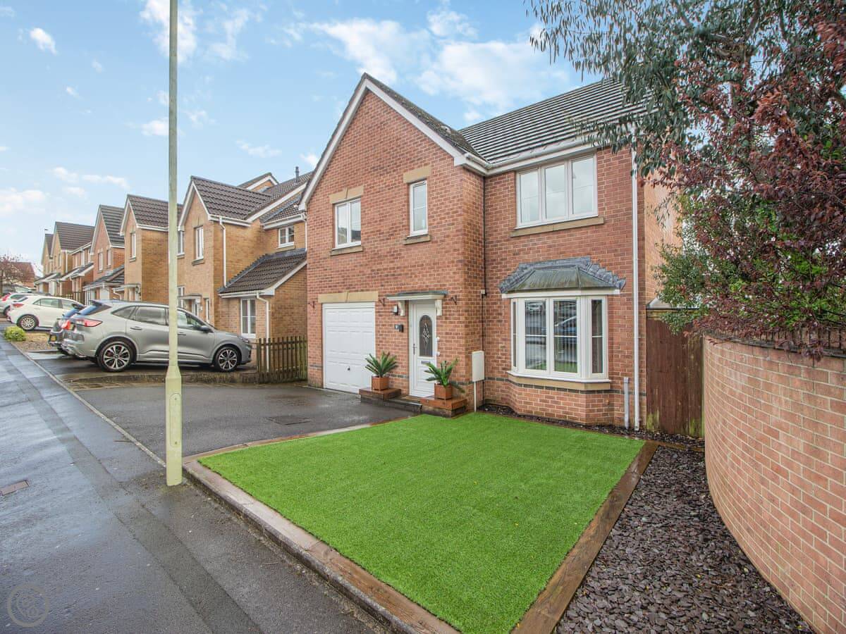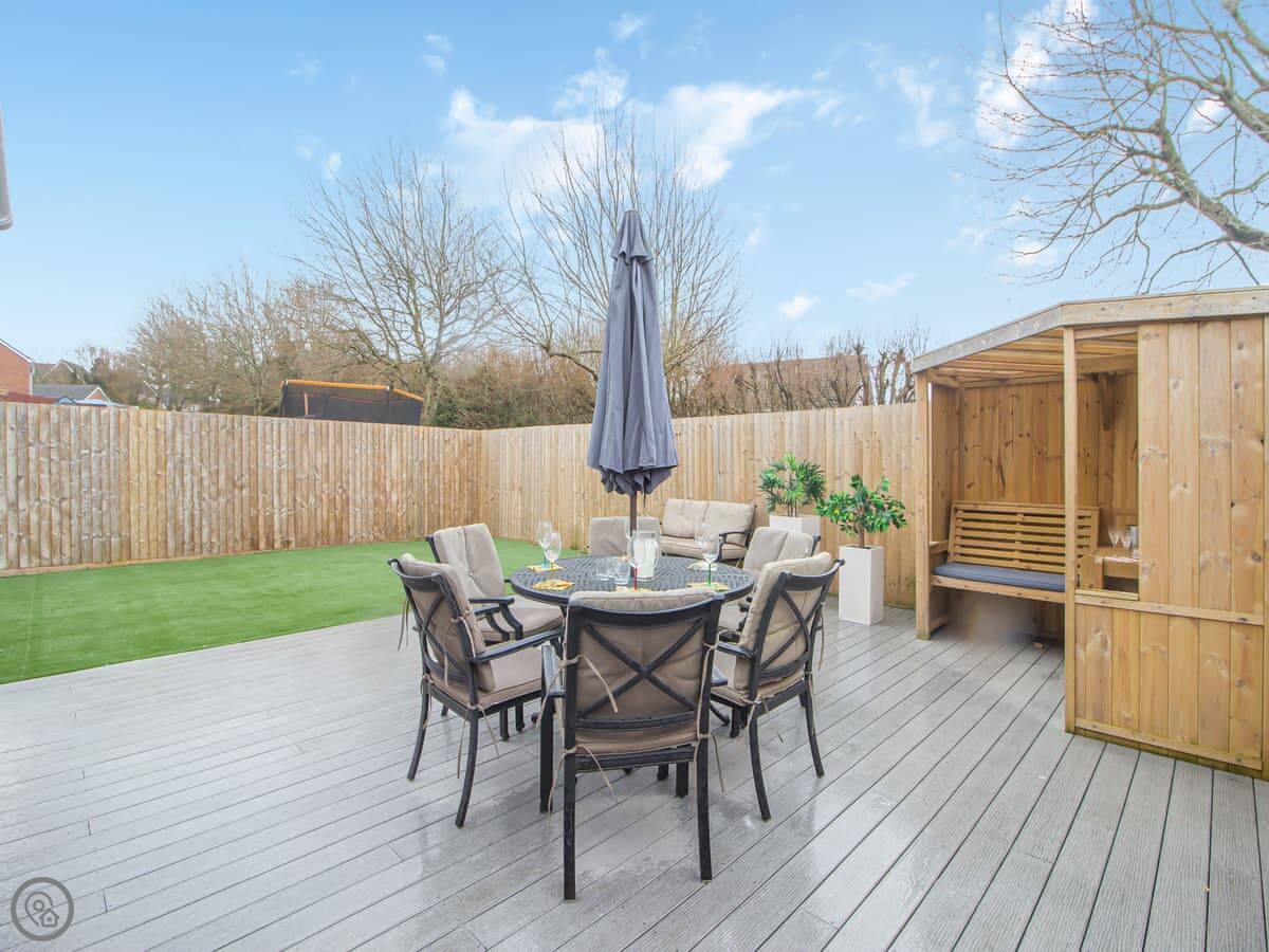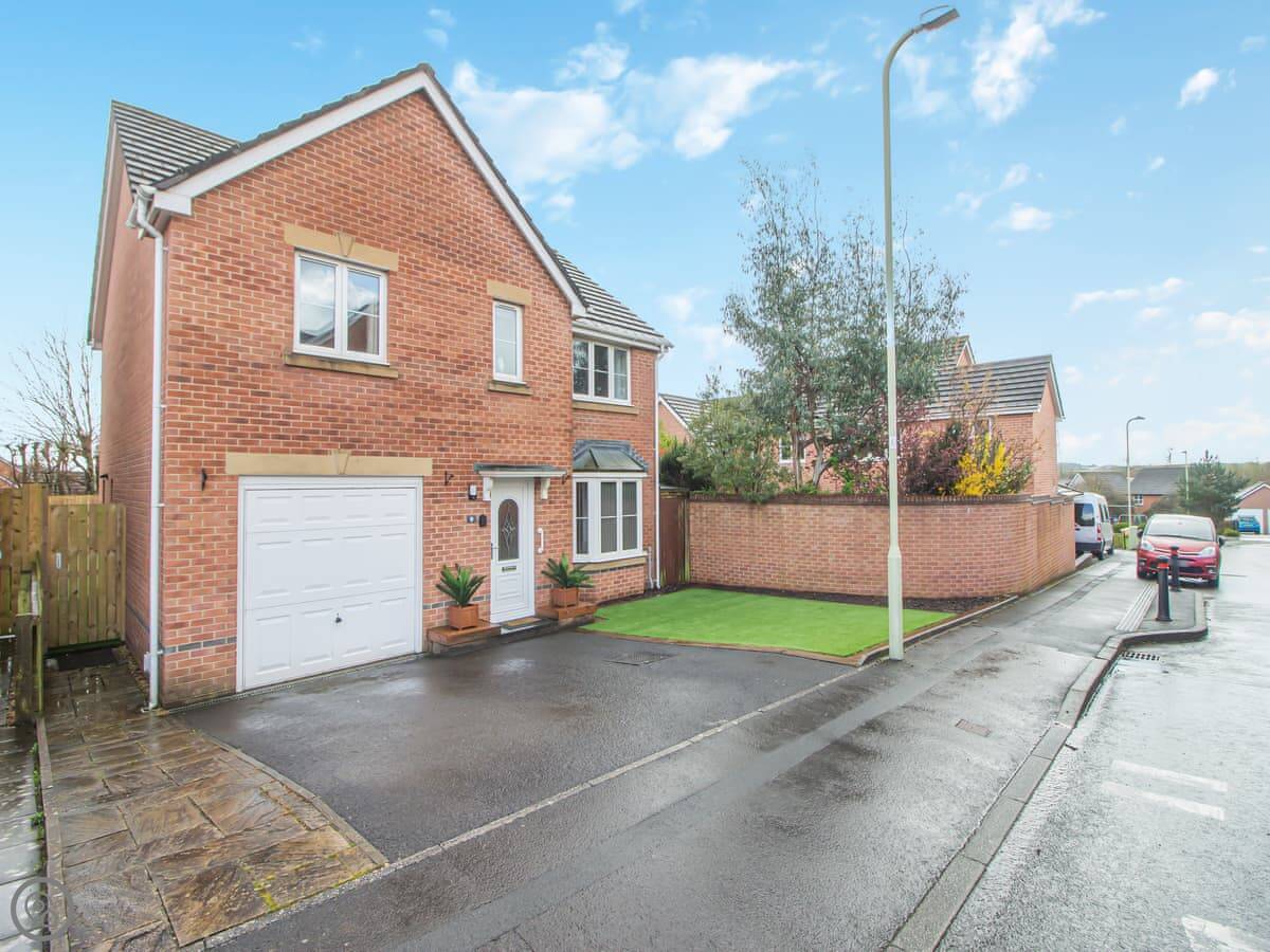 Chestnut House is in Bridgend, a town in South Wales. It's a modern, detached house, on a normal street. It sleeps eight, in four bedrooms. There are two bathrooms.