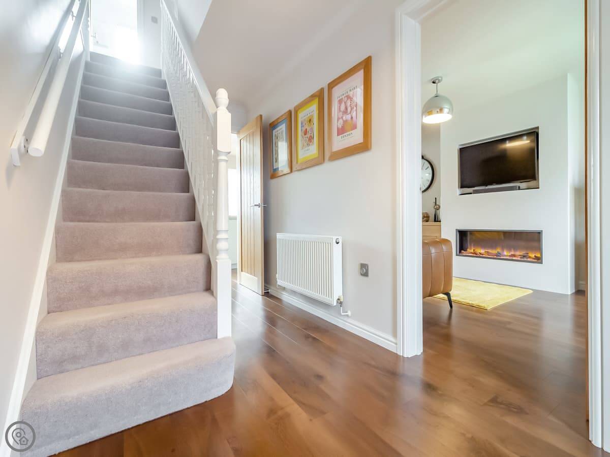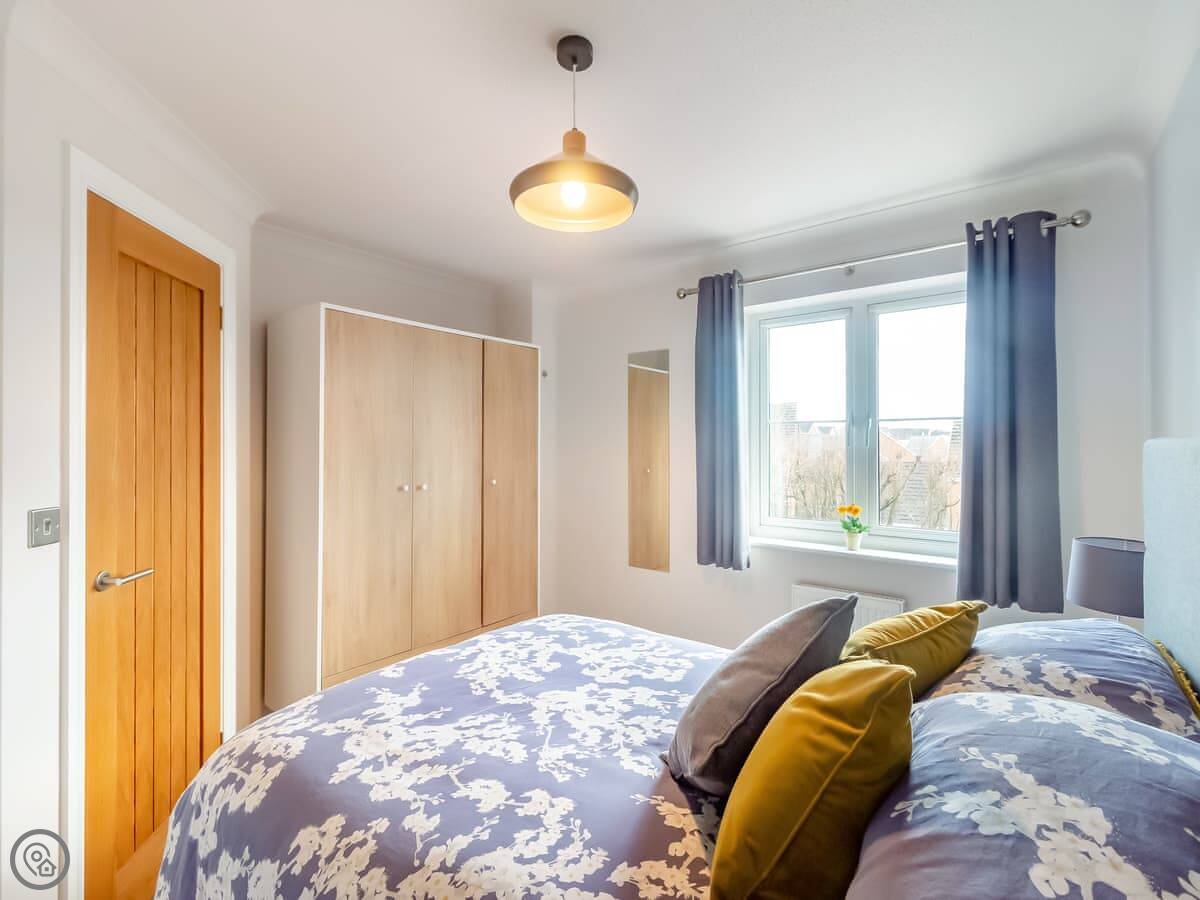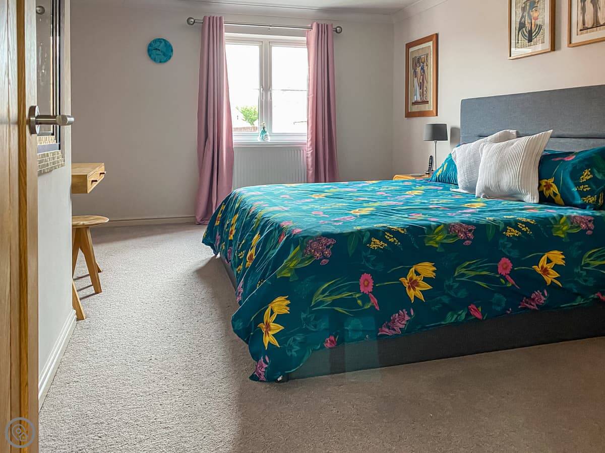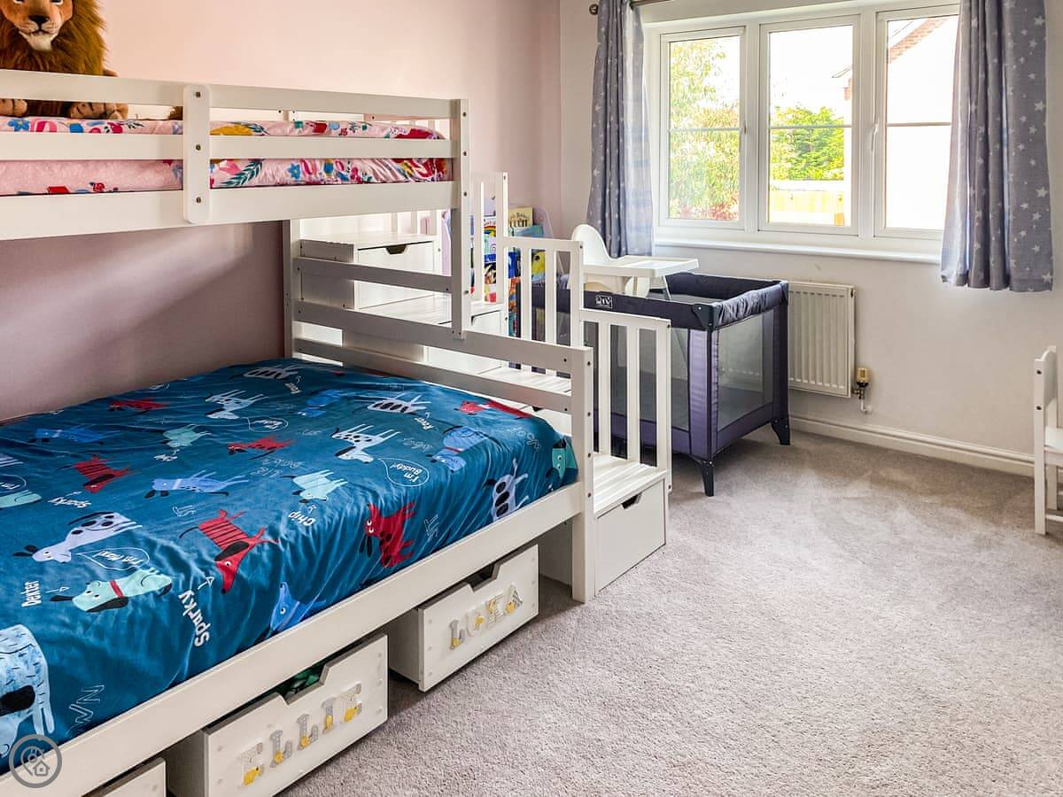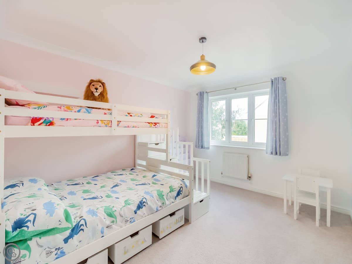 Upstairs, the main bedroom has a Tempur mattress. There are two other double rooms. The fourth room has a double bed with a single bunk above it, so it's good for kids.