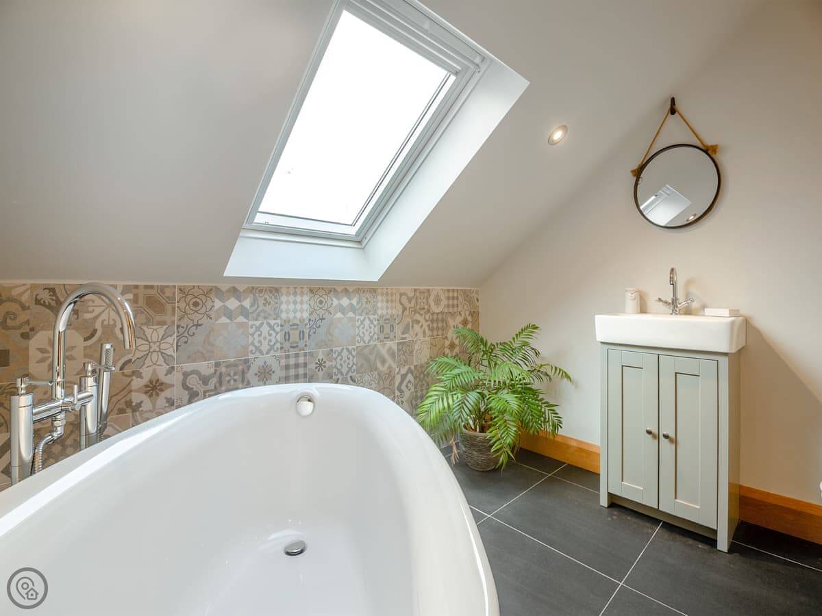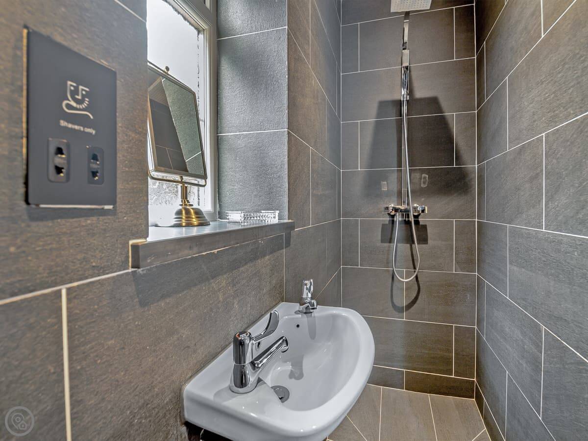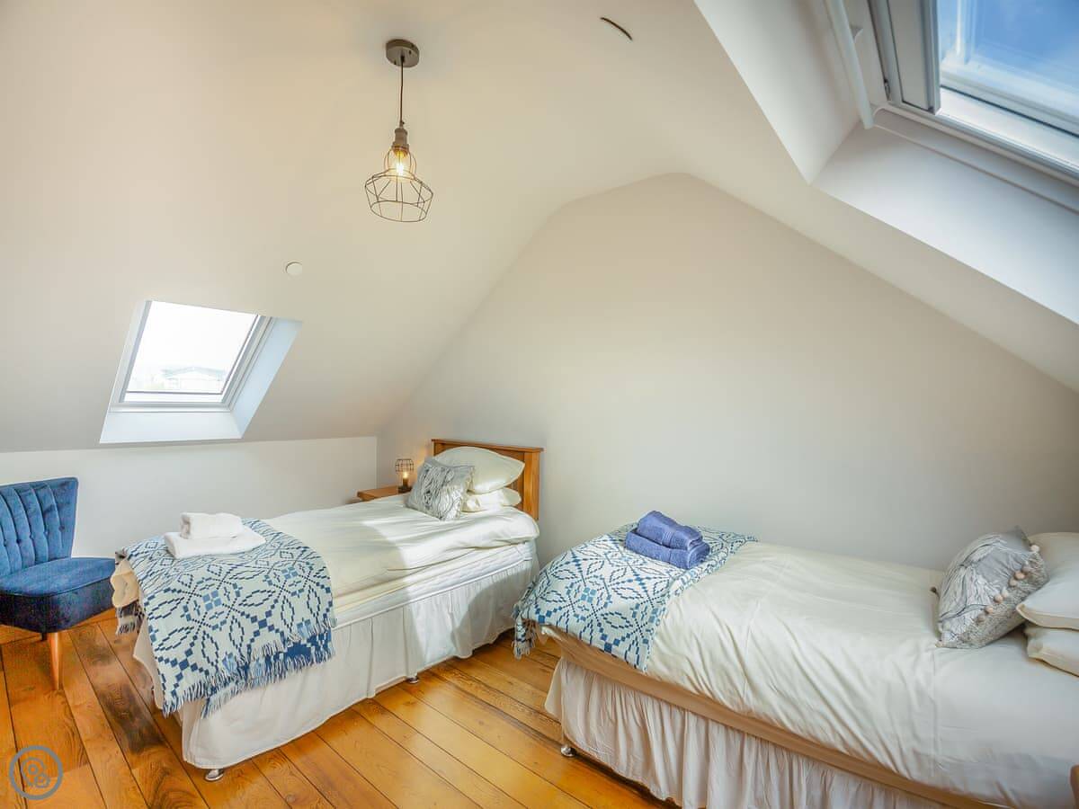 It sleeps four, two bedrooms and two bathrooms. Both bedrooms have big superking beds but we can split them into twins if you'd prefer. One bathroom is a wet room on the ground floor. It's got a 5 Star rating, which means it's kept to a high standard. There's parking right outside.