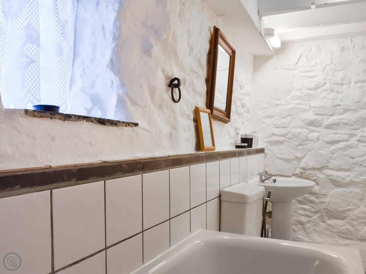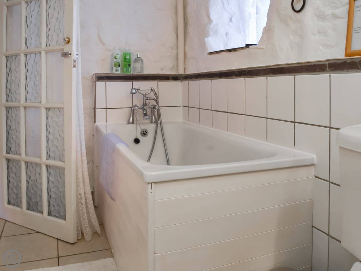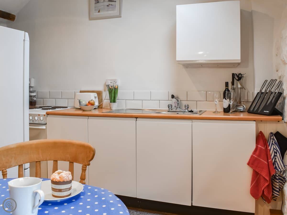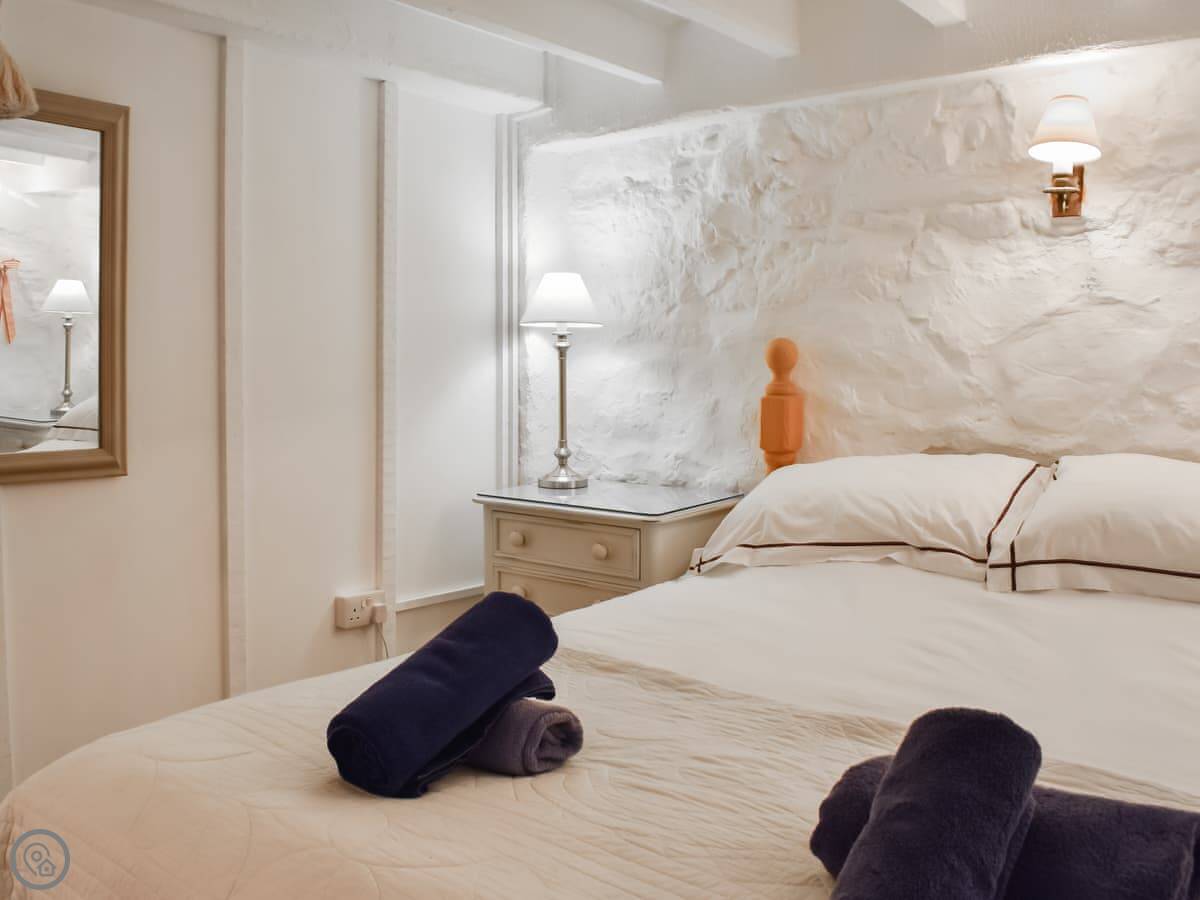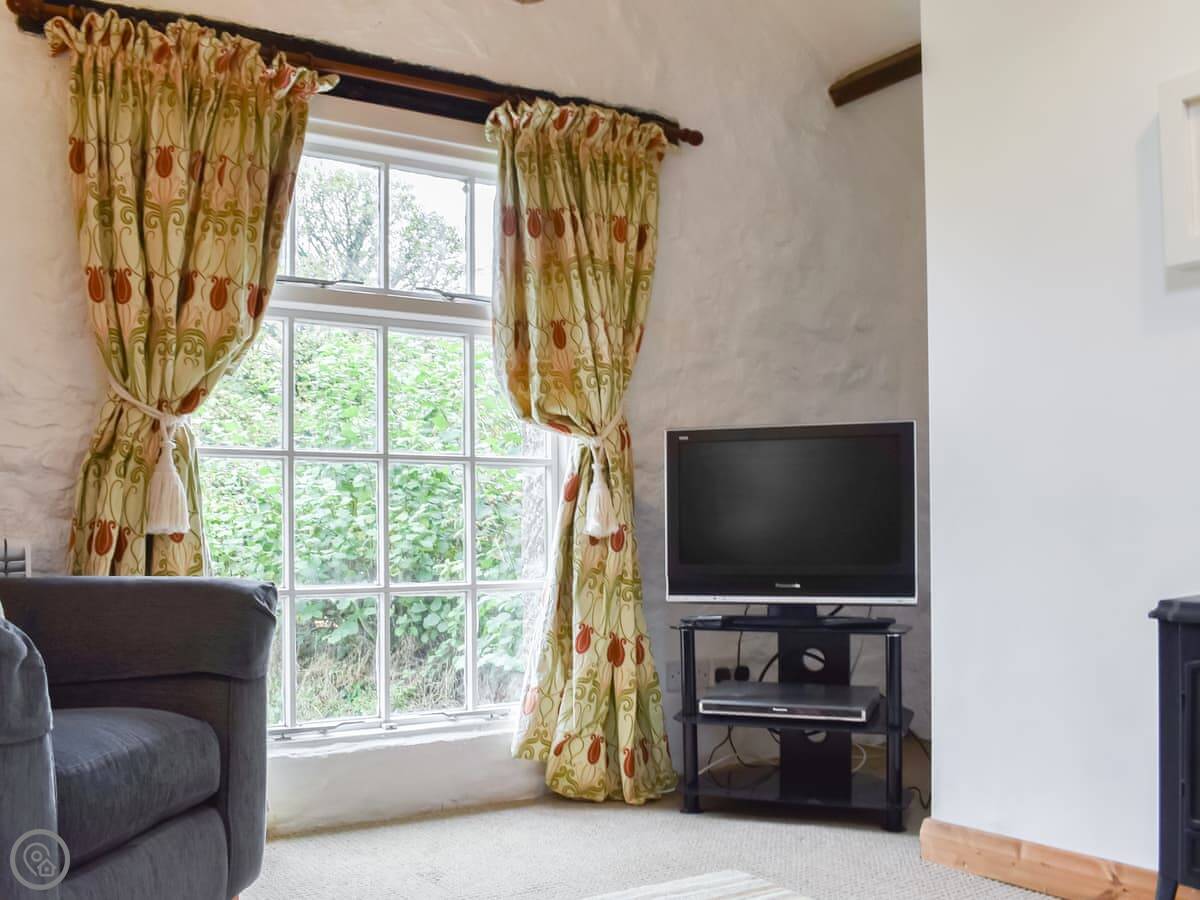 It sleeps two. One bedroom, one bathroom. It's got a 3 Star rating. It's clean and comfortable but not fancy. The cottage used to be a cider house. There's an old cider press in the garden and a bottle hidden in the lounge ceiling upstairs.