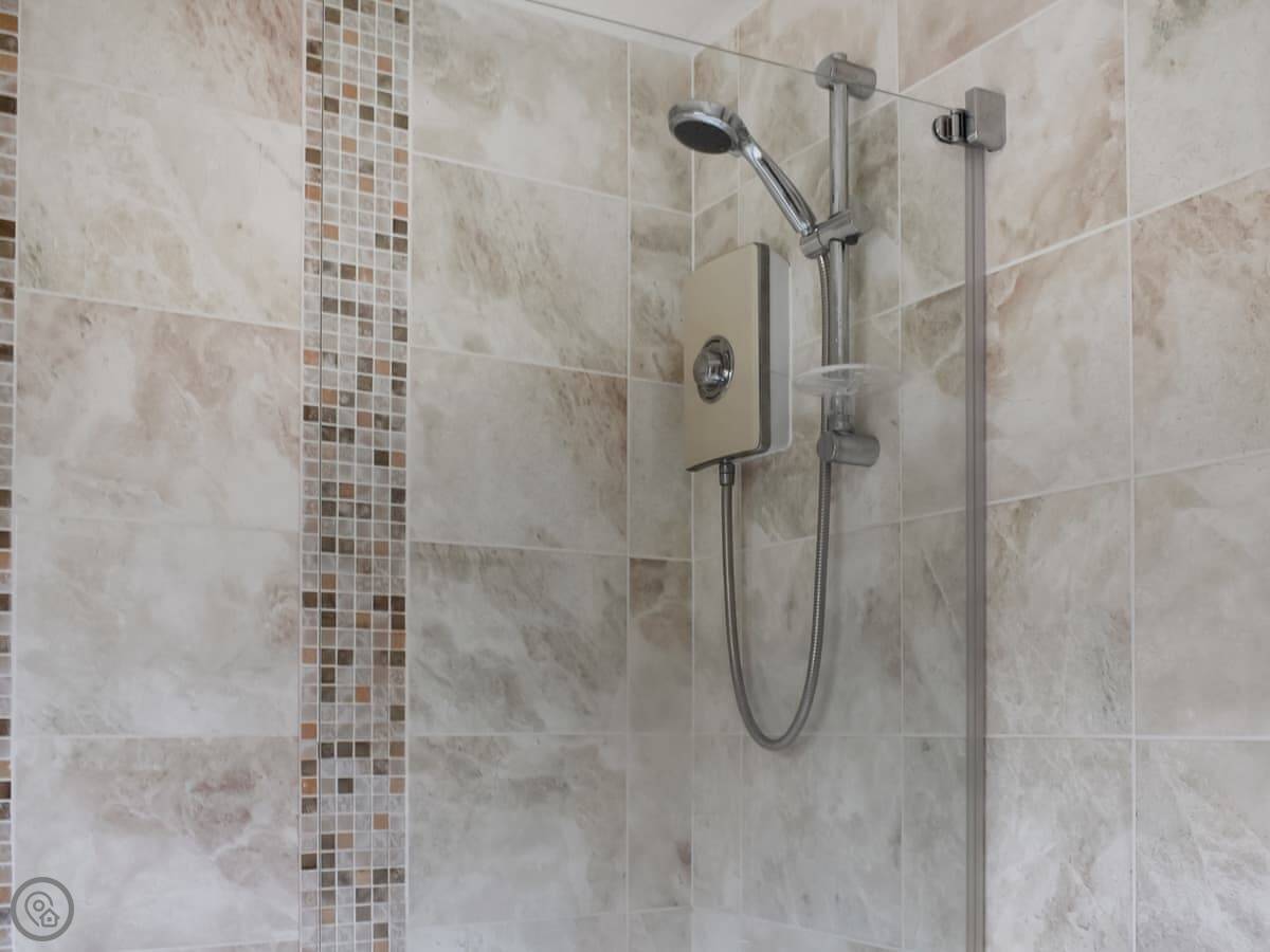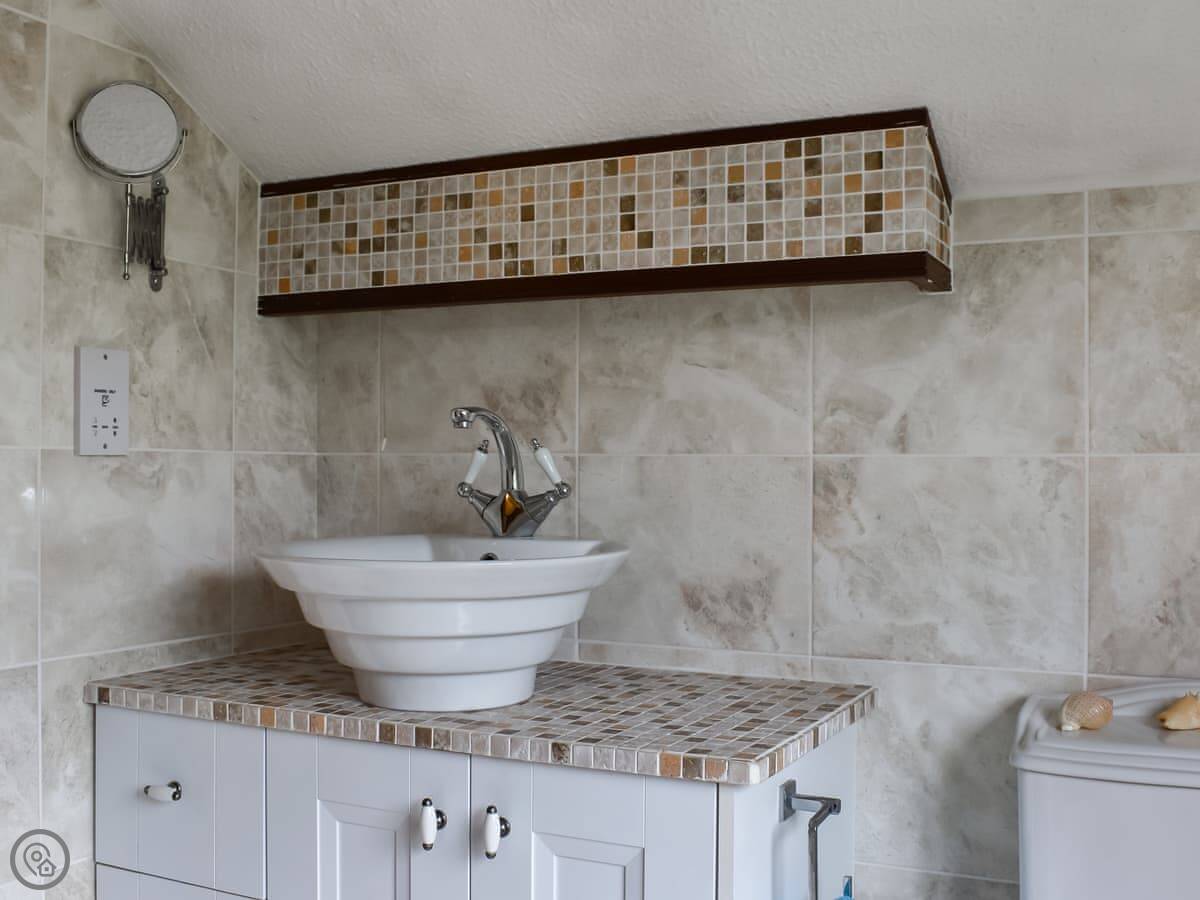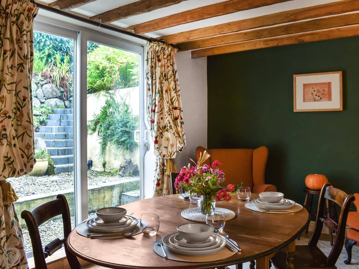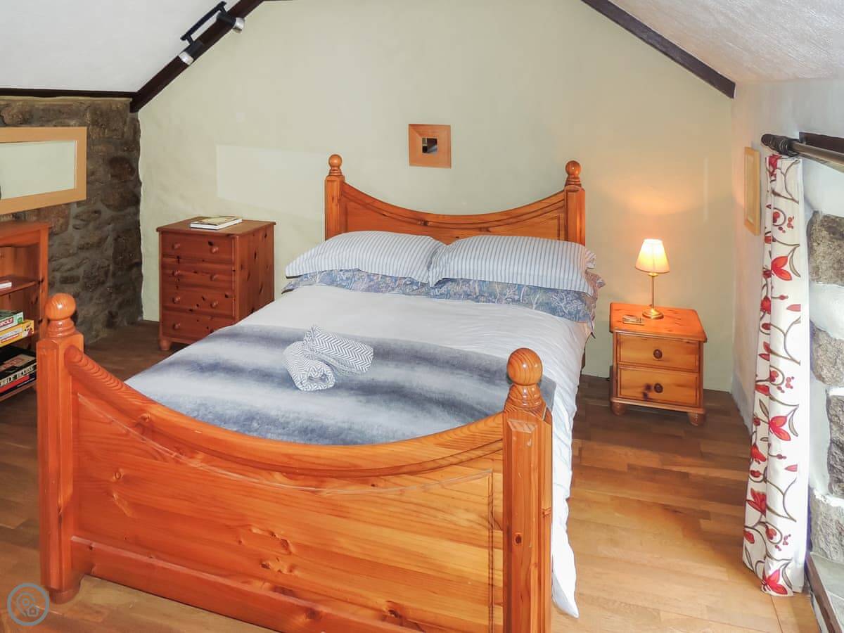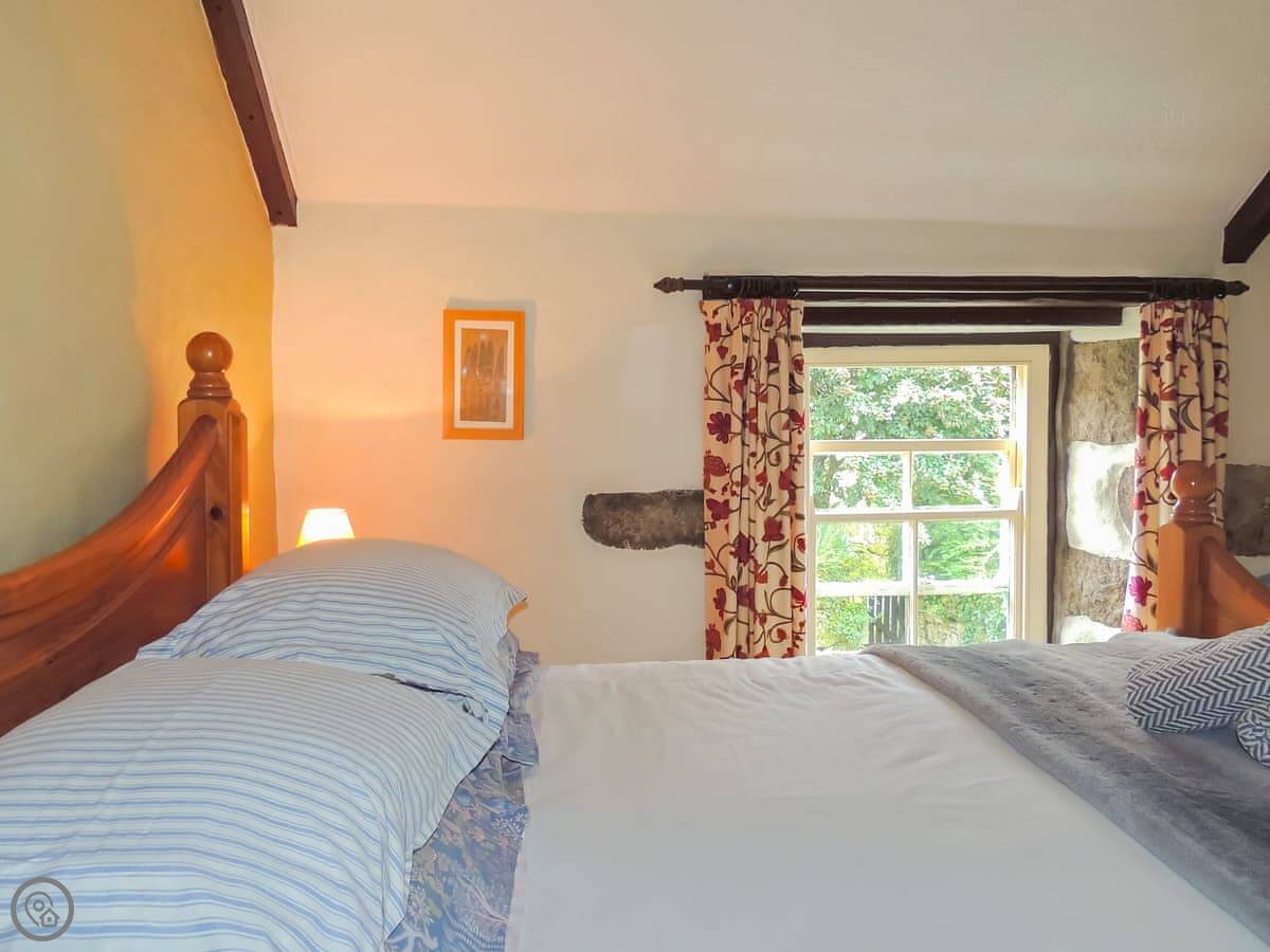 It sleeps four, with two bedrooms and one bathroom upstairs. It's got a 4 Star rating. It's not huge, but it's comfortable. There are low beams upstairs, watch your head.