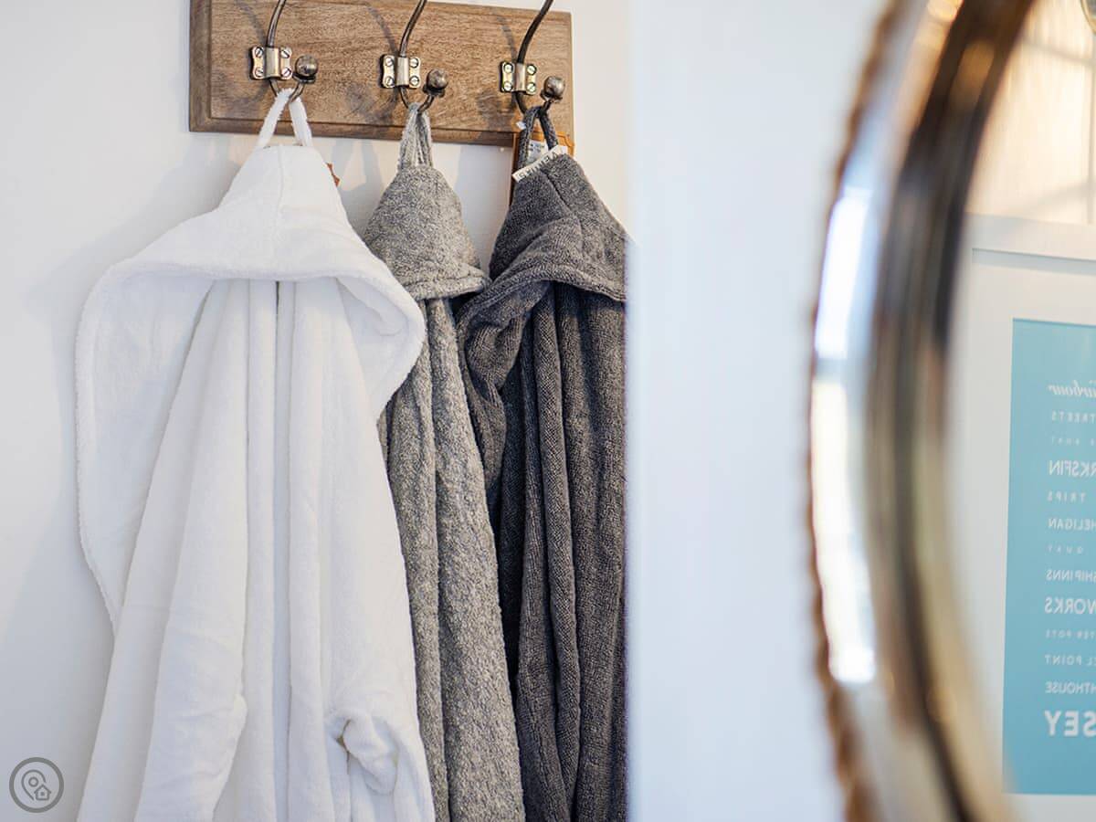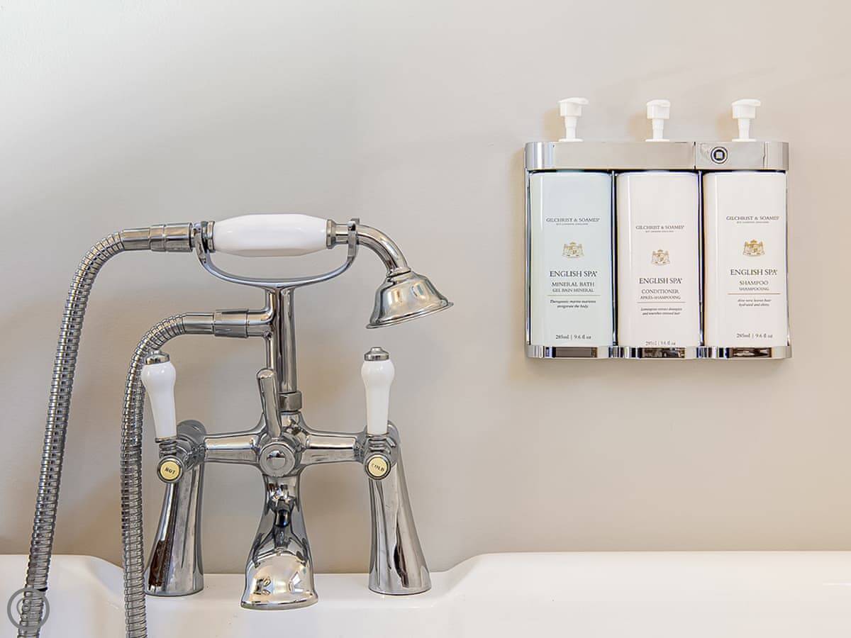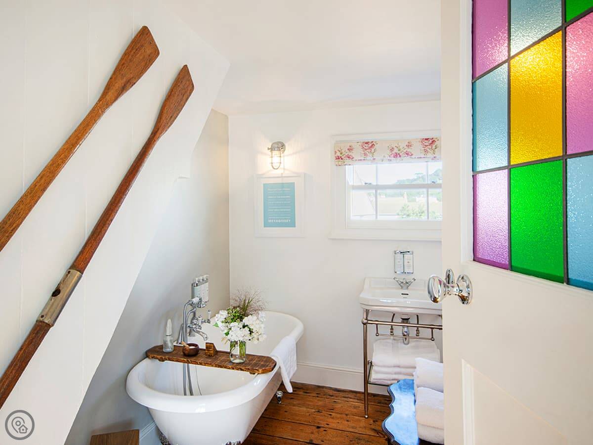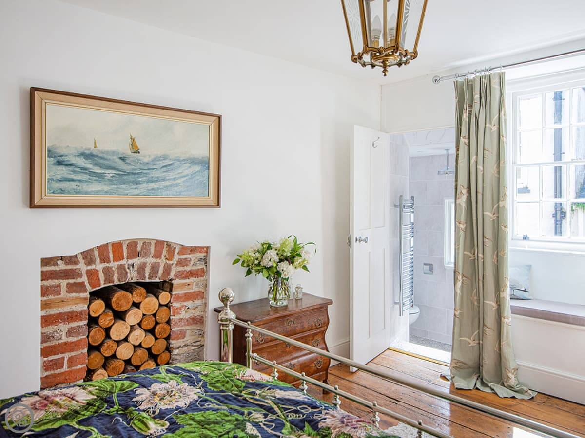 It sleeps four people in two bedrooms. They've both got super king-size beds. One has an en suite wet room. There's one other bathroom with a roll-top bath. The stairs are quite steep, which is normal for these old places.