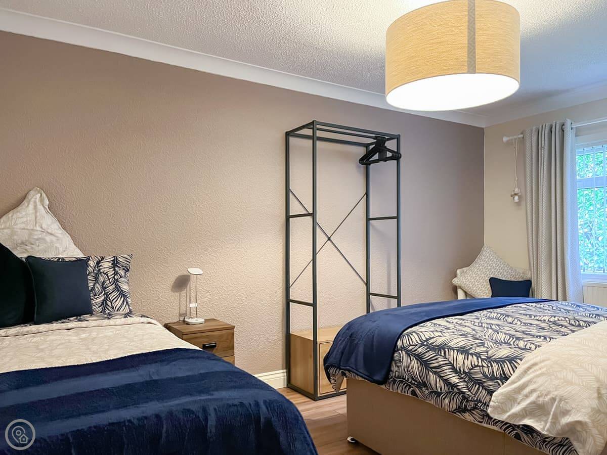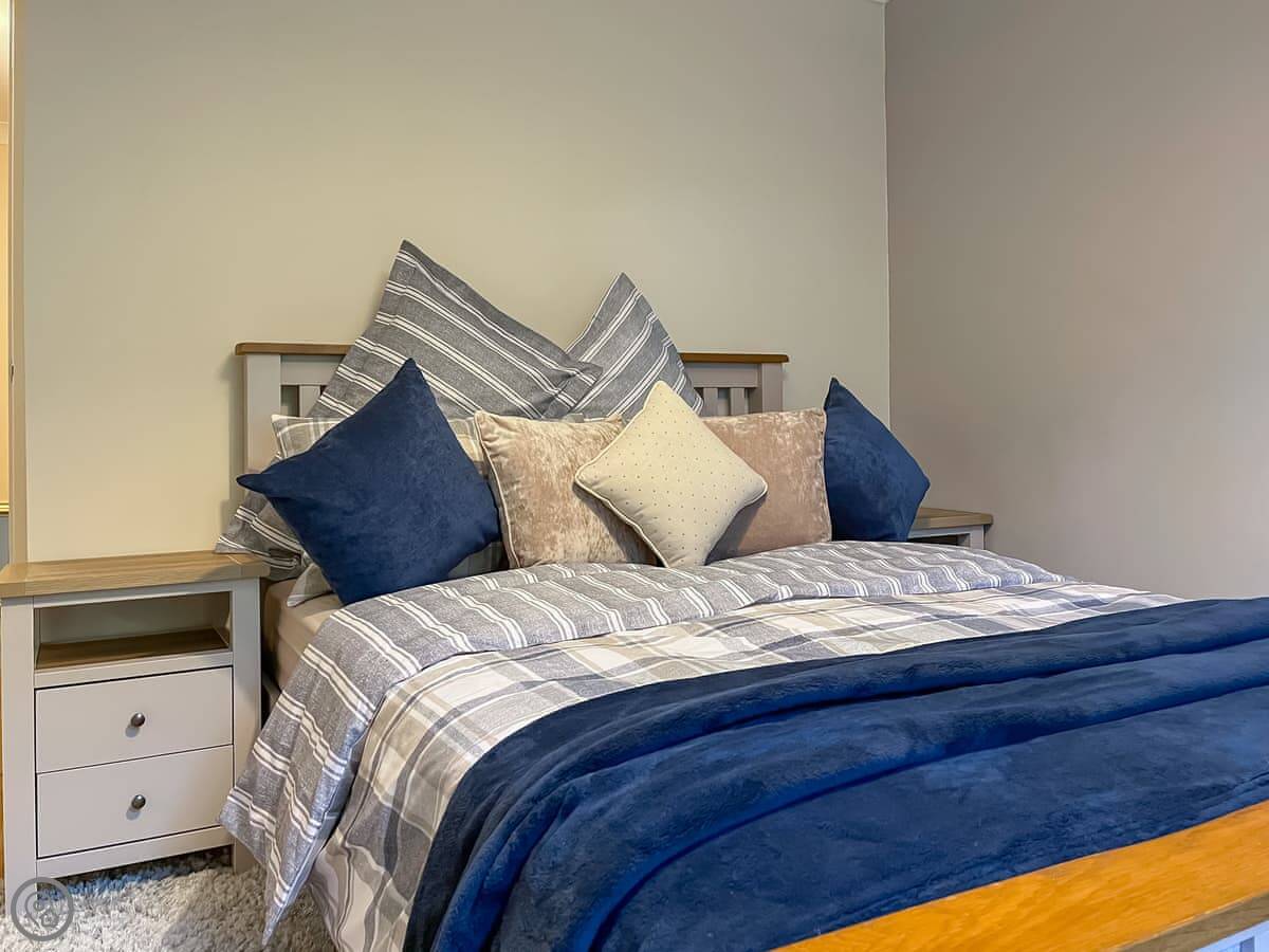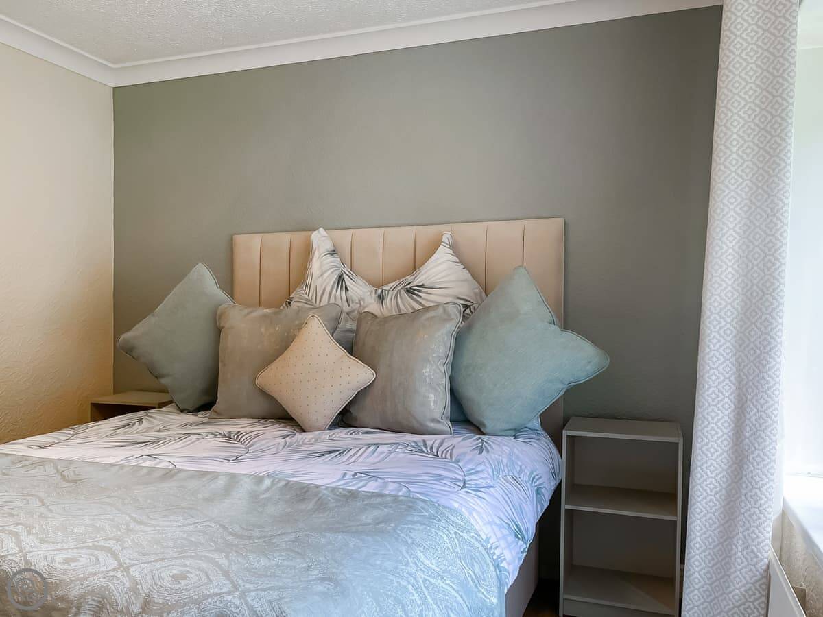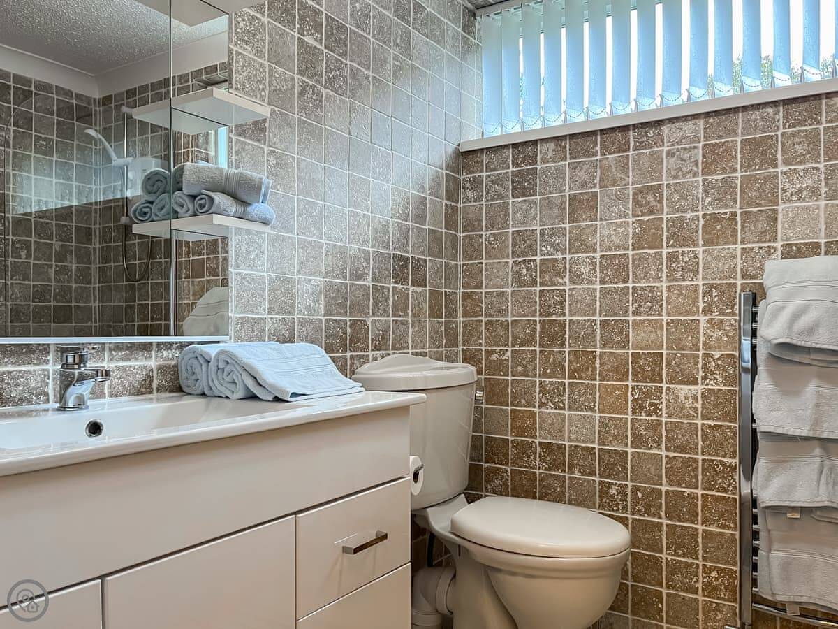 There are three proper bedrooms for seven, and then two sofa beds for another four. One sofa bed is in the main living room, the other is in a separate snug room downstairs. That gives you some space to spread out. There are two bathrooms.