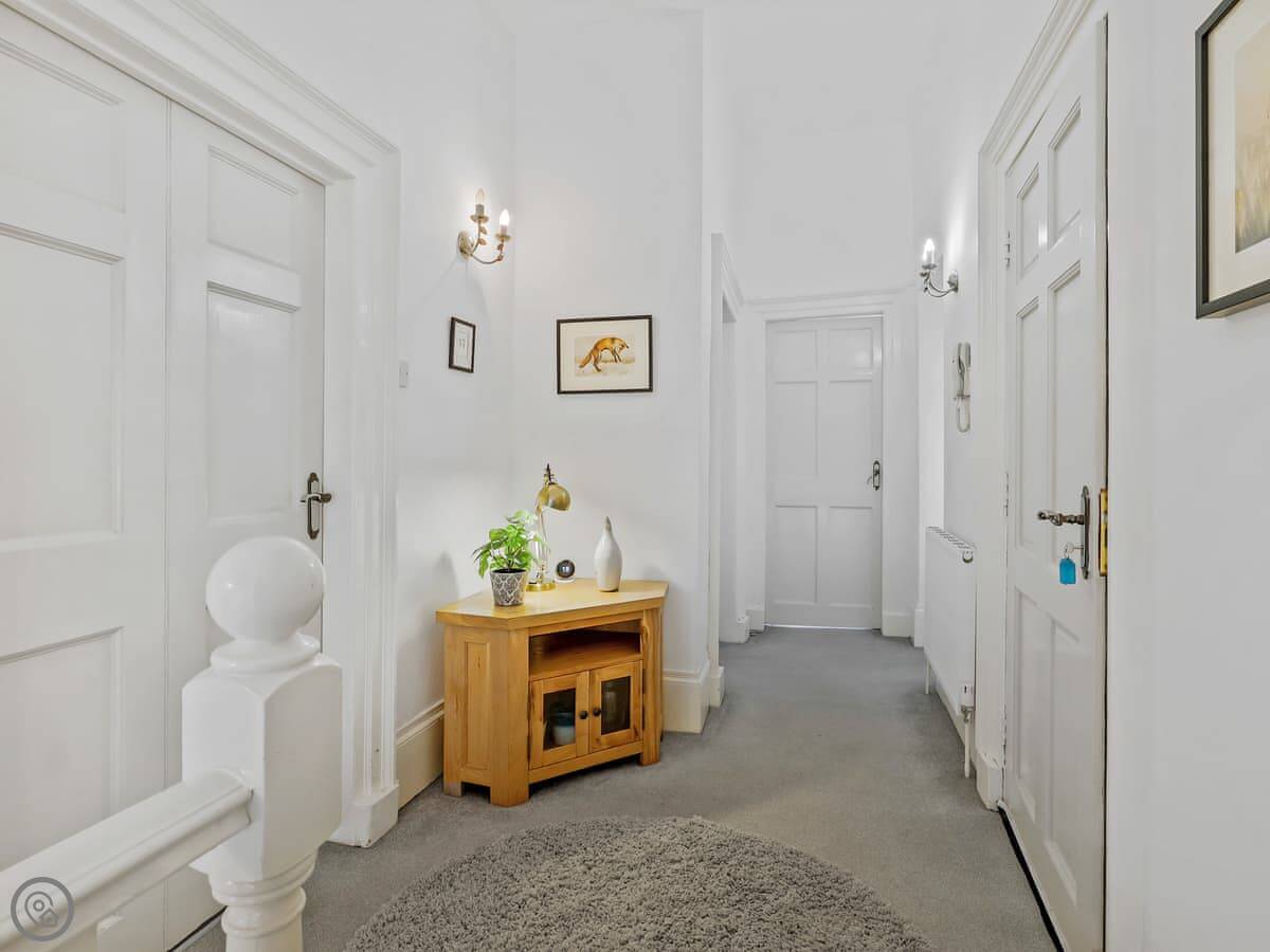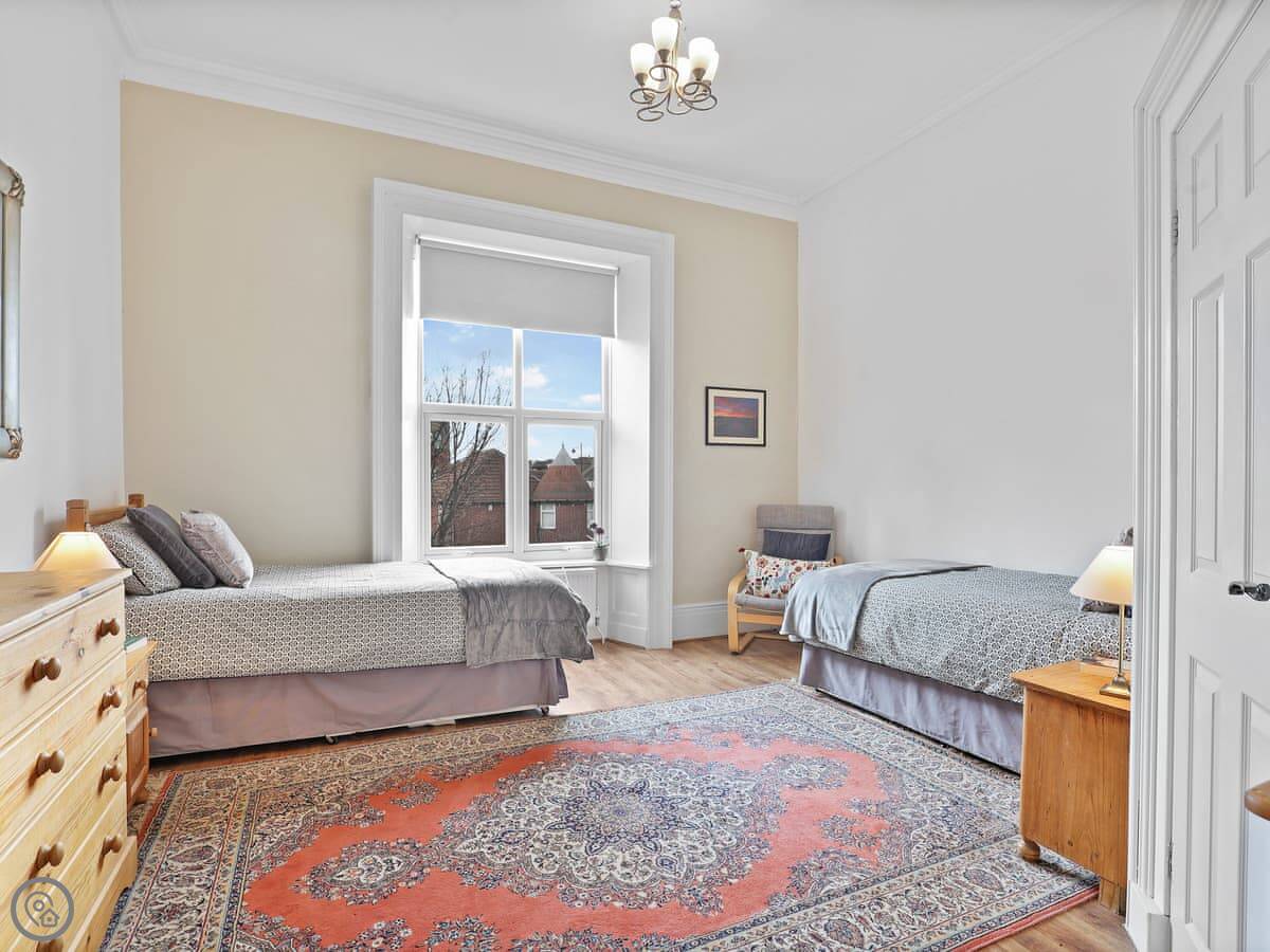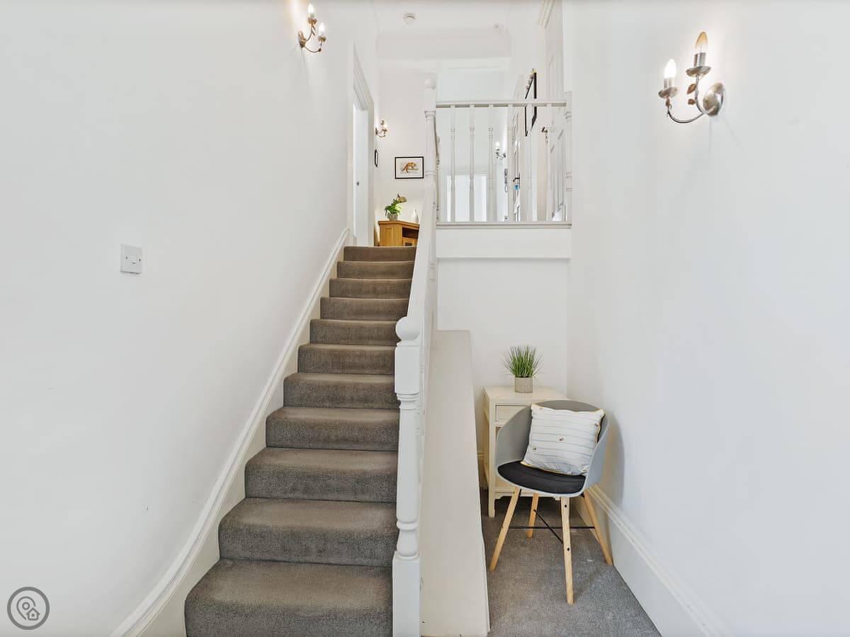 It sleeps five. Three bedrooms, two bathrooms. One bedroom has an en-suite and beds you can split into twins. It's got a 4 Star rating. It's modern and clean. The stairs inside the flat are open-tread and a bit steep, just so you know.