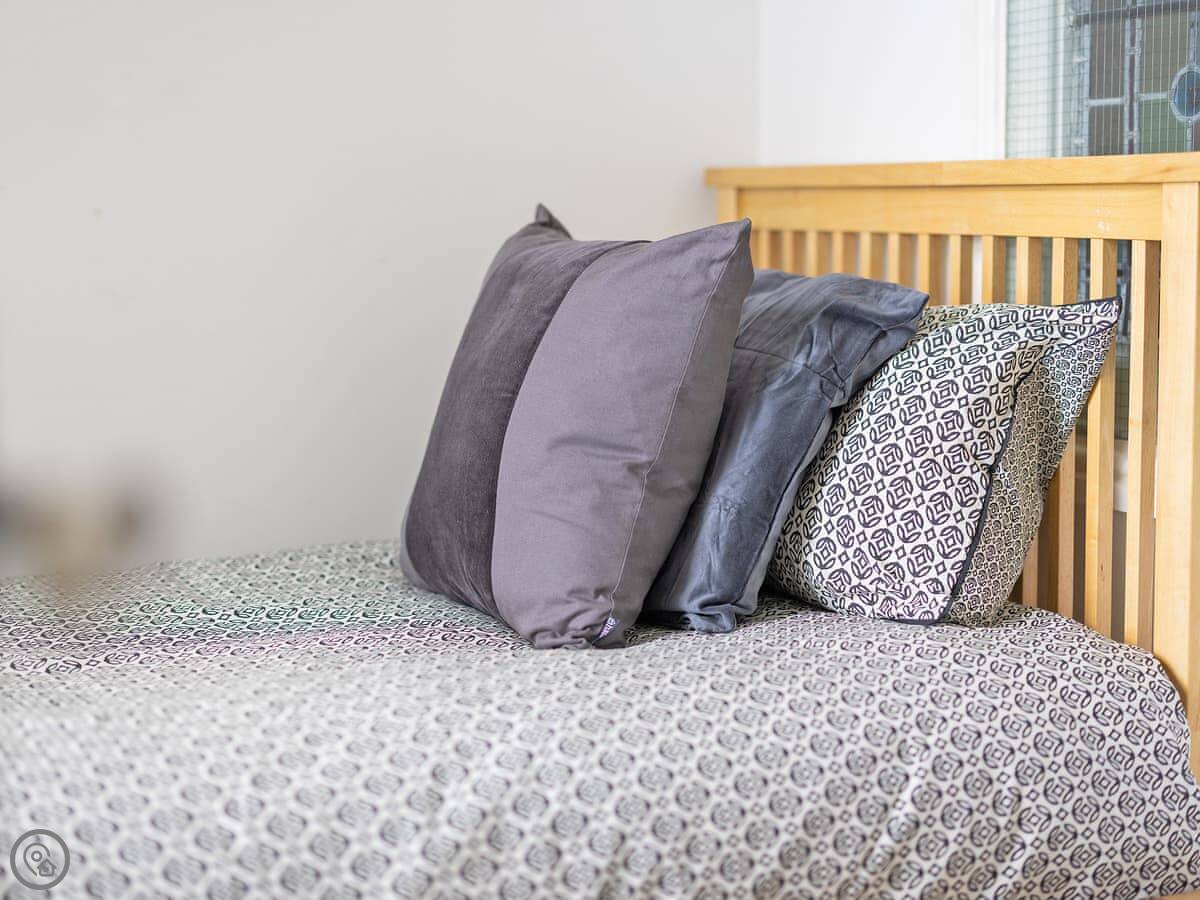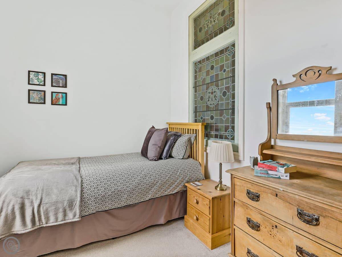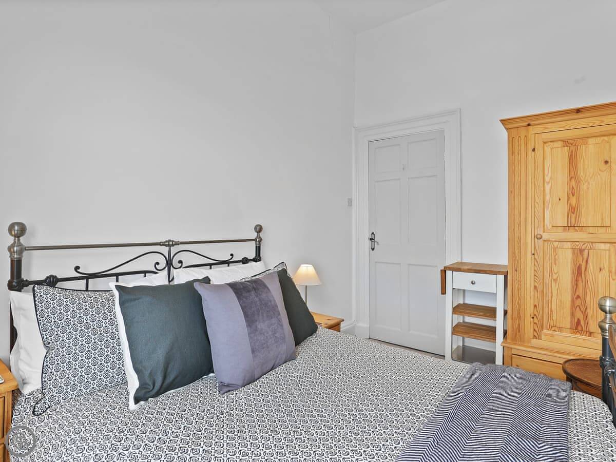 It sleeps five. Three bedrooms, two bathrooms. One bedroom has an en-suite and beds you can split into twins. It's got a 4 Star rating. It's modern and clean. The stairs inside the flat are open-tread and a bit steep, just so you know.