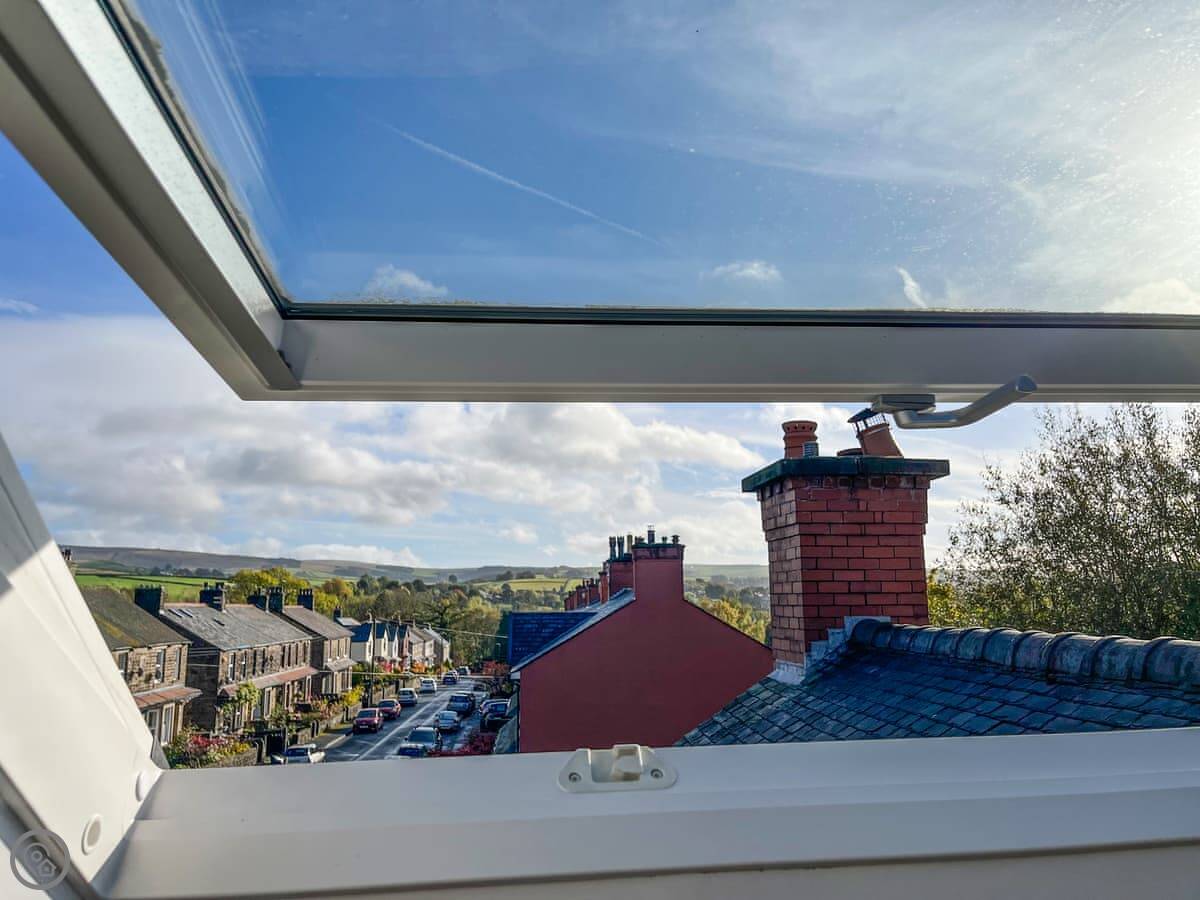 Cracken Cottage is here in Chinley. It's on a main road, so you get the church and the shops and the station close by. The trade-off is some traffic noise, but you're right in the middle of things.