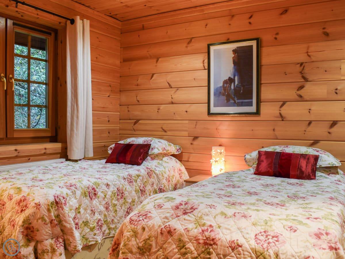 It sleeps six. Three bedrooms, two bathrooms. One is an en-suite off the main bedroom. The other is a Jack-and-Jill between the two twin rooms downstairs. It's got a 3 Star rating, so it's clean and comfortable but don't expect anything luxurious.