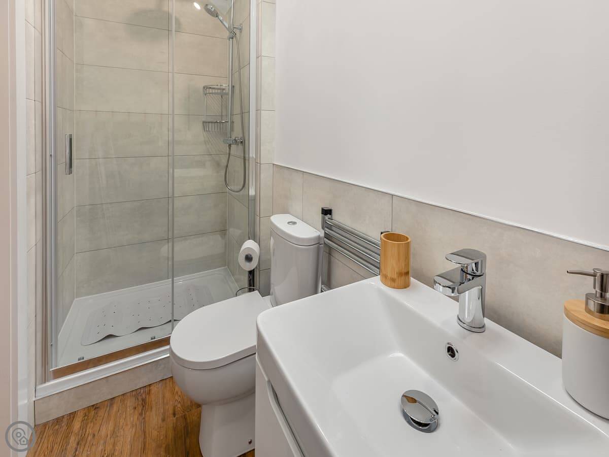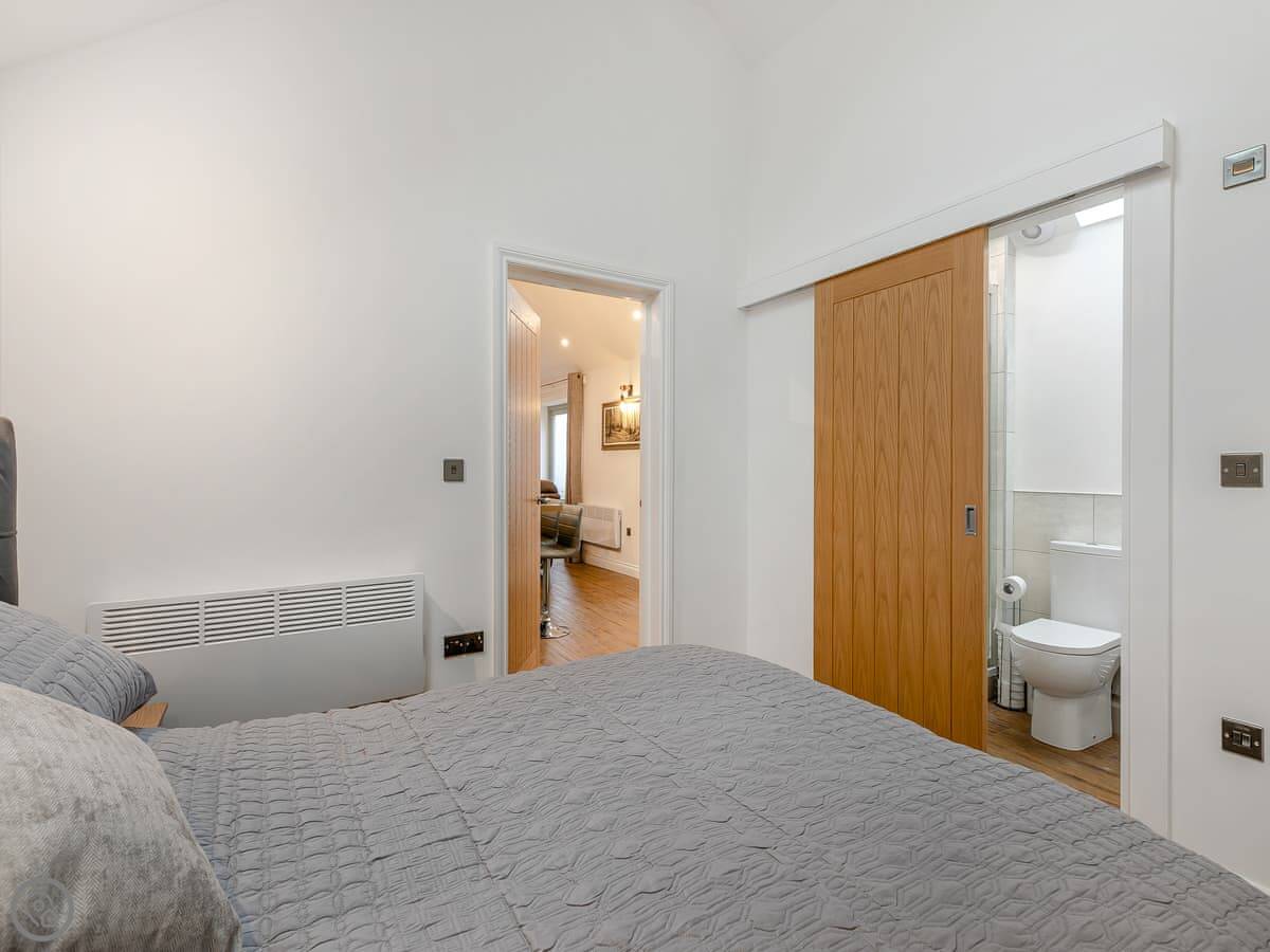 It's got a 4 Star rating. That means it's comfortable and well-equipped. There's a hot tub outside. The shower is in the bedroom, an en-suite. No separate bathroom.