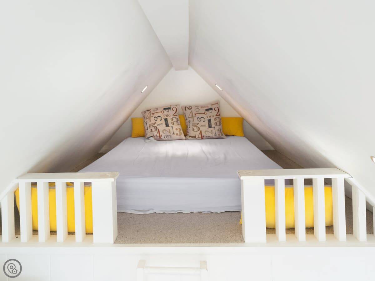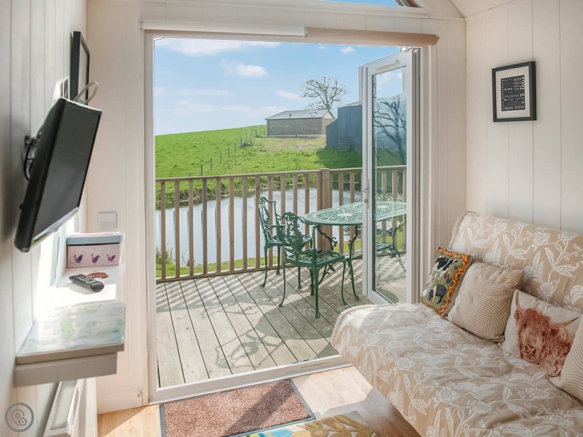 The I-Hut is a modern shepherd's hut on our farm in Virginstow. It's detached, so you're on your own out there. It sleeps four, but that's in one bedroom with a double bed and a double sofa bed in the main space. It's open plan.