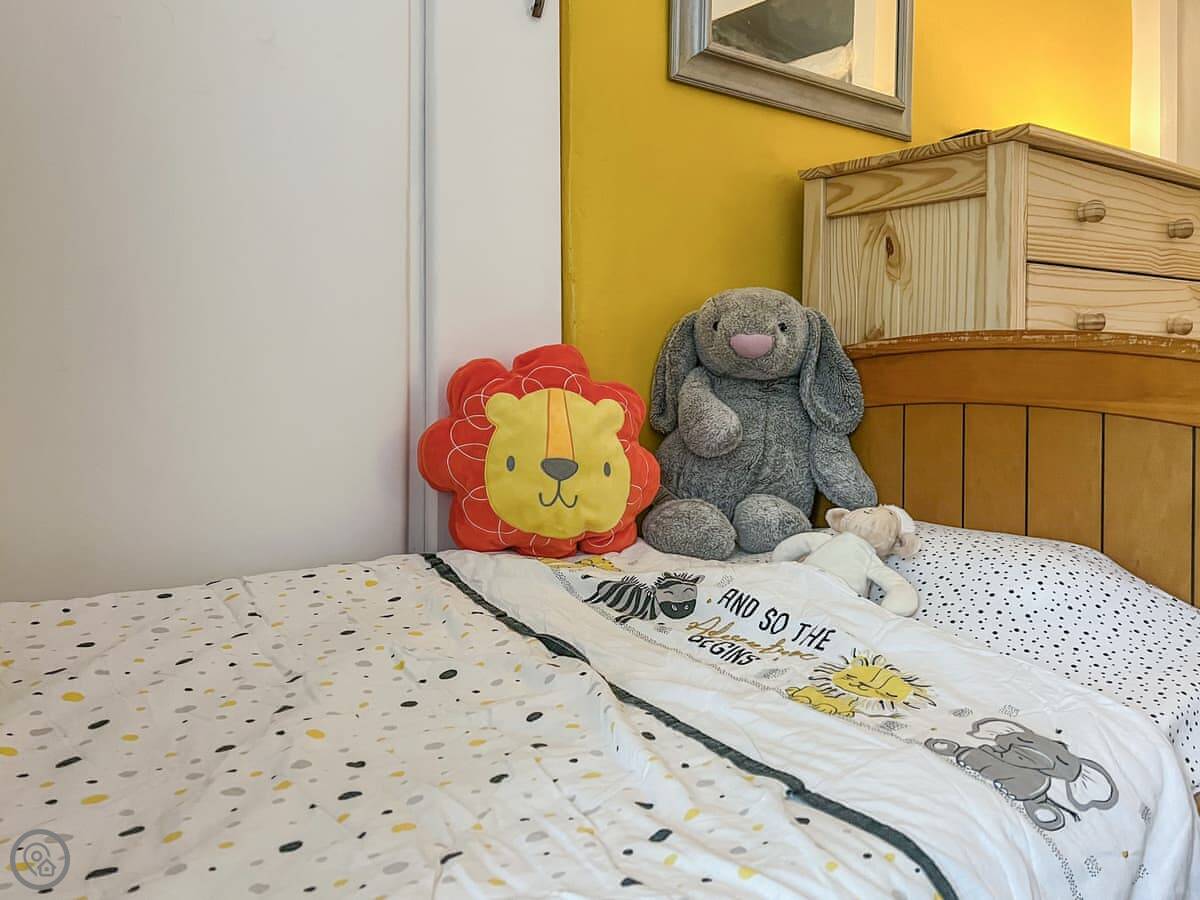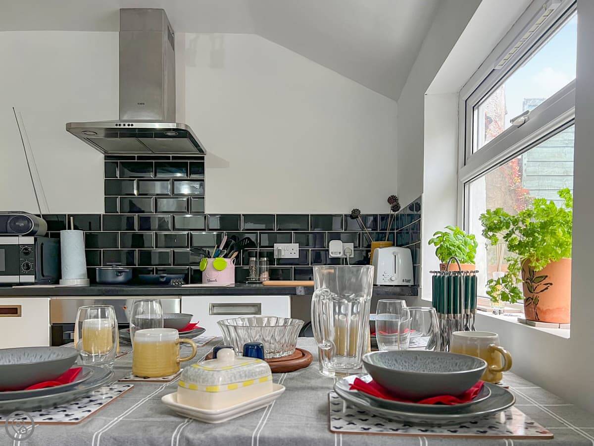 There’s an enclosed garden. You can store bikes there if you bring them. The facilities are all the usual things: washing machine, dishwasher, WiFi, TV. Bedding and towels are included. There's a cot and a highchair if you need them. You can bring up to two dogs.