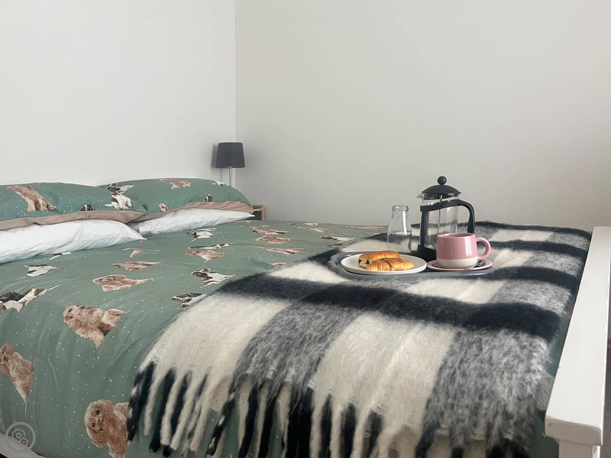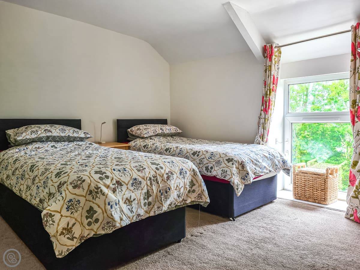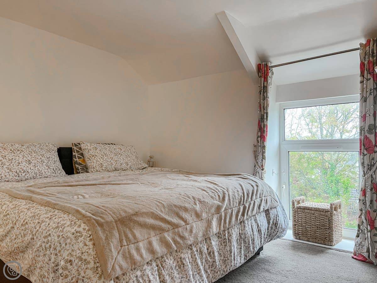 The main upstairs bedroom has a kingsize bed that can be split into two singles if you need it. The old stone staircase is still there. It's a nice feature but it is a cottage staircase, so mind your head and watch the steps.