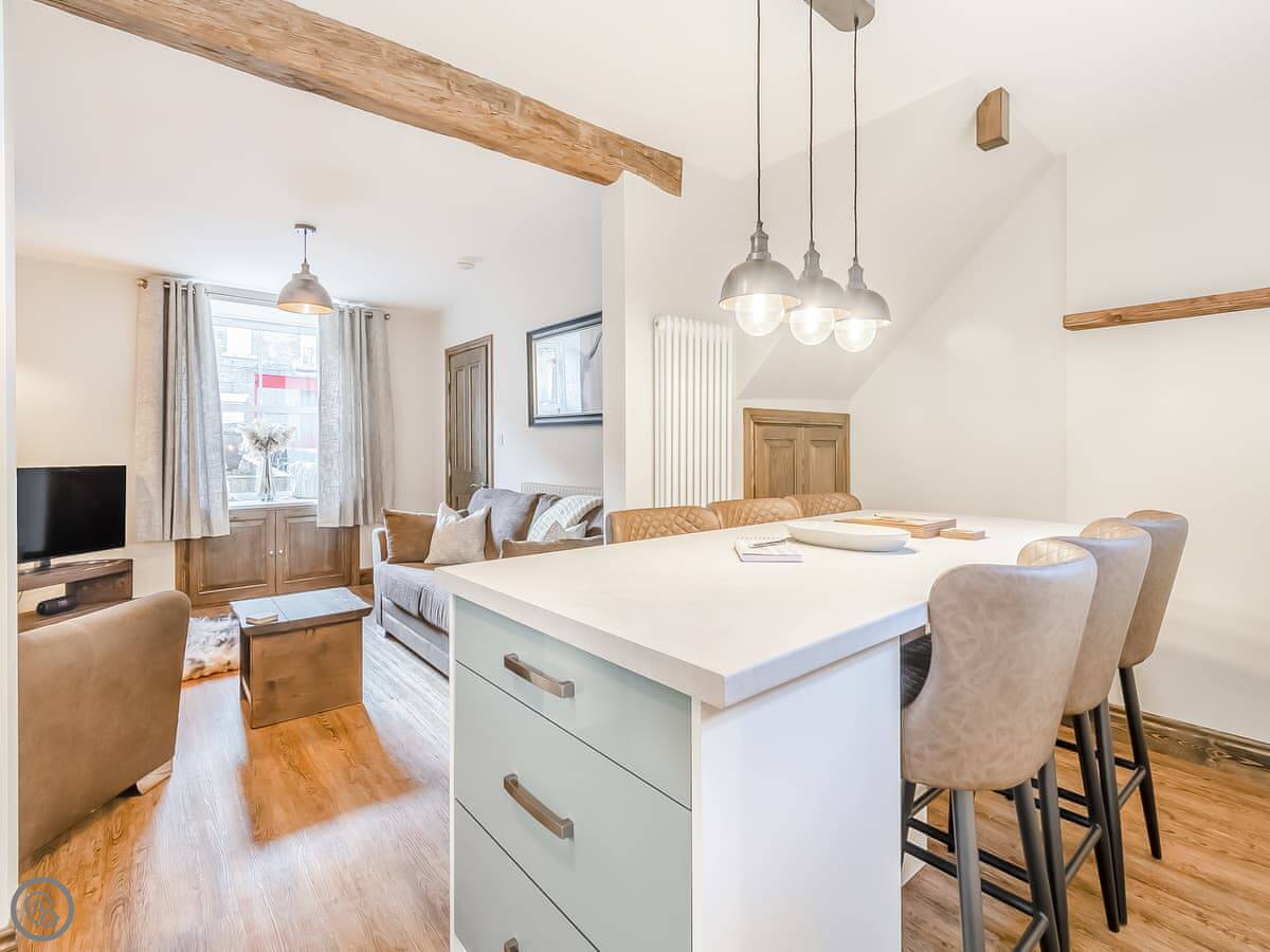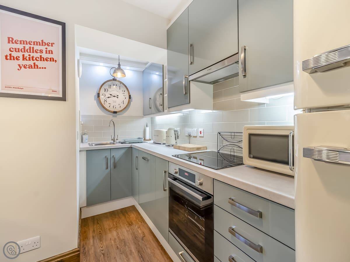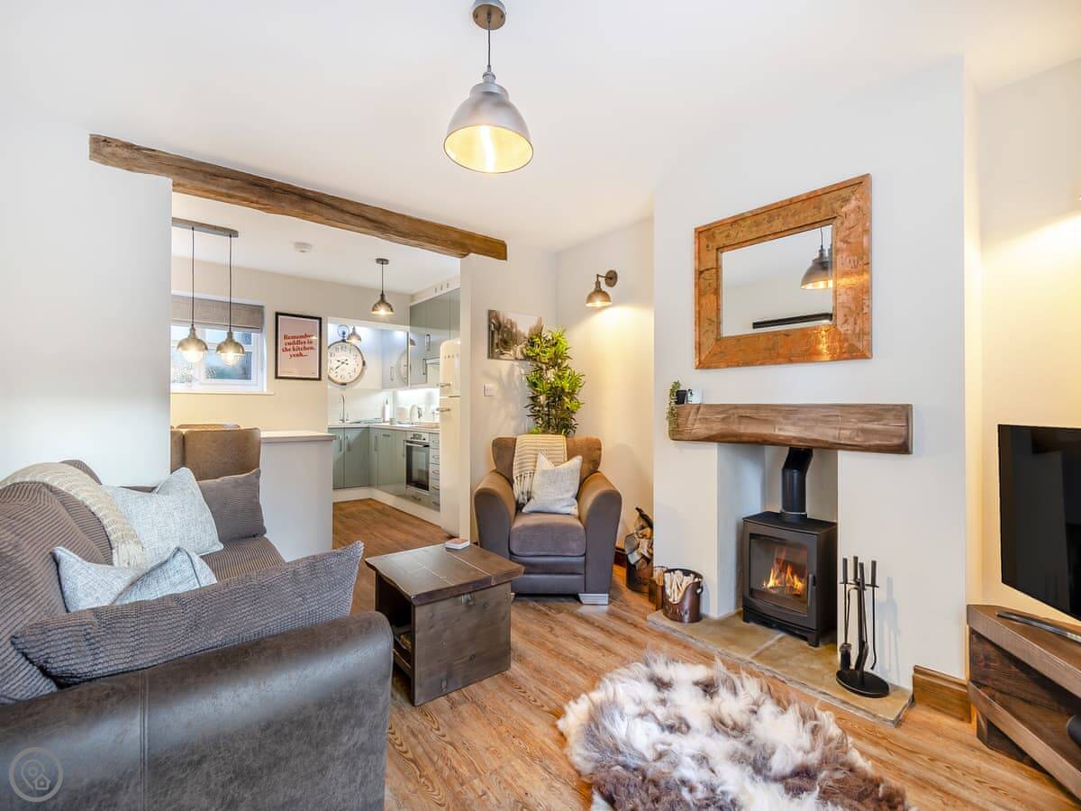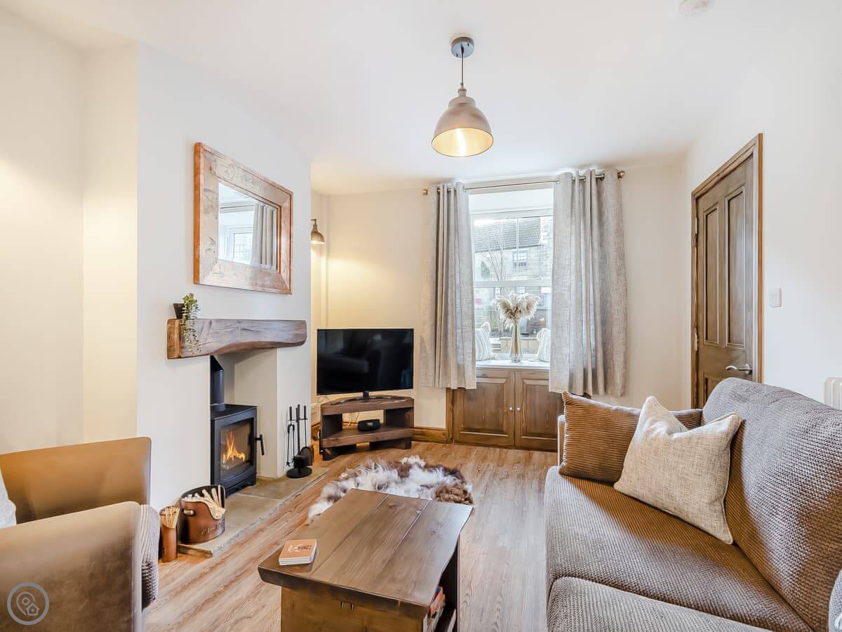 You've got a wood burner in the living room. The kitchen is new with a dishwasher. There's a small patio out the back. Parking is right outside the door, which is useful in a town like this.
