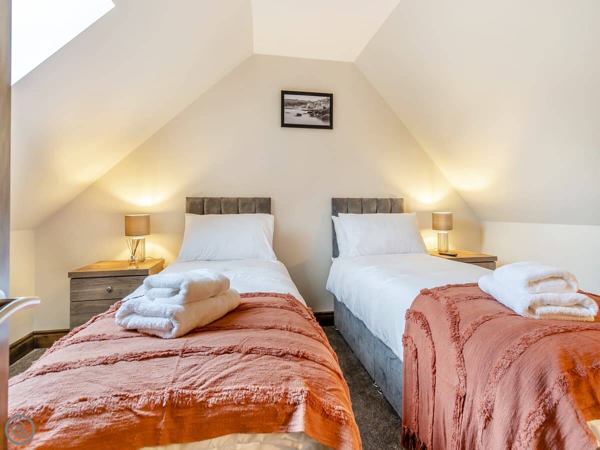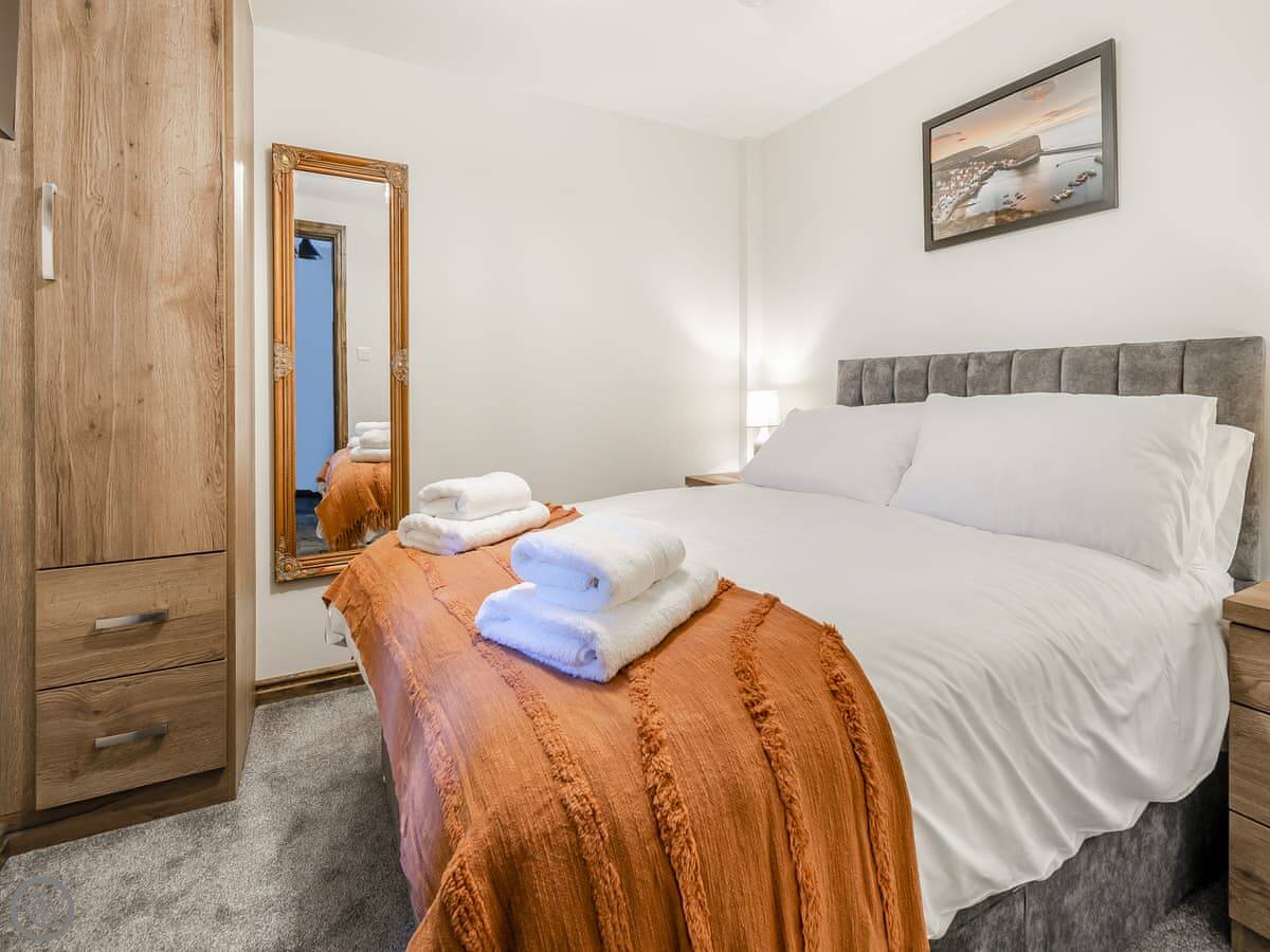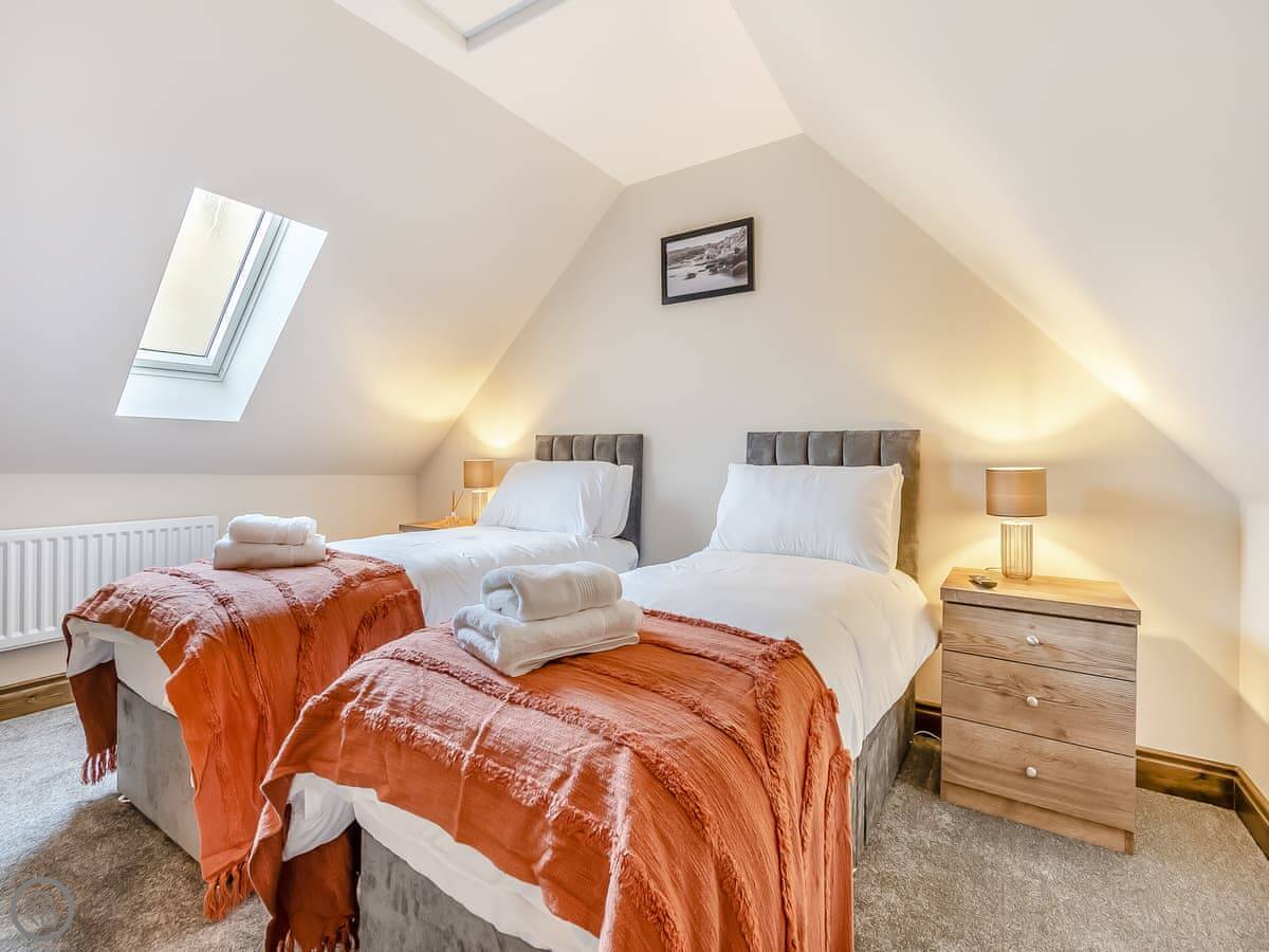 It's a terraced cottage, done up recently. Sleeps six. Three bedrooms and one bathroom. The main bedroom is on the top floor. The bed can be made up as a super king or twins. That's handy. The stairs are a bit steep and twisty, so watch your head.