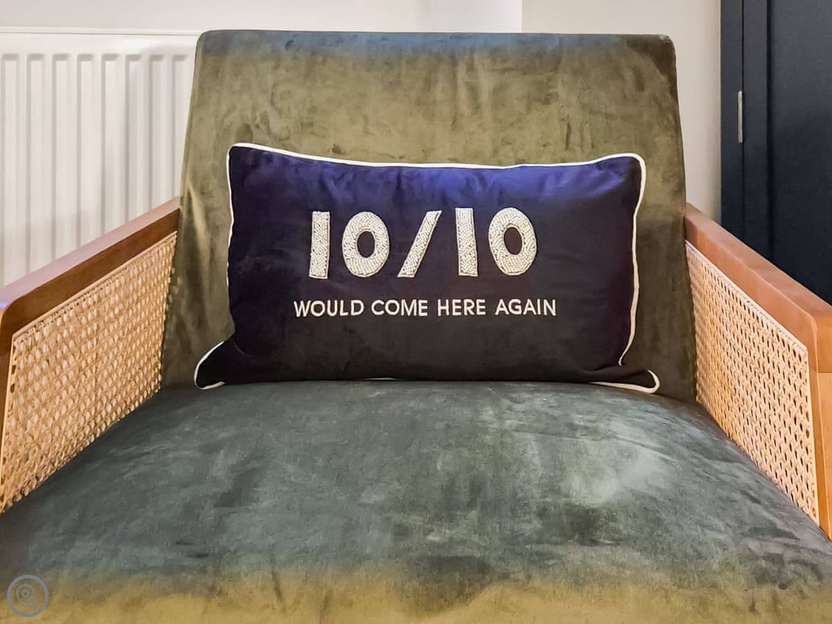 The cottage has a 5 Star rating. That means it’s well equipped and finished to a high standard. Everything’s included: bedding, towels, WiFi, a washing machine, that sort of thing.