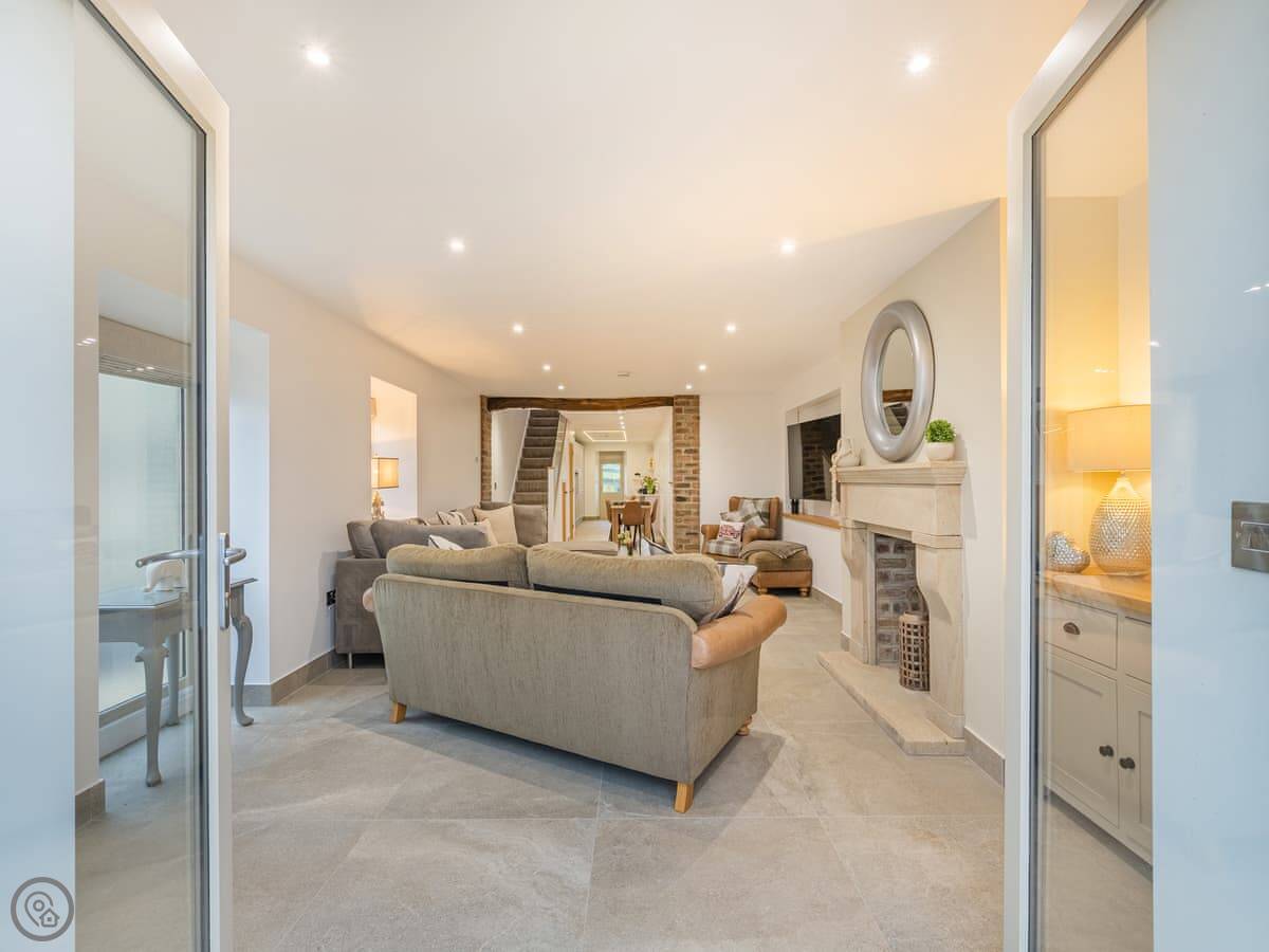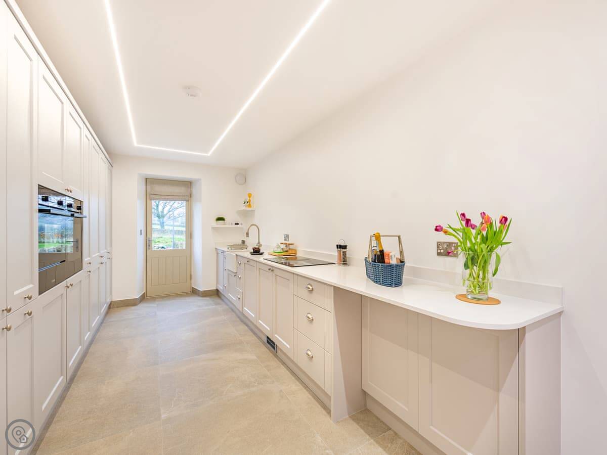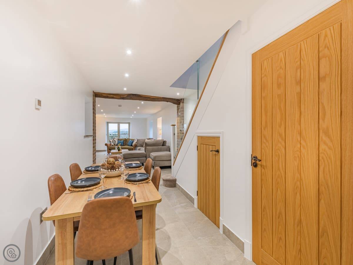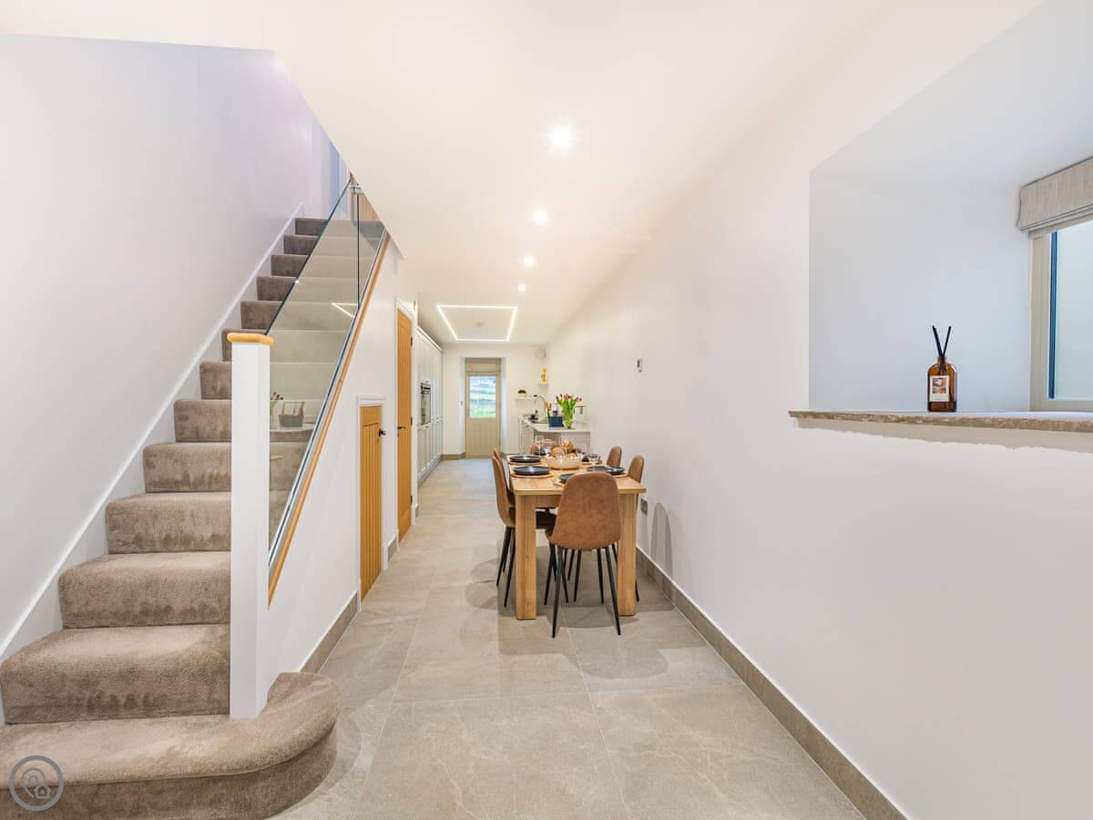 The main living space is all open plan. Kitchen, dining, lounge. It's a big room so you're not on top of each other. There's a desk on the upstairs landing if you need to work.