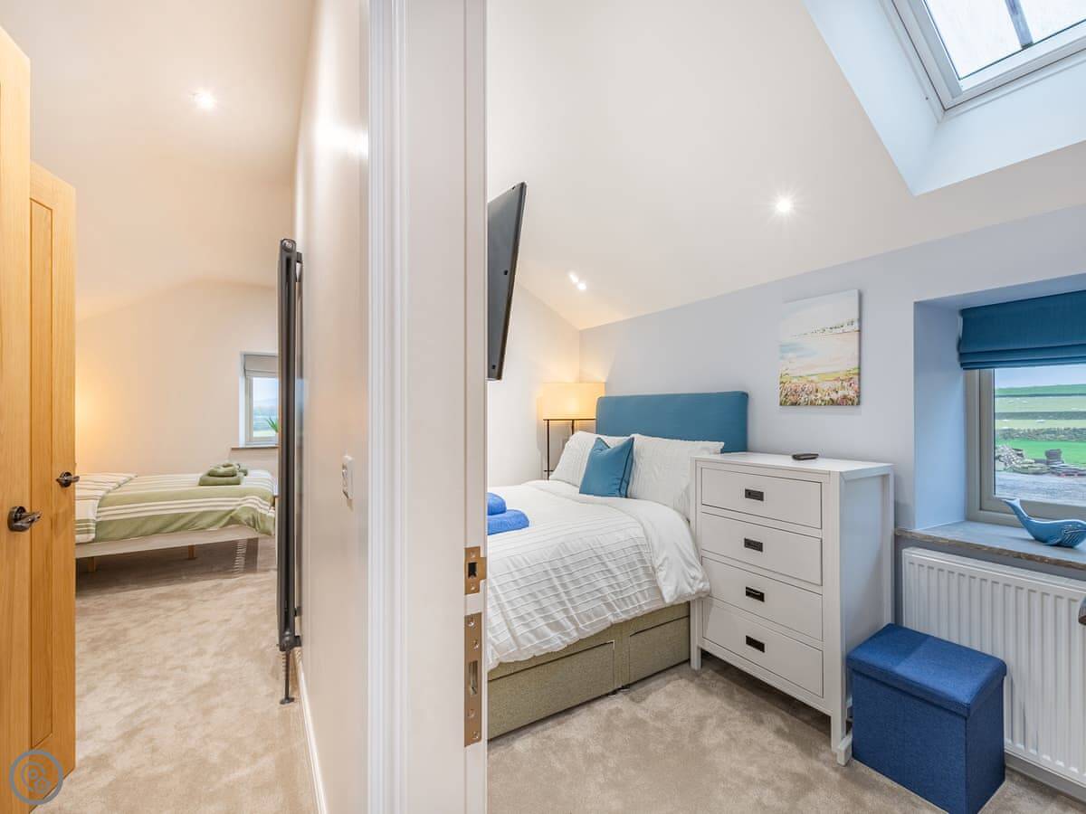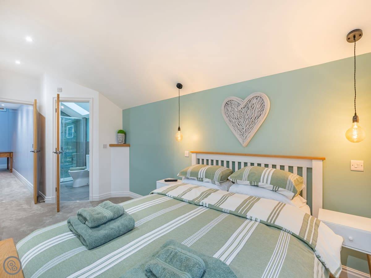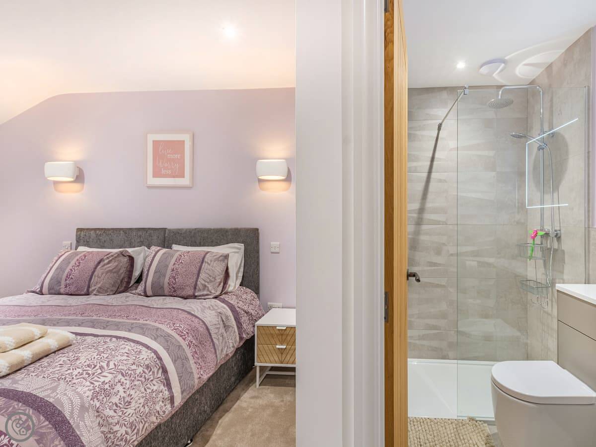 It sleeps six in three bedrooms. Each room has its own shower room, which is useful. One bedroom has a super king bed that can be split into two singles if you prefer.