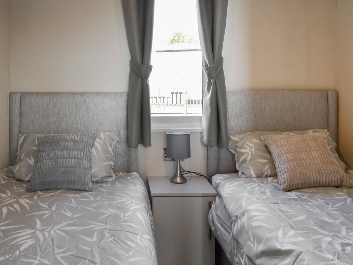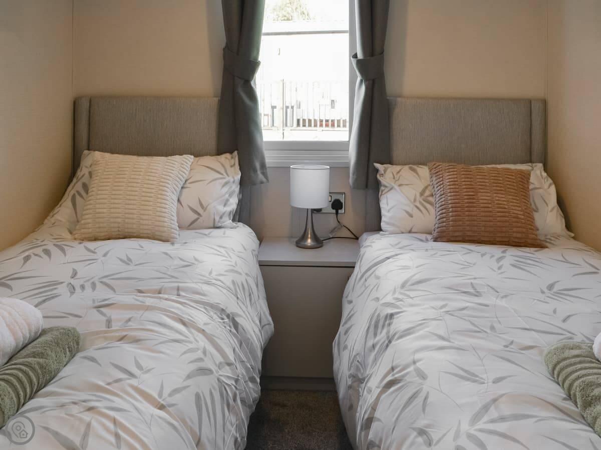 It sleeps six in three bedrooms. Two twins and a double with its own toilet. There's a main shower room too. It's got a 4 Star rating so it's well-equipped and maintained. Everything is on the ground floor, so no stairs.
