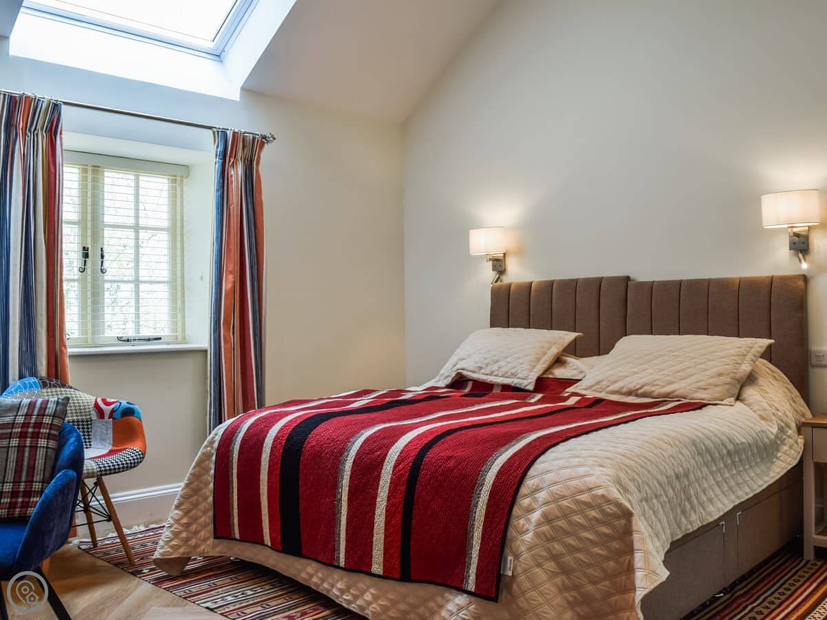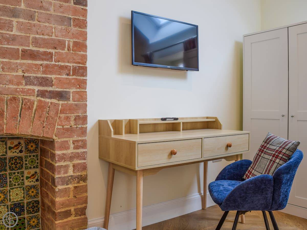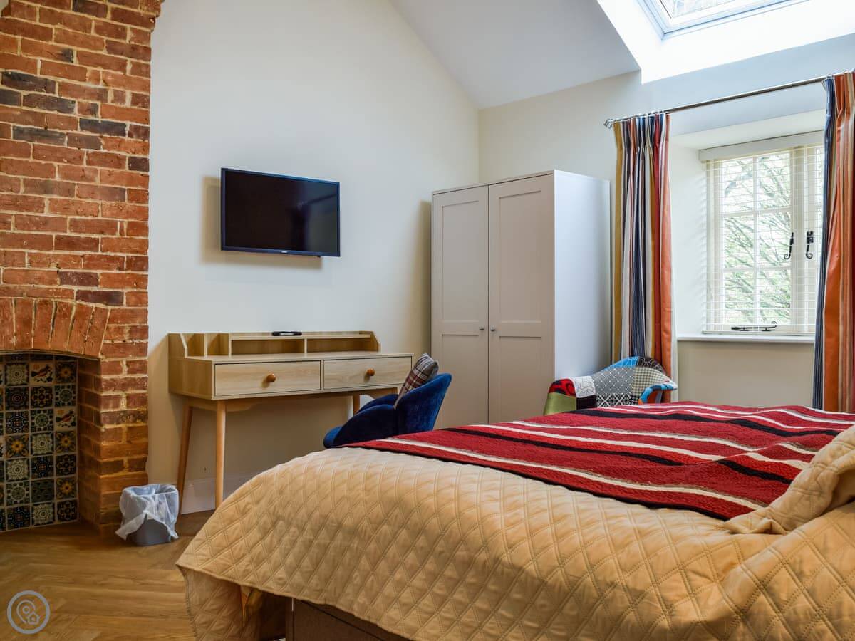 It sleeps four. Two bedrooms, both are Super Kings that can be made into twins if you ask beforehand. There are two bathrooms, one with a shower and one just a toilet and basin. The main bedroom has a desk if you need to work.