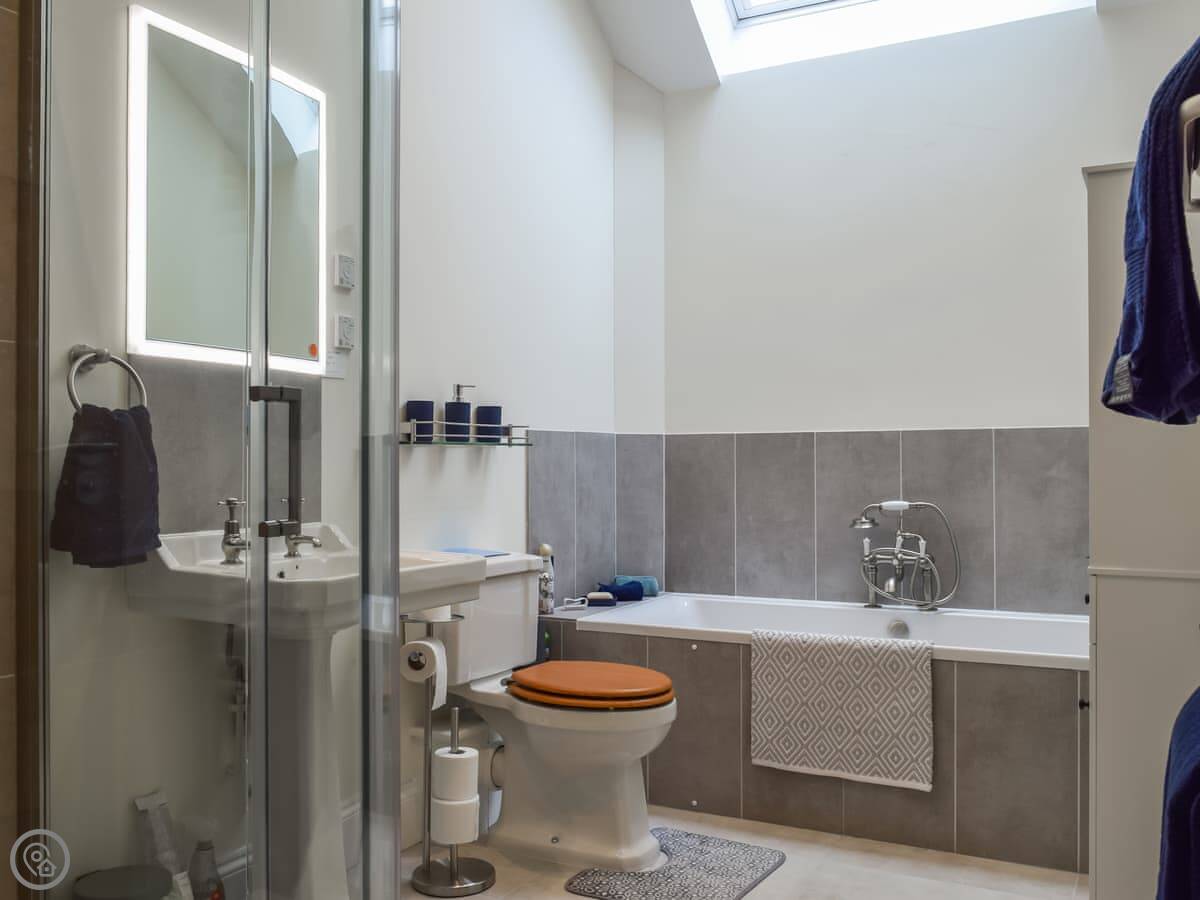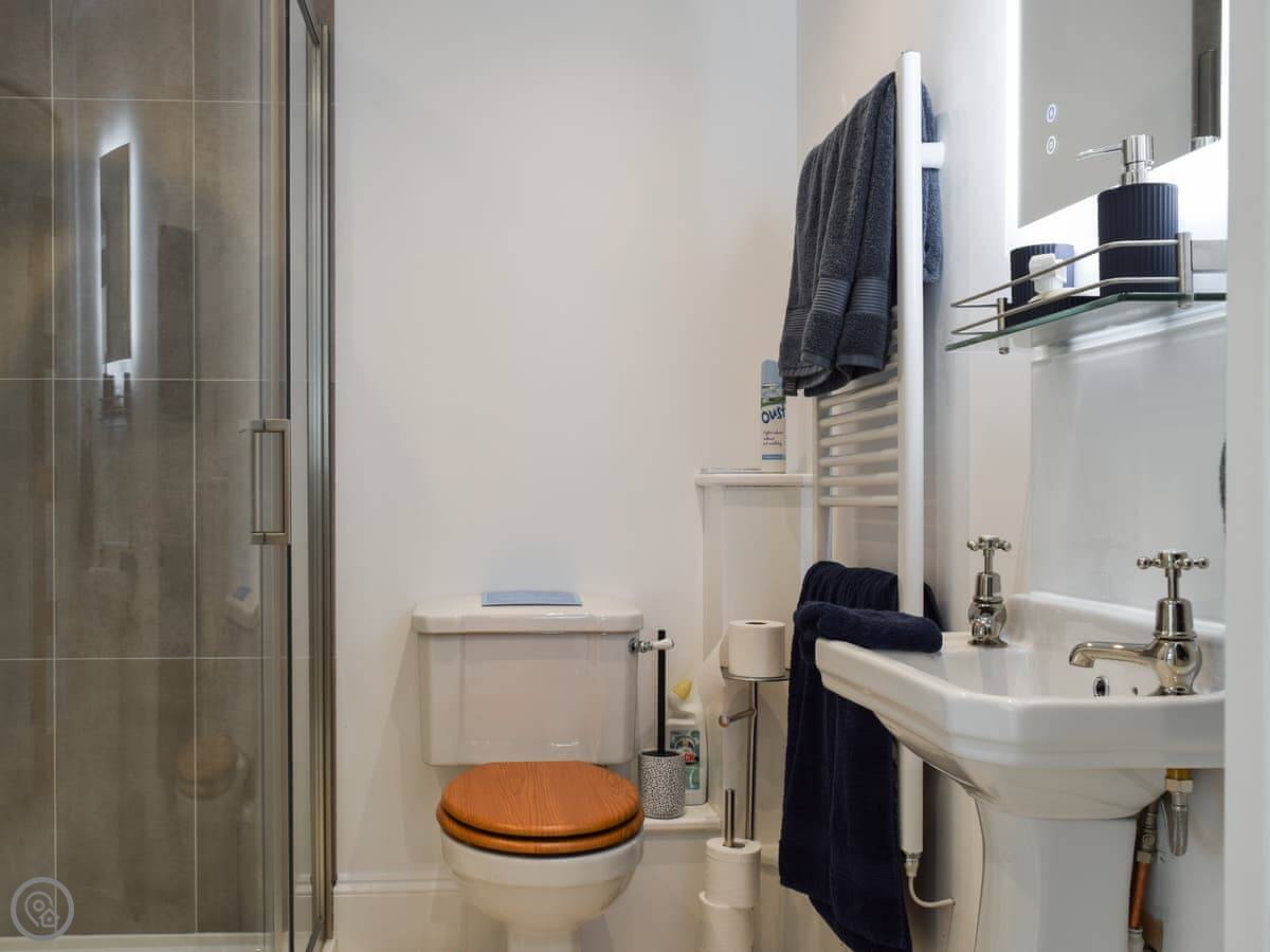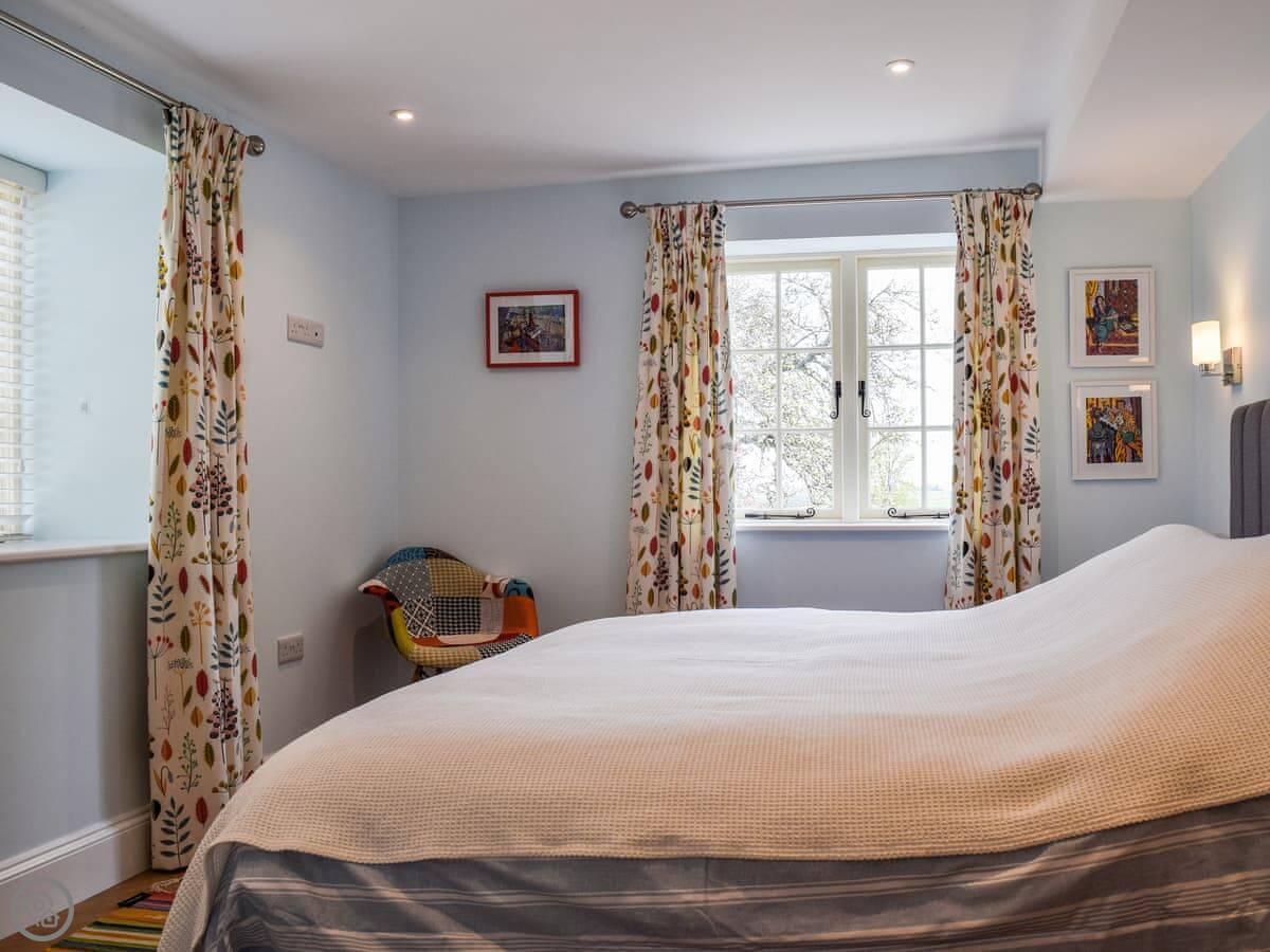 It sleeps four. Two bedrooms, both are Super Kings that can be made into twins if you ask beforehand. There are two bathrooms, one with a shower and one just a toilet and basin. The main bedroom has a desk if you need to work.