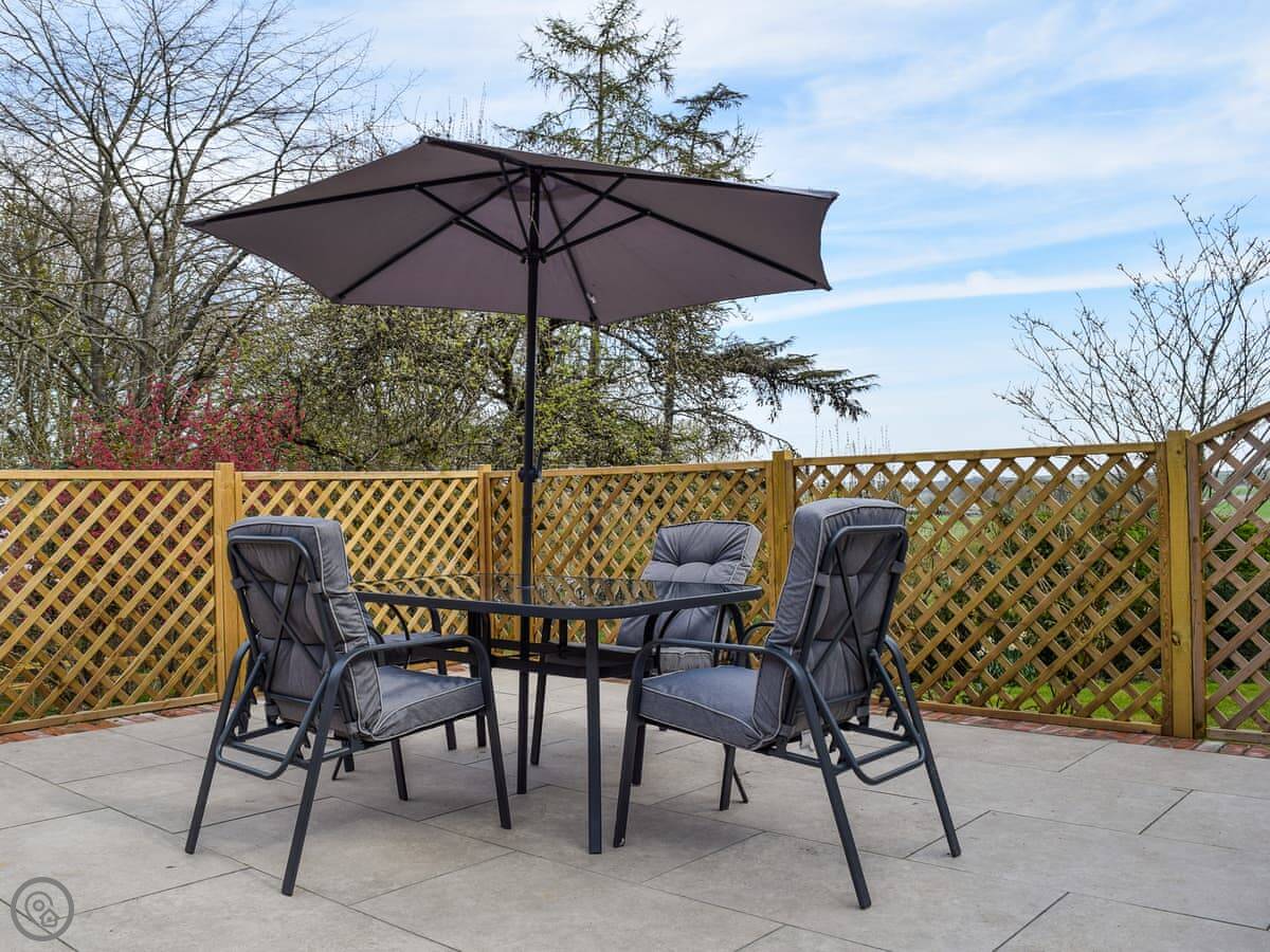 Outside, there are two little patio areas. One gets the morning sun, the other gets the evening sun. They're enclosed. We've put a BBQ out there you can use.