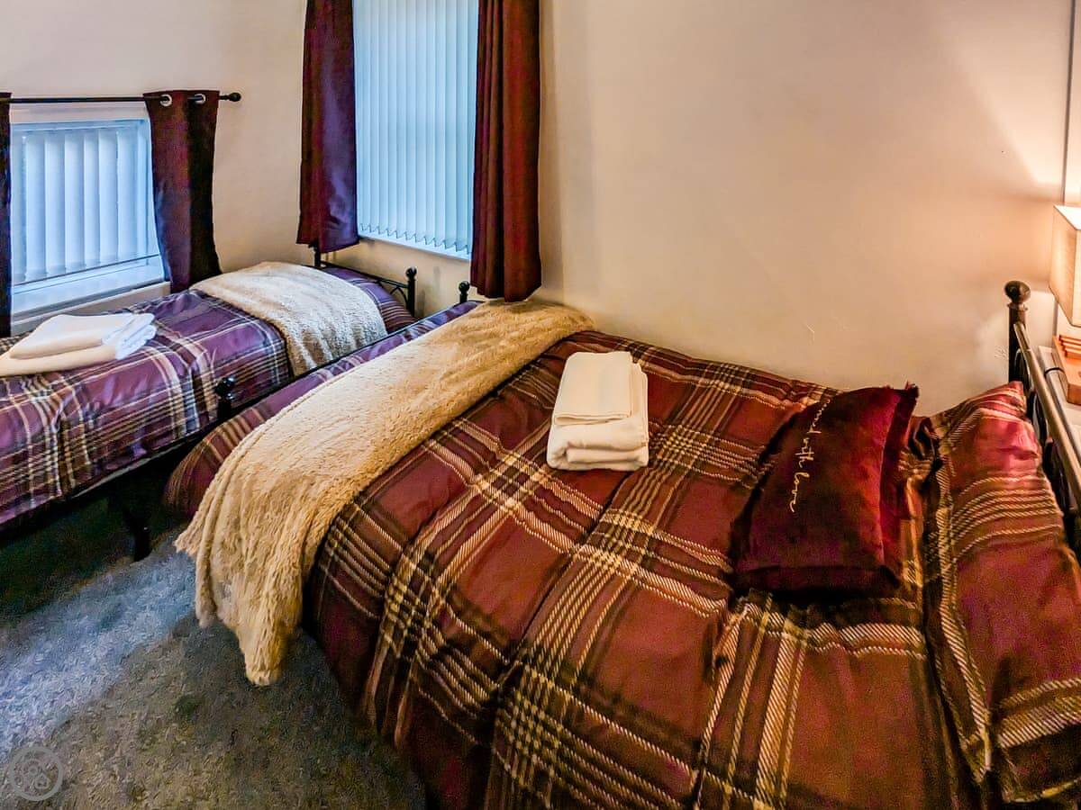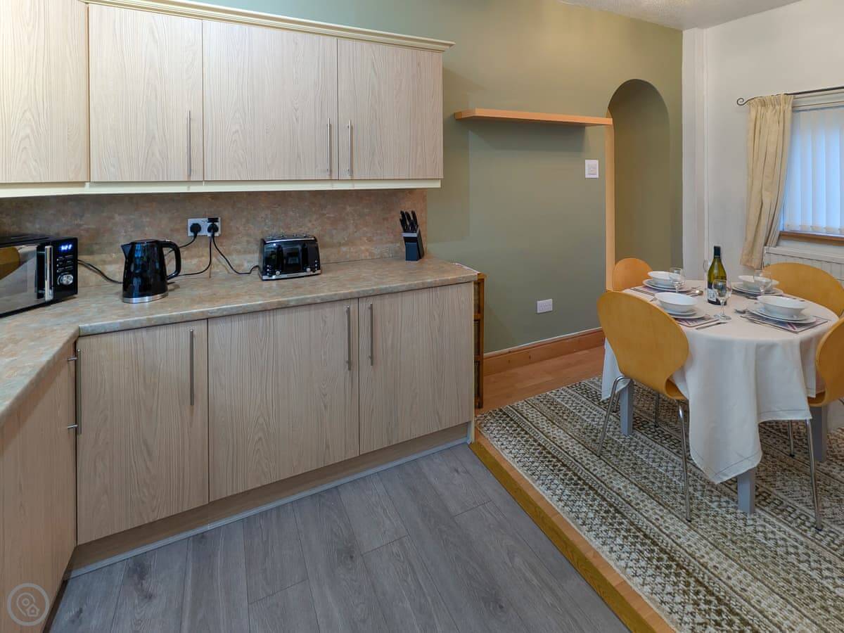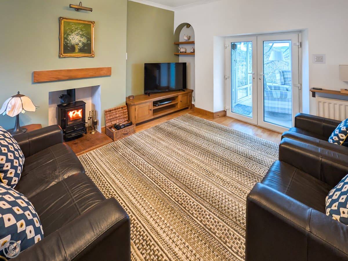 The sitting room has a wood burning stove. There's a conservatory you can eat in. The kitchen has a dishwasher and a washing machine. Bedding and towels are included. There's parking on site.