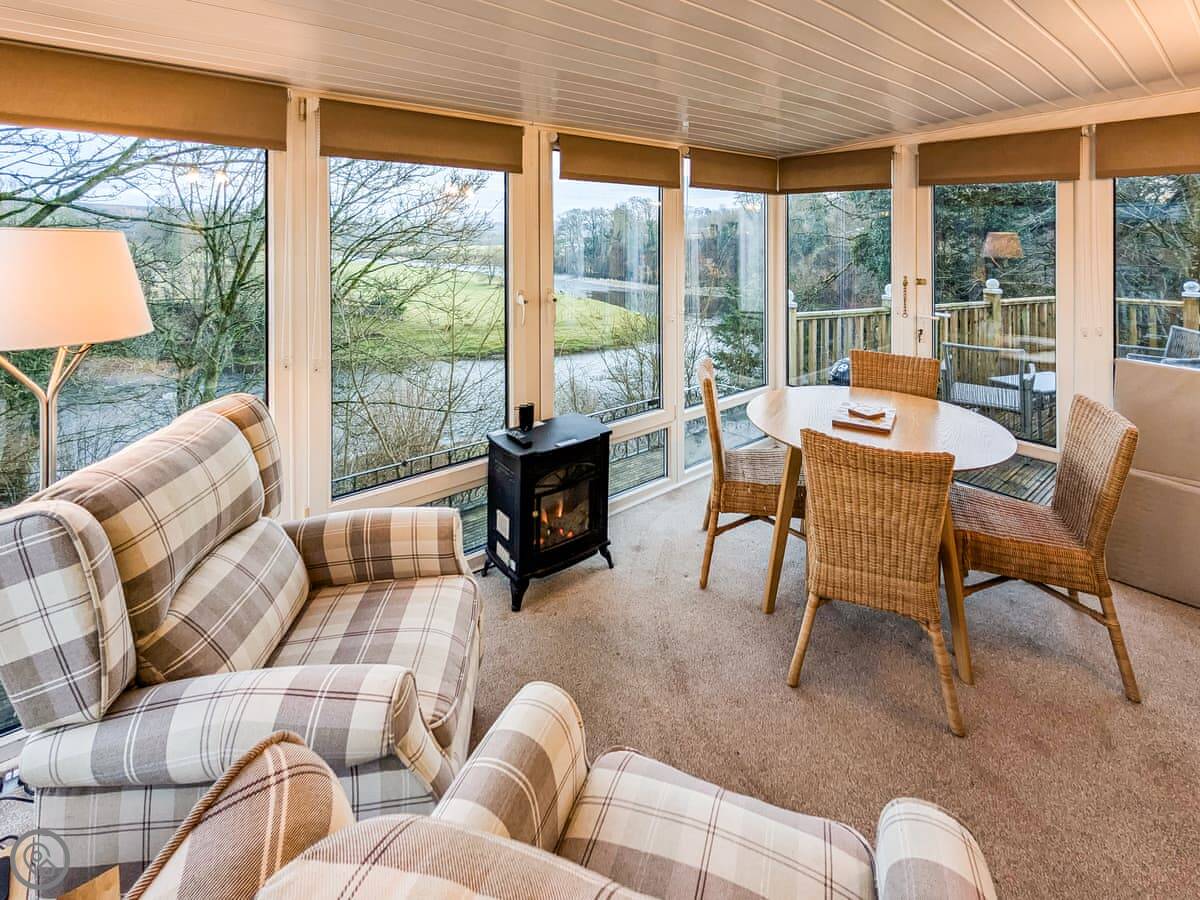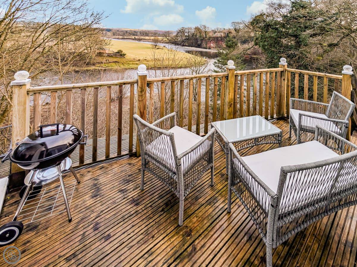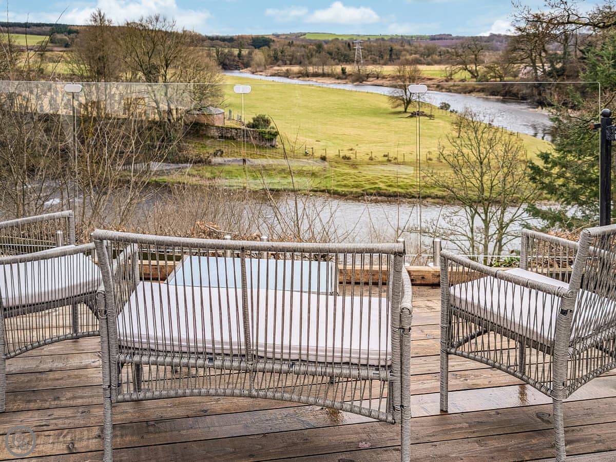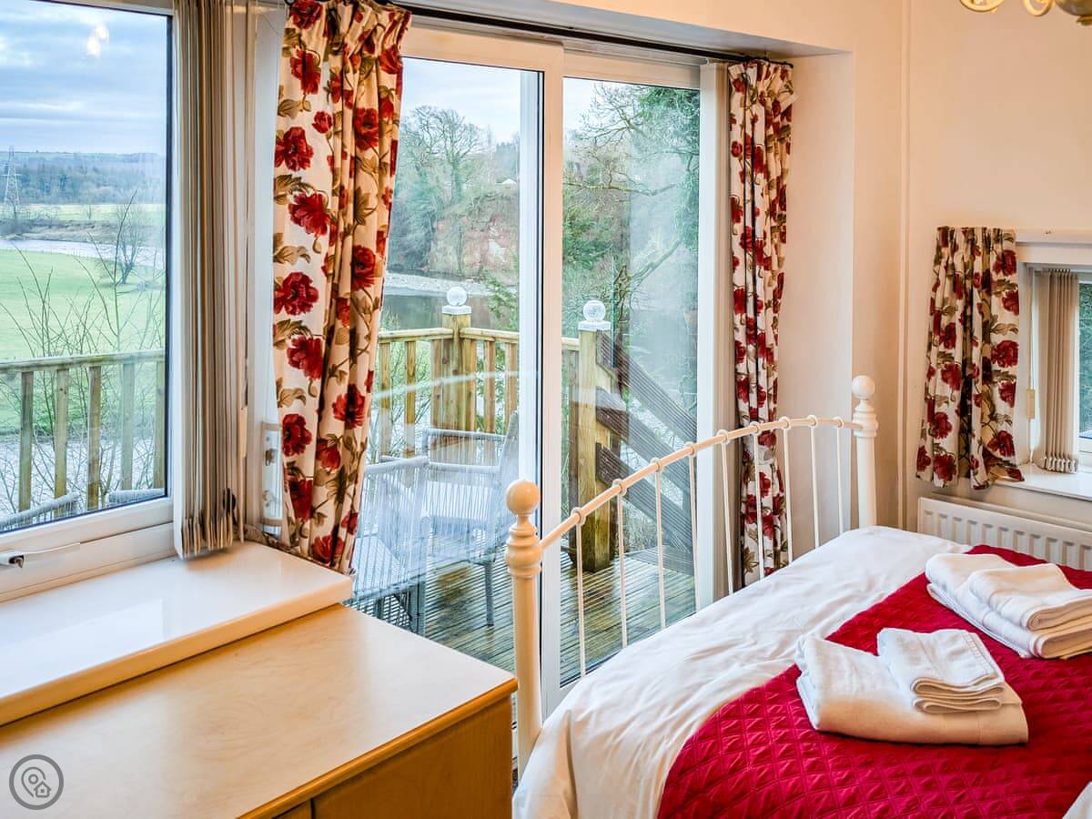 The cottage sleeps four. Two bedrooms and one bathroom. It's got a 4 Star rating, so it's comfortable and well equipped. You can bring two dogs. There's an enclosed garden with a patio, and a decked area that looks right over the River Esk. You get good views of the river and the fields. It's quiet.