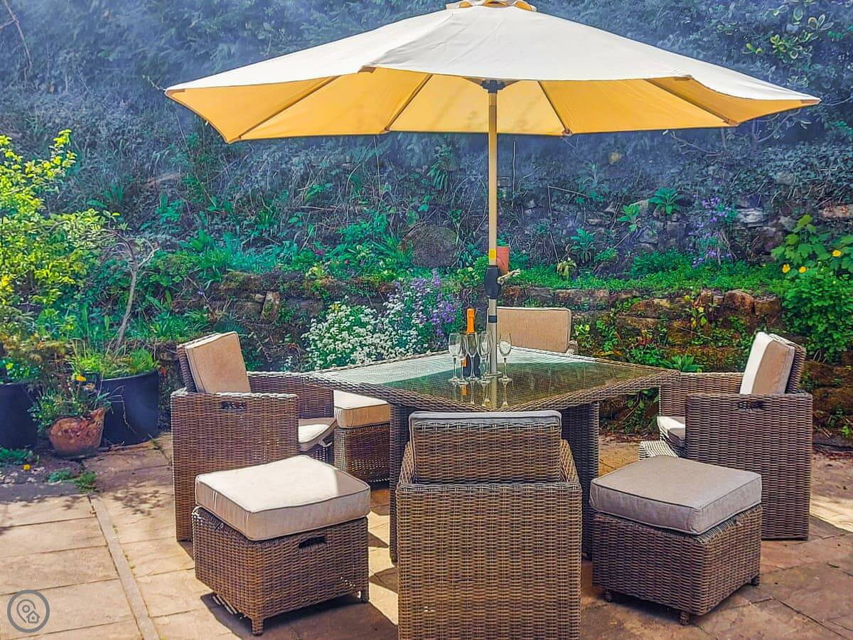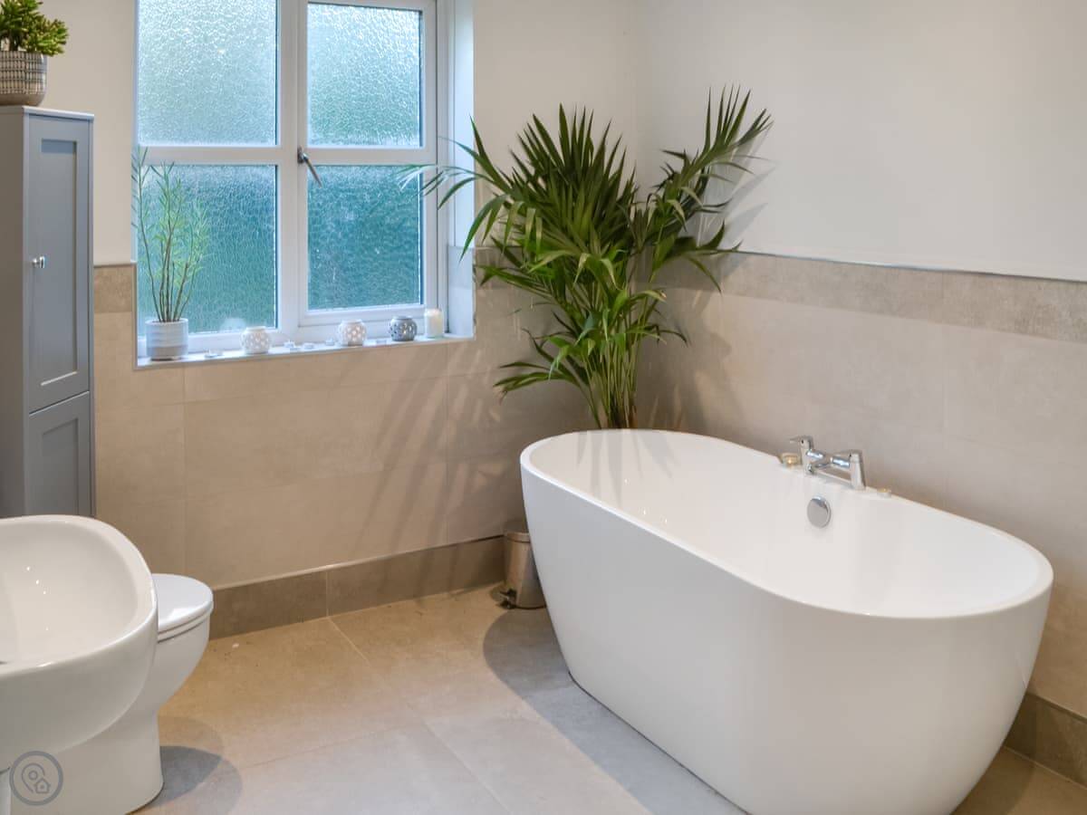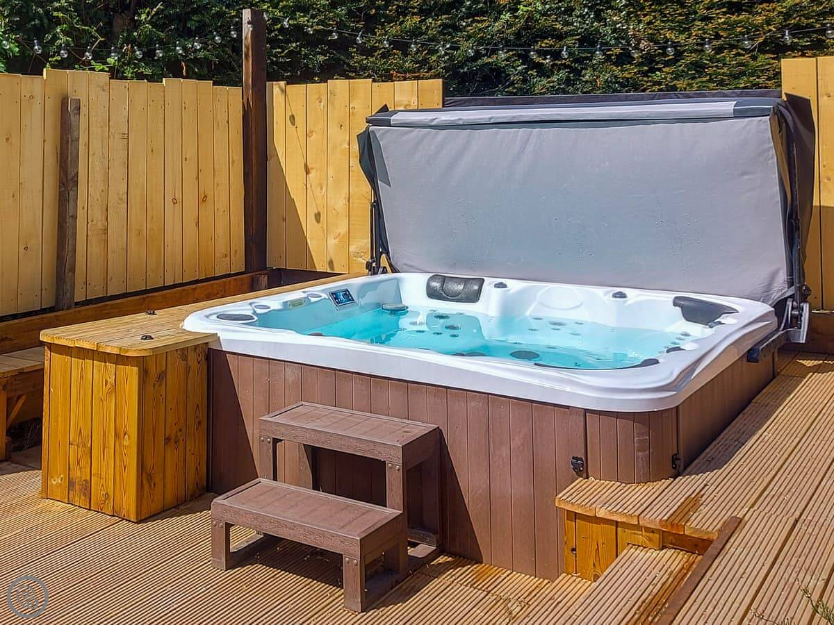 Humford Mill Cottage is in Bedlington, Northumberland. It's detached. The back garden is private and looks into the woods. There's a fishpond and a hot tub out there.