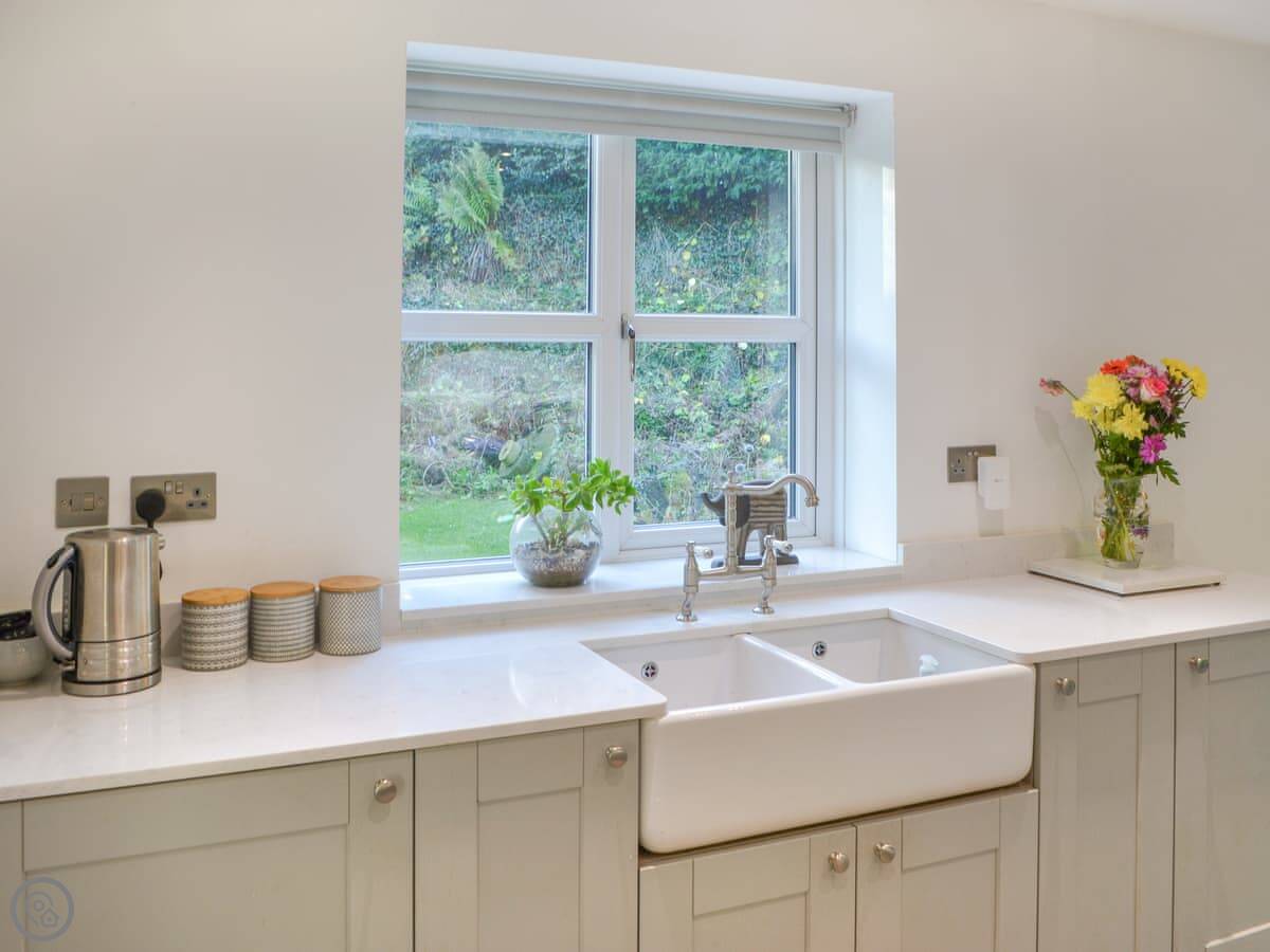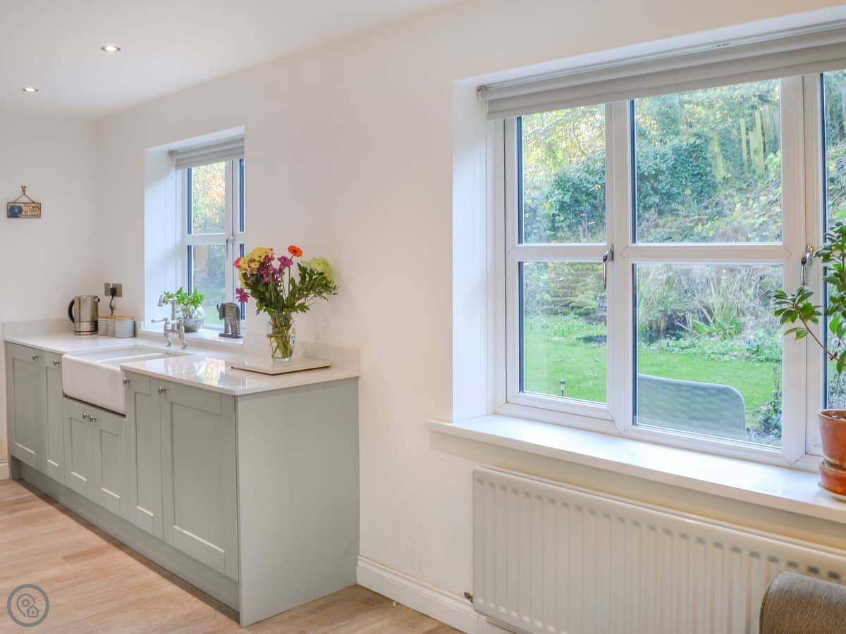You can bring one dog. There's a country park with stepping stones over the river right next door, which is good for walks. The town centre with shops and pubs is under a mile away.